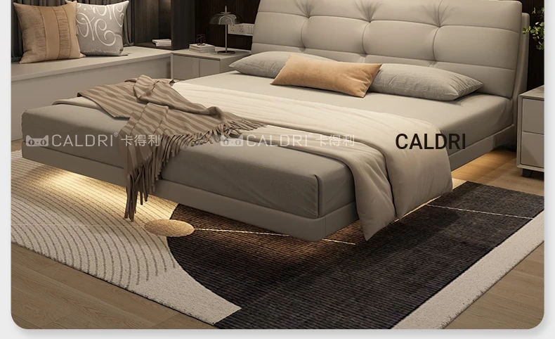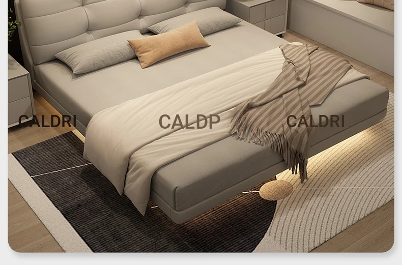 Ultimate Edition: No Light Suspension Bed [Encrypted Beech Row Skeleton] + Bedside Table * 2 + Five-star Independent Spring Latex Mattress