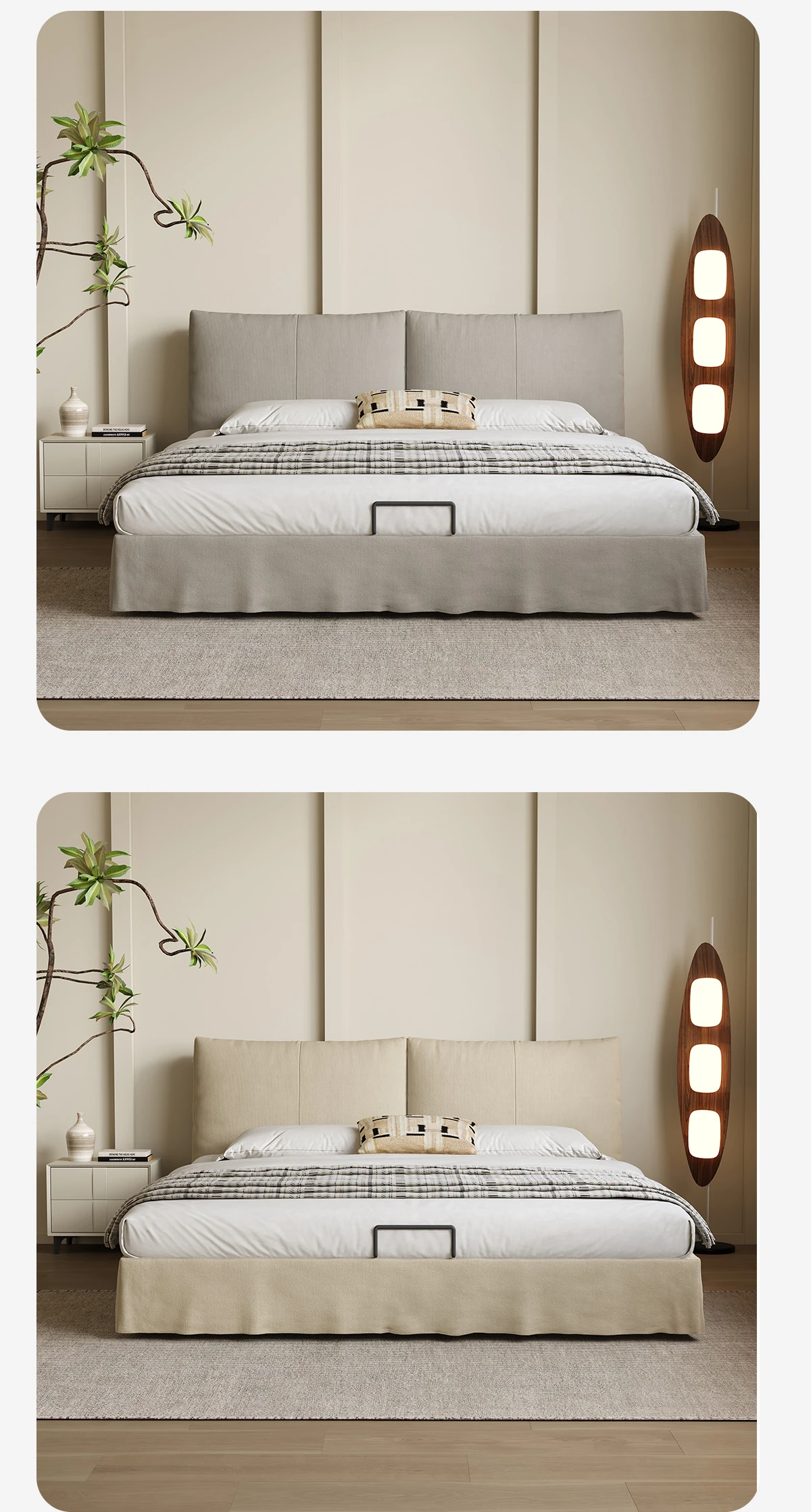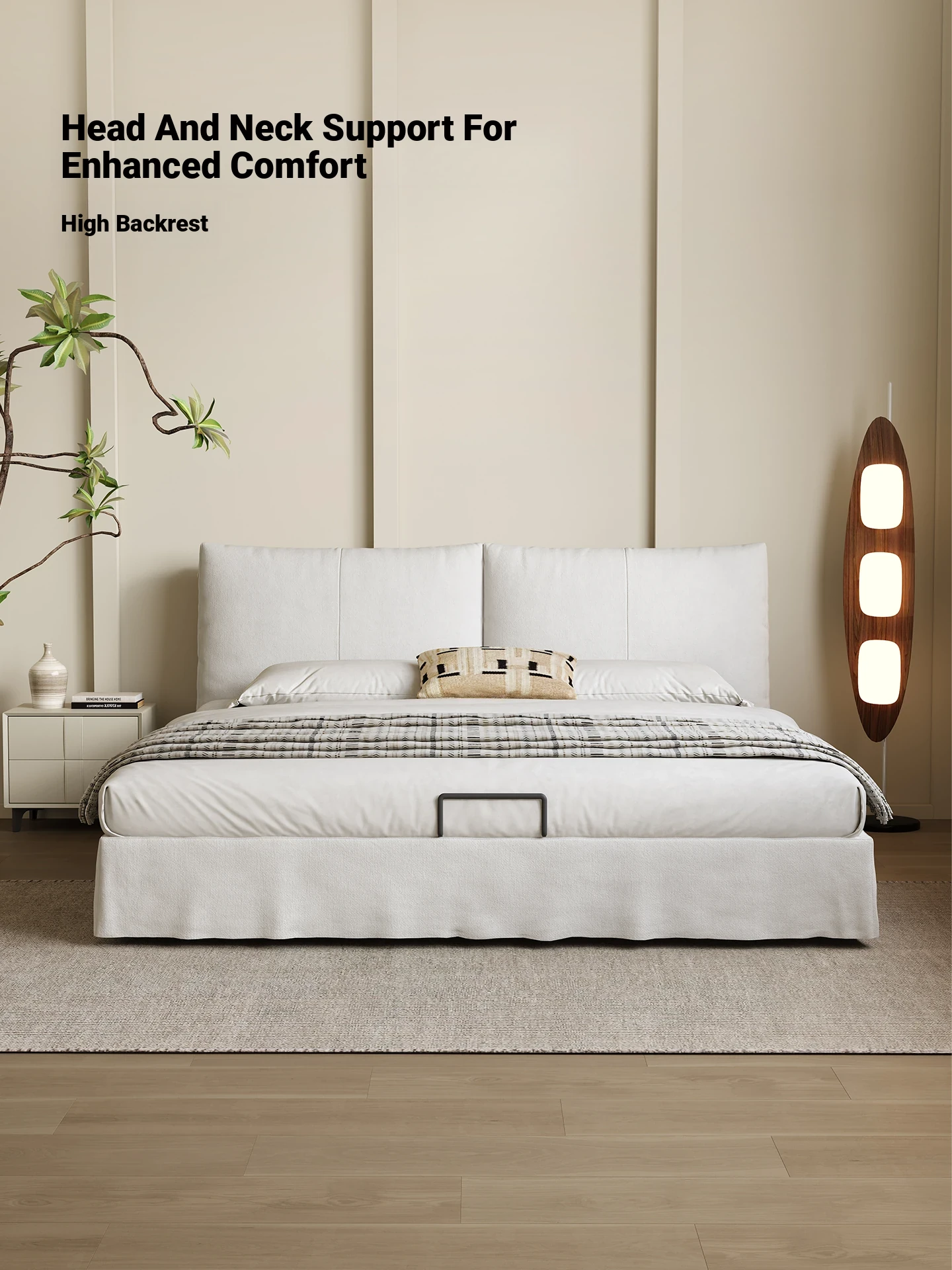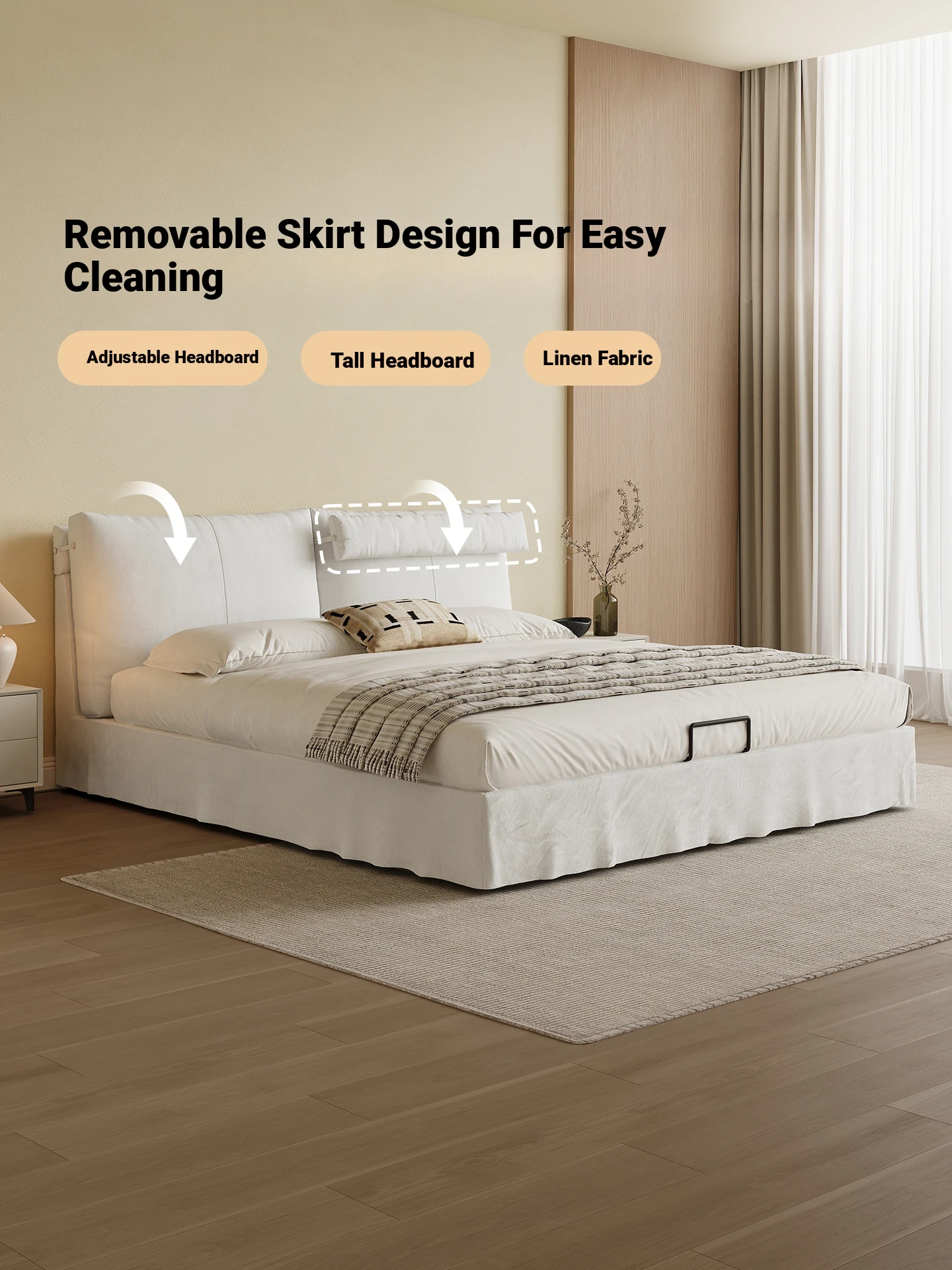 Kardeli Modern Minimalist Removable Linen Fabric Bed in Cream White - Wabi-Sabi Style Storage Solution for Master Bedroom Double Bed