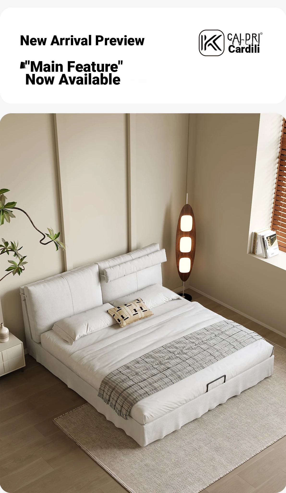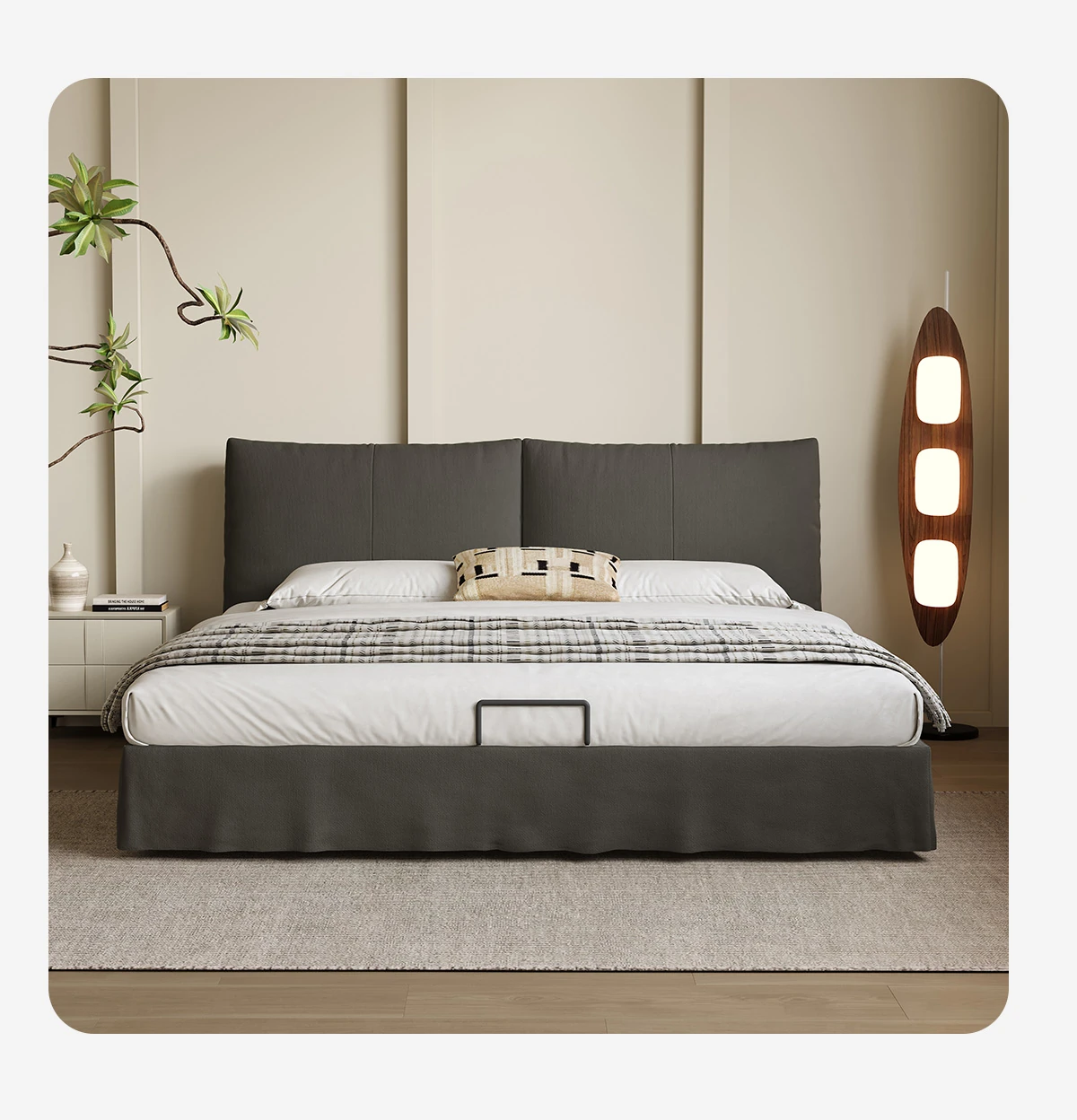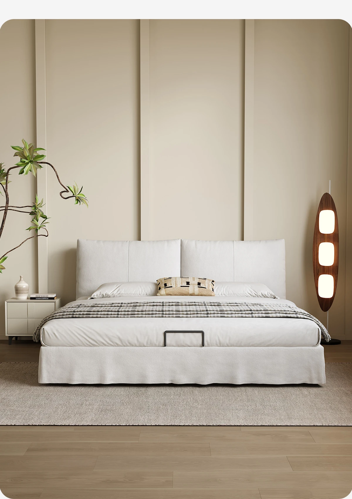 Kardeli Modern Minimalist Removable Linen Fabric Bed in Cream White - Wabi-Sabi Style Storage Solution for Master Bedroom Double Bed