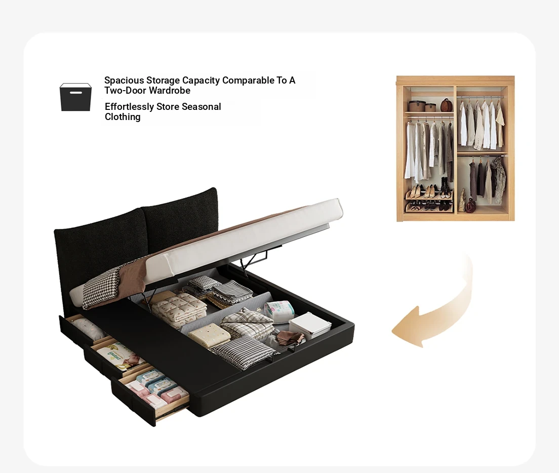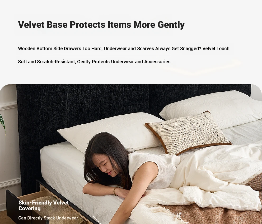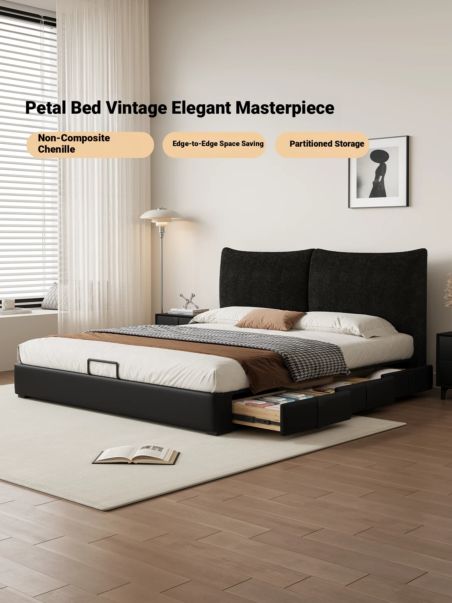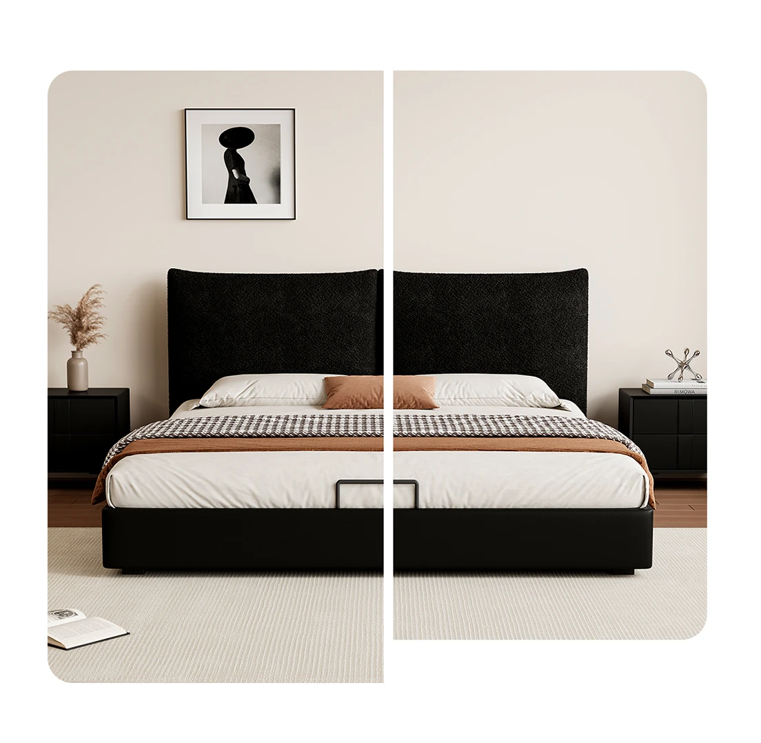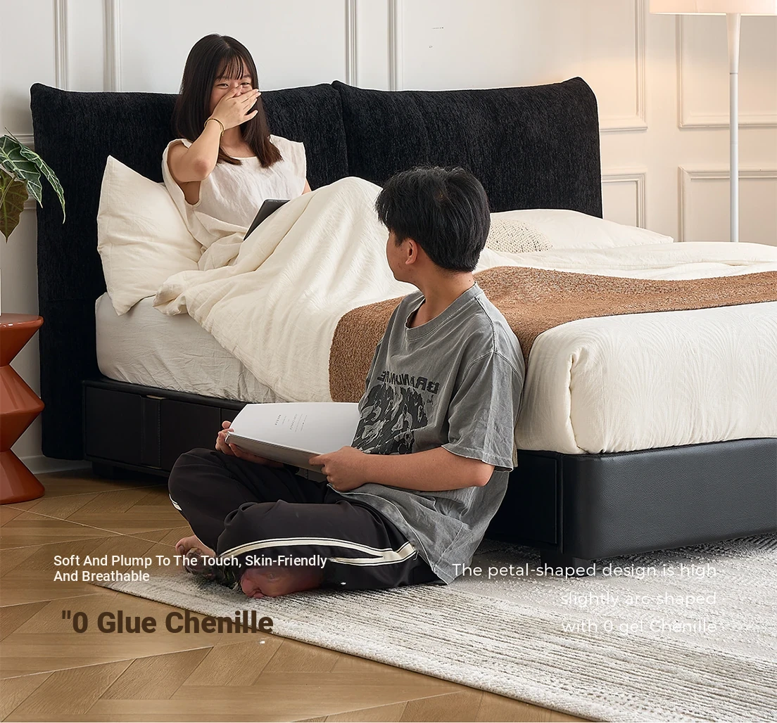 Kardily Petal Bed - High-End Chenille Fabric Bed for Master Bedroom, Italian Minimalist Design with Storage, Double Bed with Edge Details