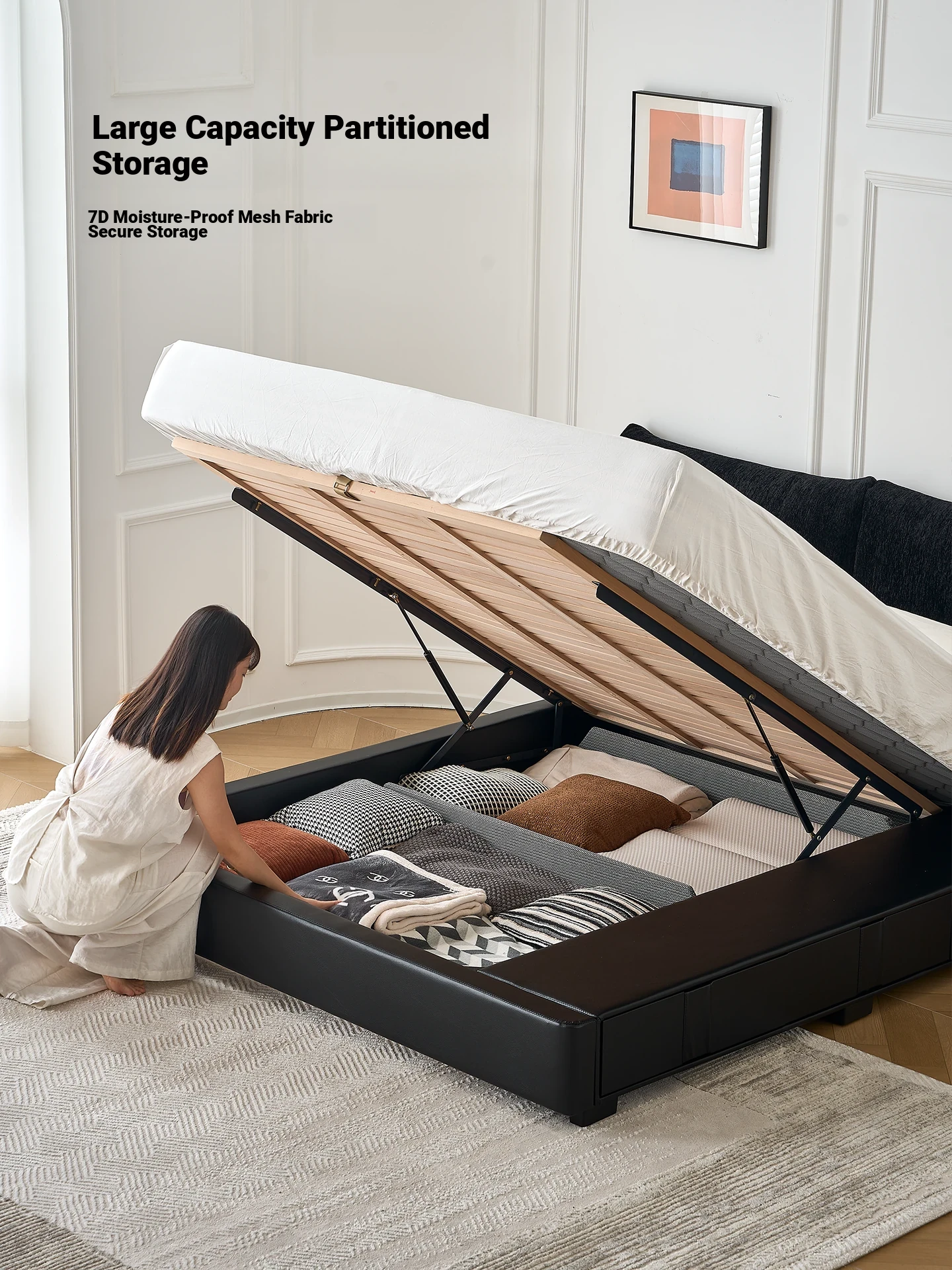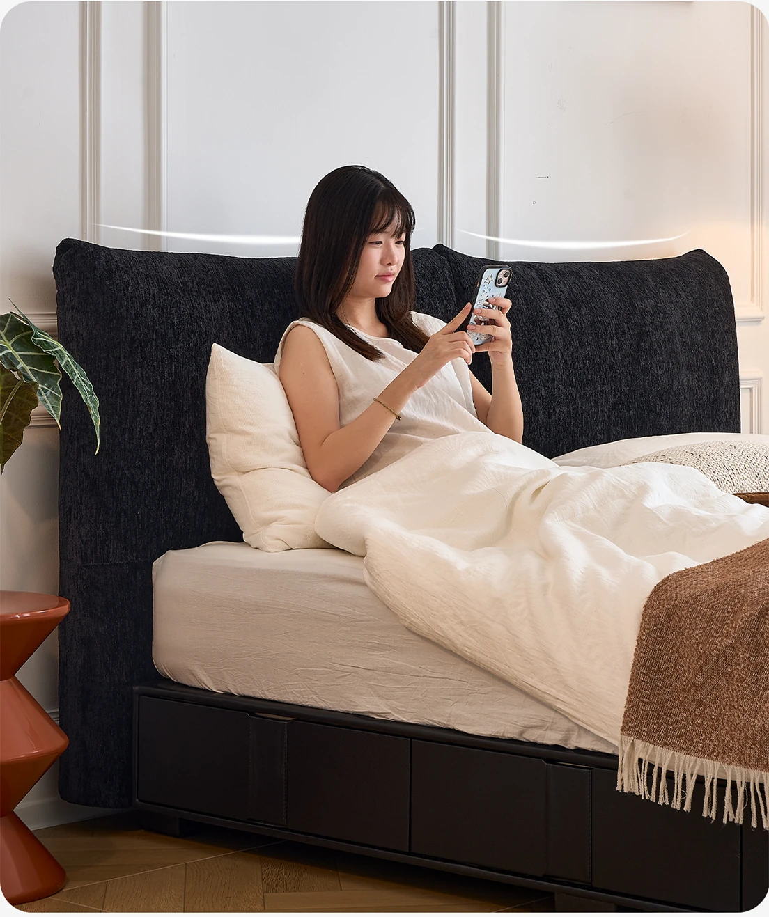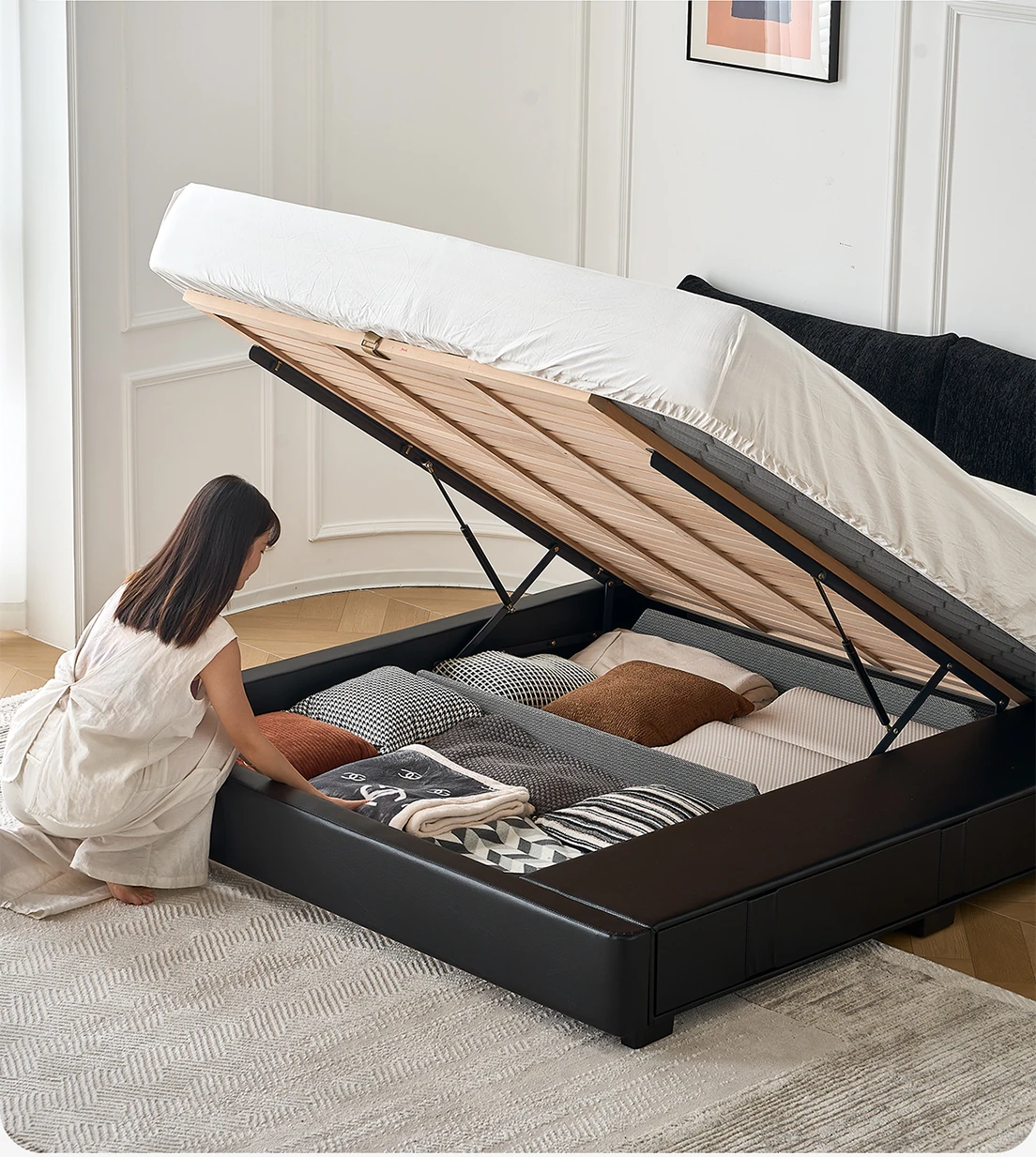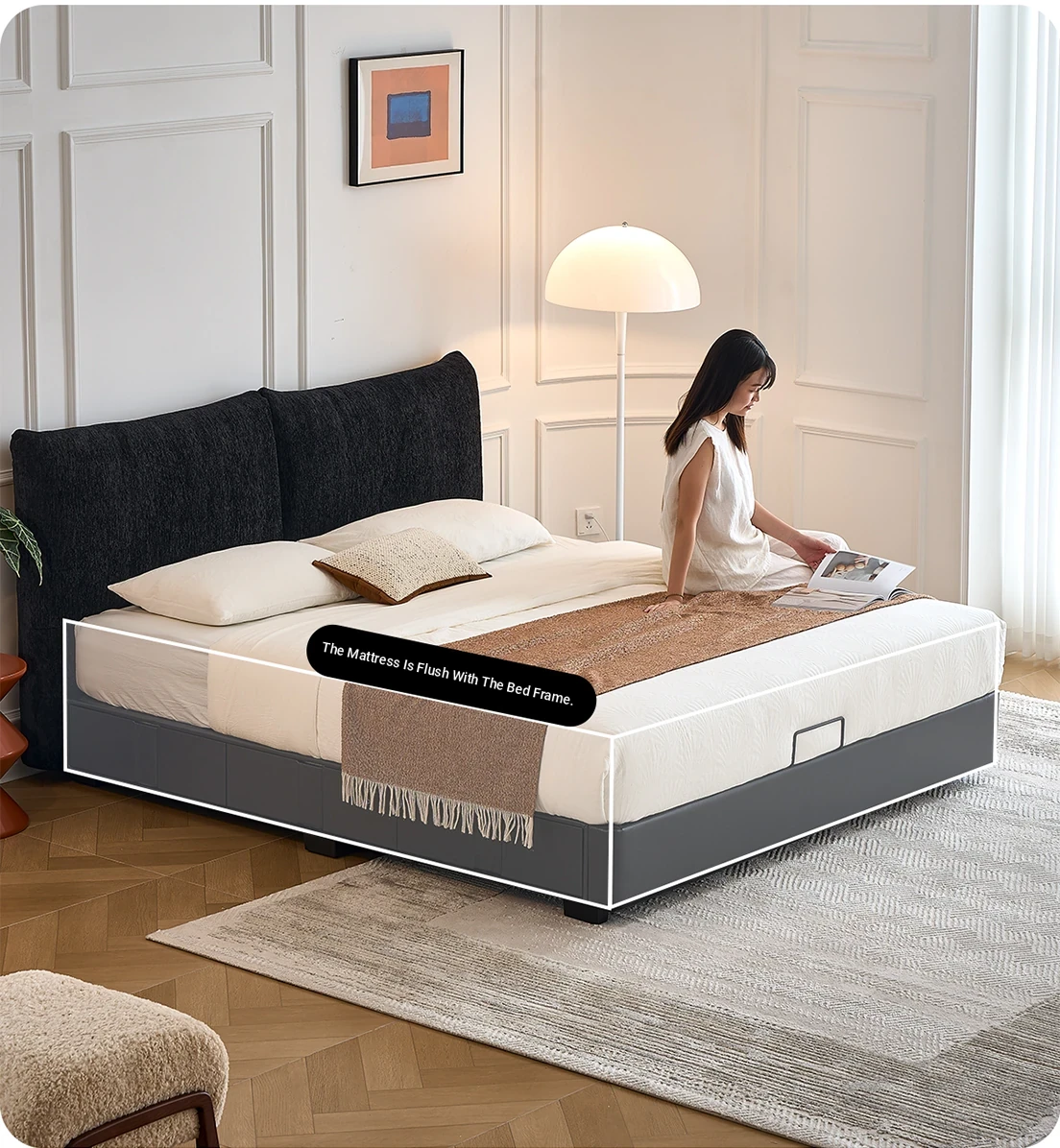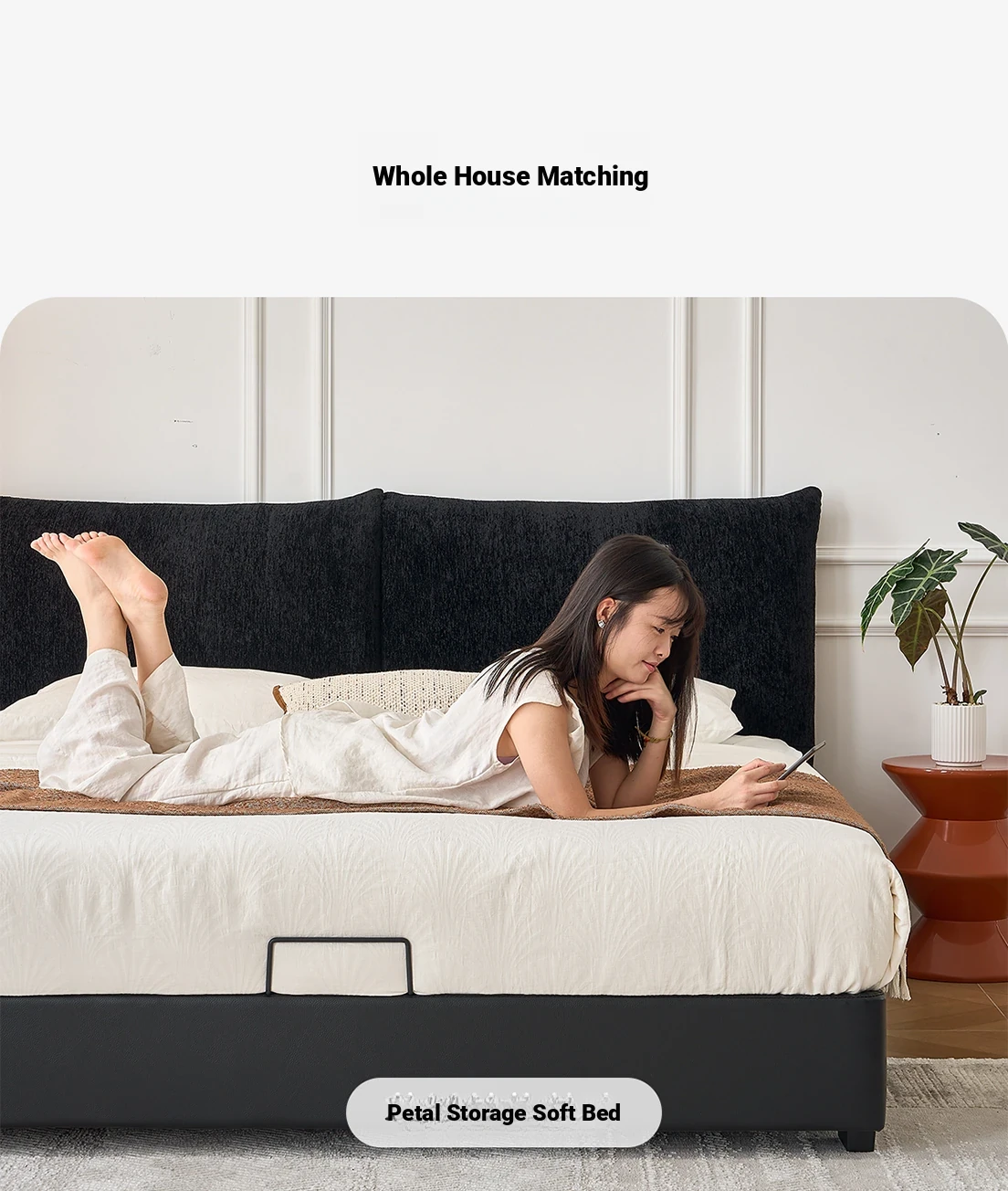 Kardily Petal Bed - High-End Chenille Fabric Bed for Master Bedroom, Italian Minimalist Design with Storage, Double Bed with Edge Details