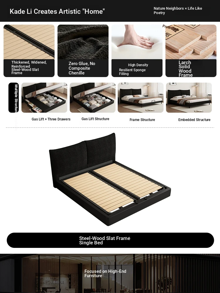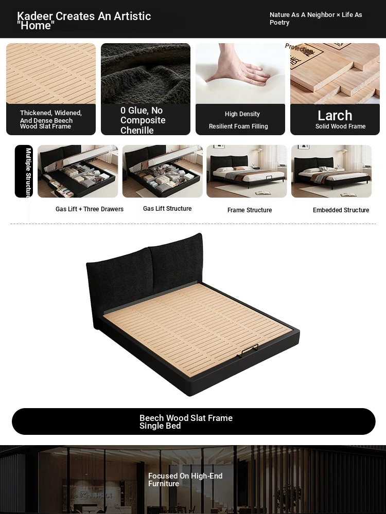 Flagship Version: Chenille Cloth Bed [Thickened Beech Frame]
