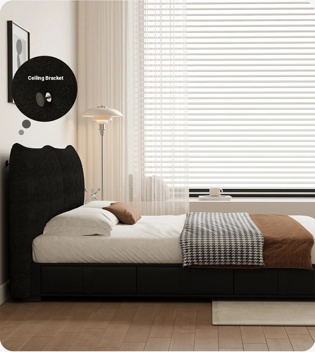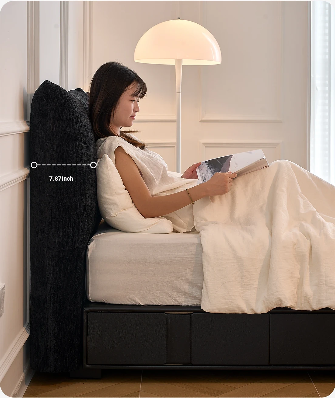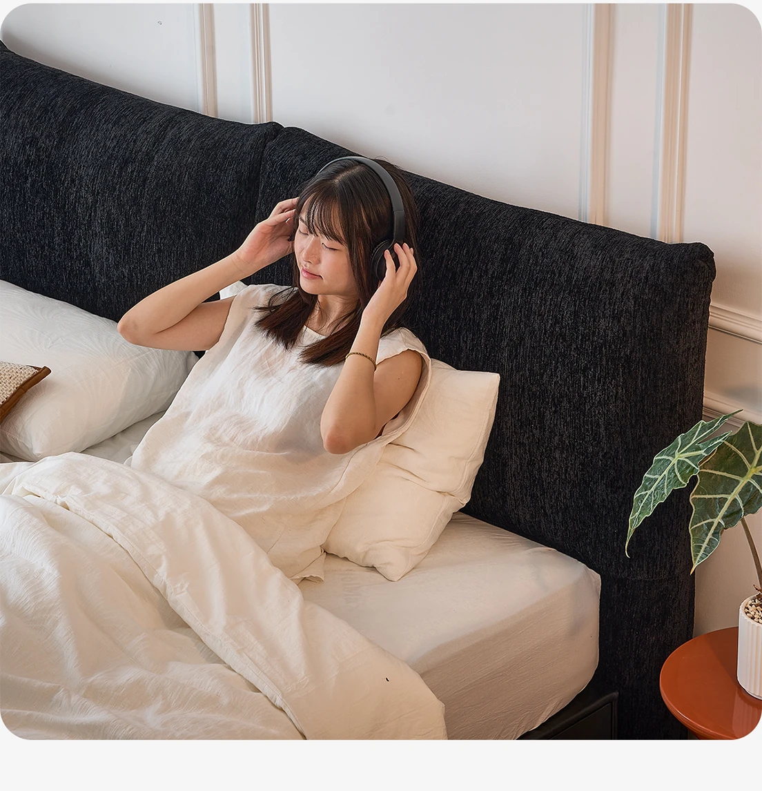 Flagship Version: Chenille Bed [Thick Beech Frame] + Bedside Table *1