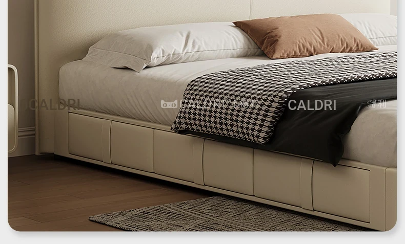 Luxury Italian Minimalist Leather Bed for Master Bedroom – Chic White Storage Double Bed with a Modern Touch, Inspired by Chanel Design. Perfect for Elevating Your Home Aesthetics!