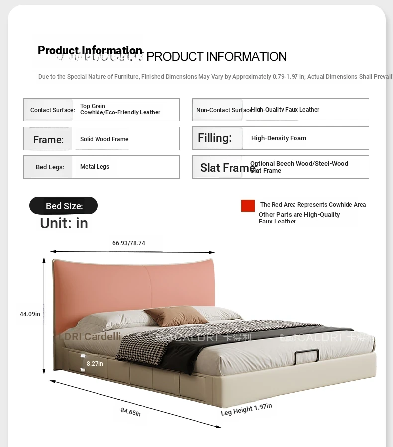 Exclusive Edition: Yangdong Linglong Jade - Lightly Dropped Napa First Layer Cowhide [Encrypted Beech Frame] Single Bed