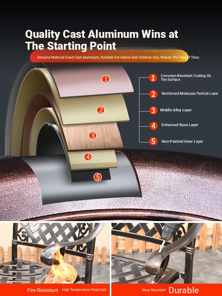4+1 [with 39.37in small red sandalwood cast aluminum round table]]