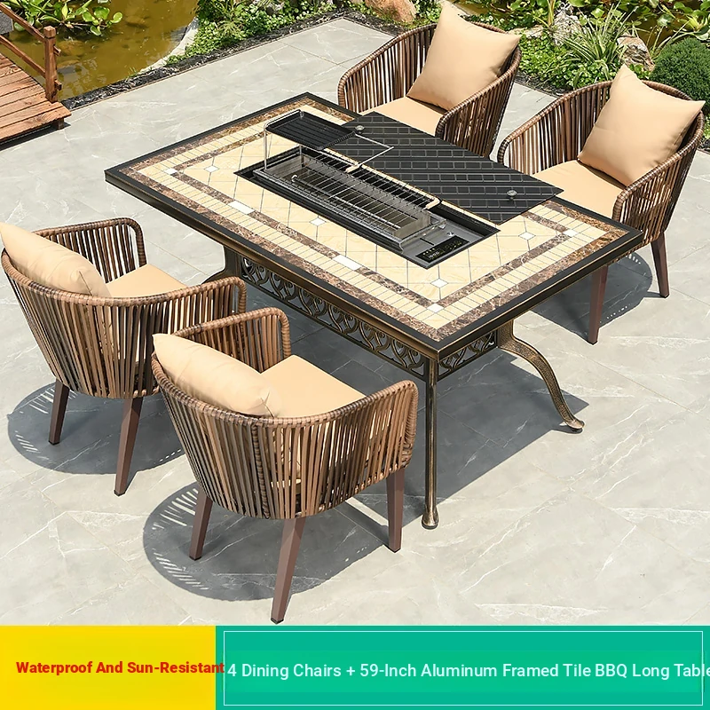 4+1 [59.06in aluminum frame tile barbecue long table]](4+1 [59.06in aluminum frame tile barbecue long table]])
