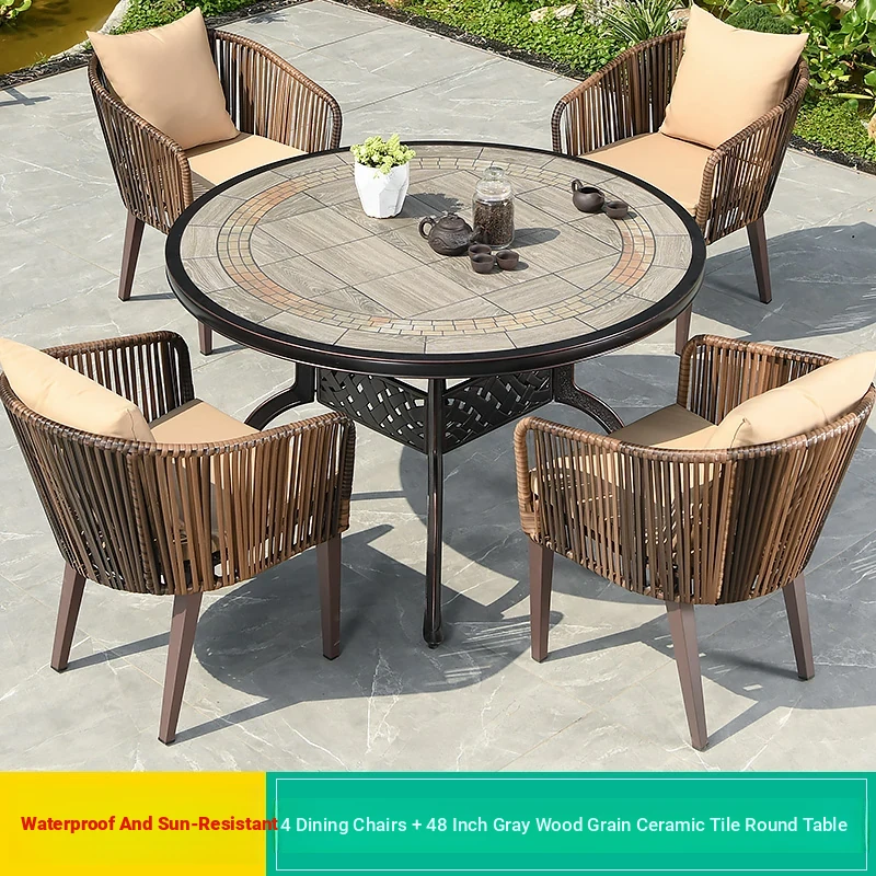 4+1 [48.03in aluminum frame tile round table]](4+1 [48.03in aluminum frame tile round table]])