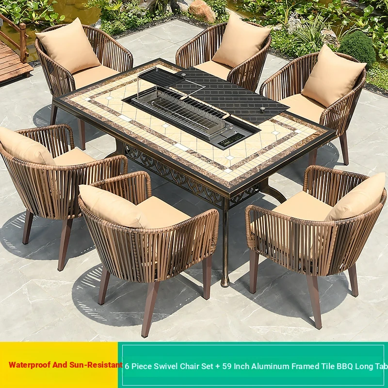 6+1 [59.06in aluminum frame tile barbecue long table]](6+1 [59.06in aluminum frame tile barbecue long table]])