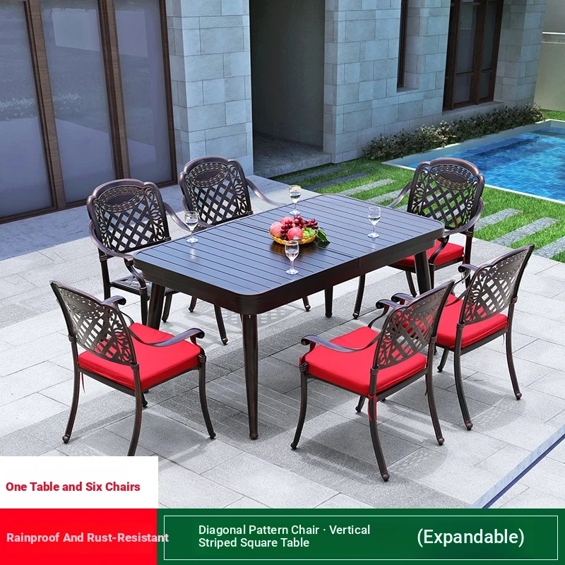 One table and six chairs (diagonal chair +150 telescopic 200 long table)