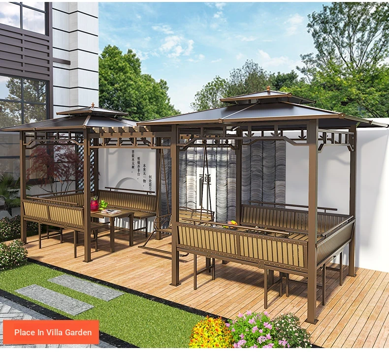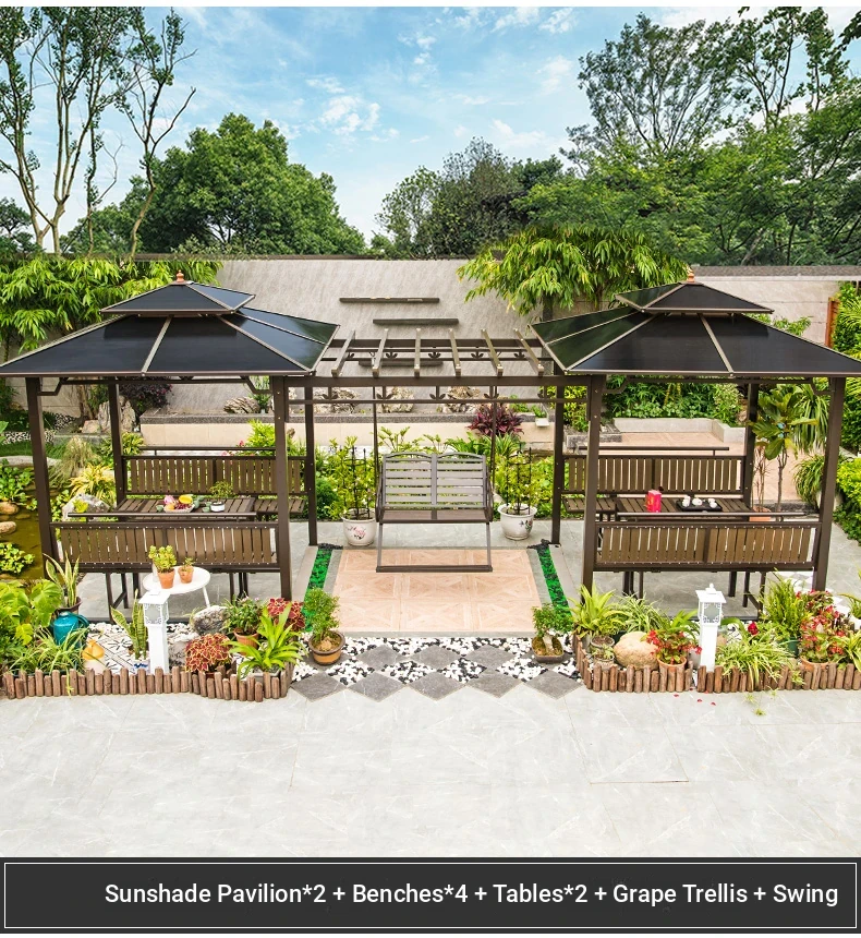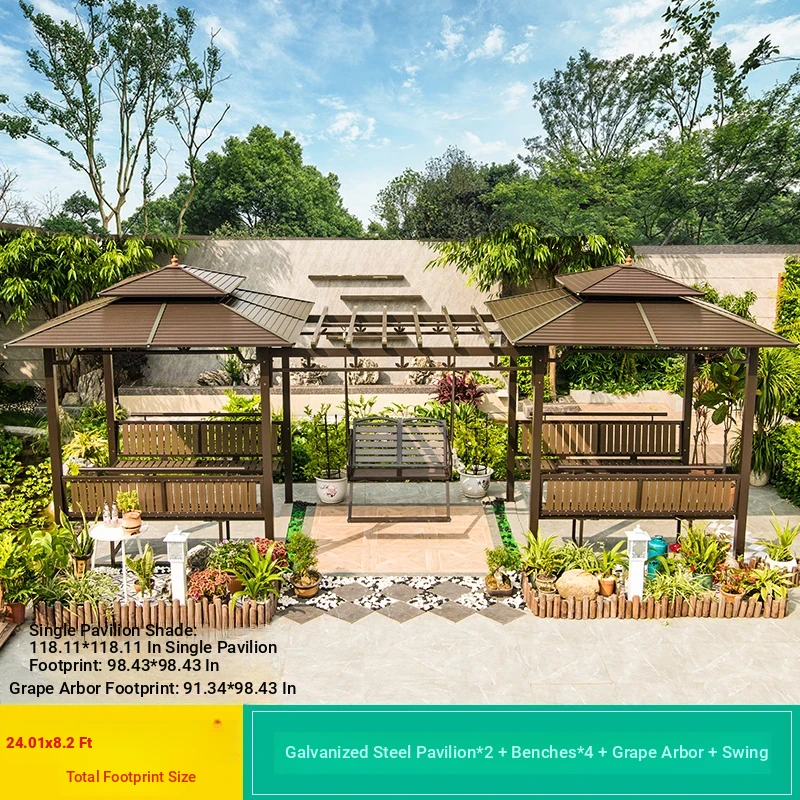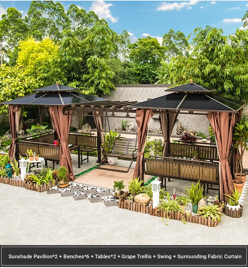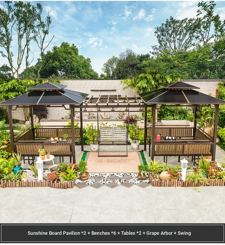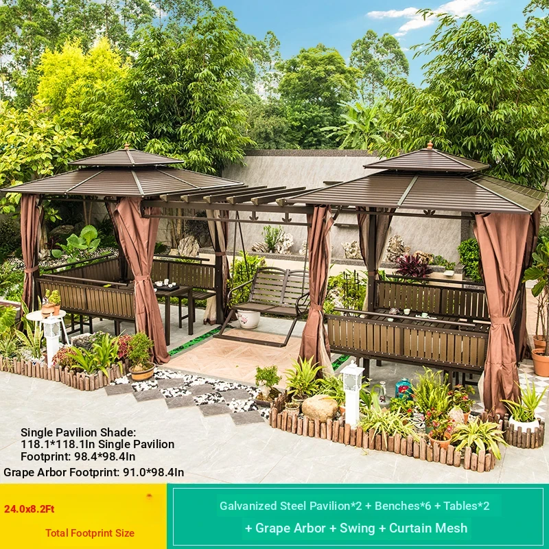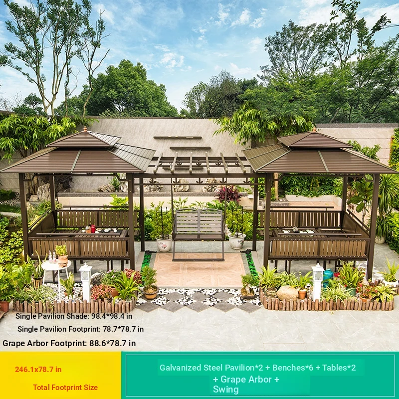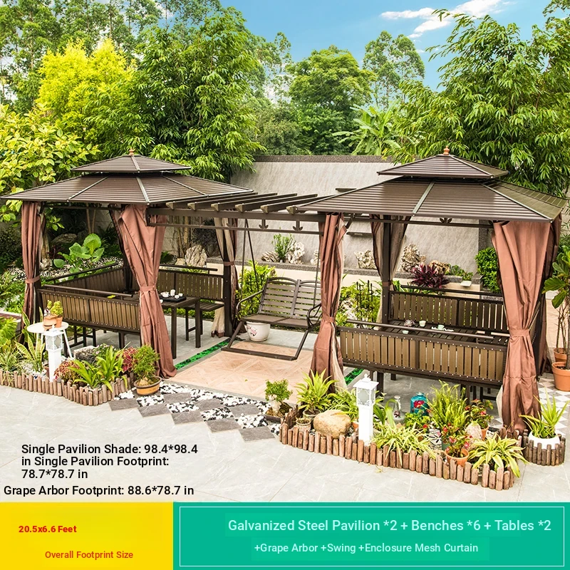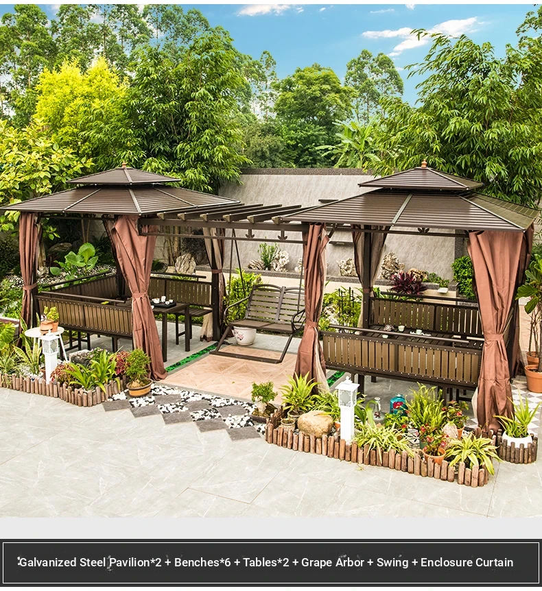 3x 307.09 in galvanized top Pavilion +6 seat boards +2 tables +2 swing + gauze curtain cloth