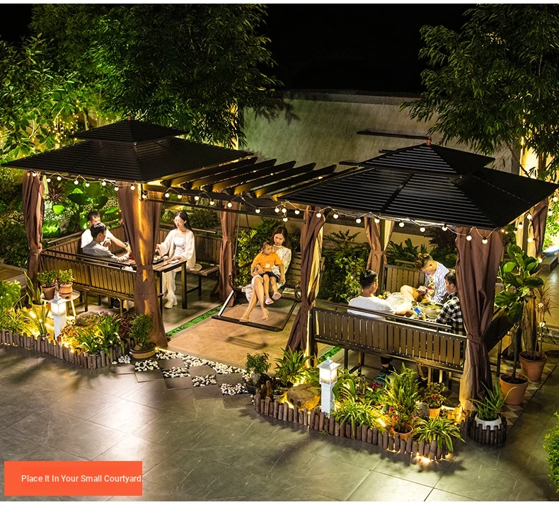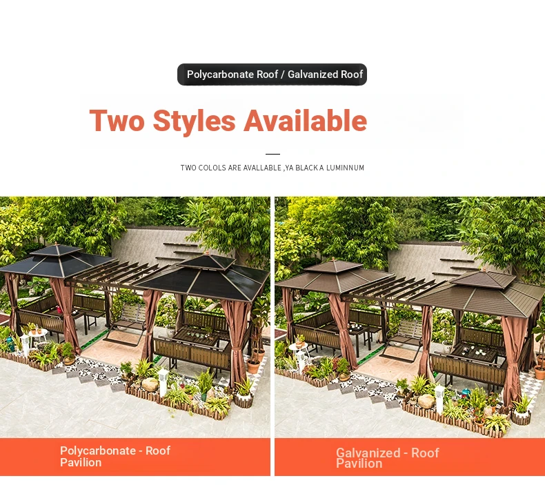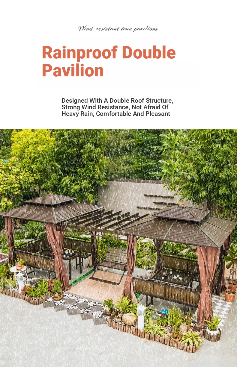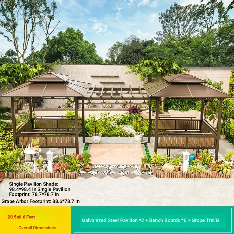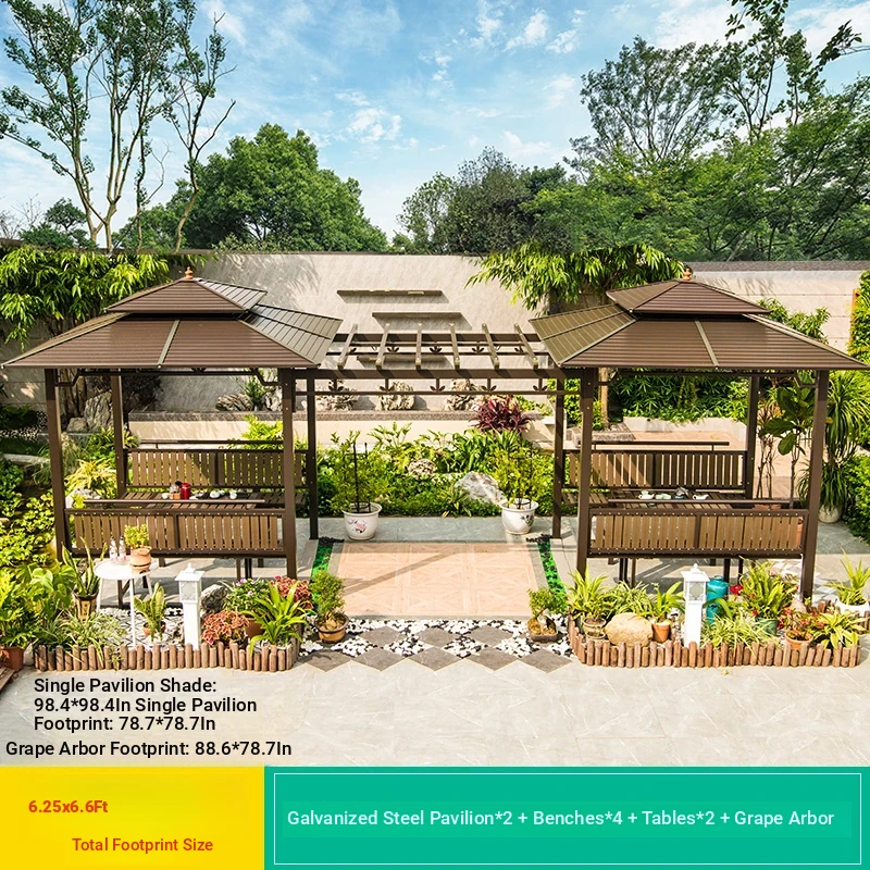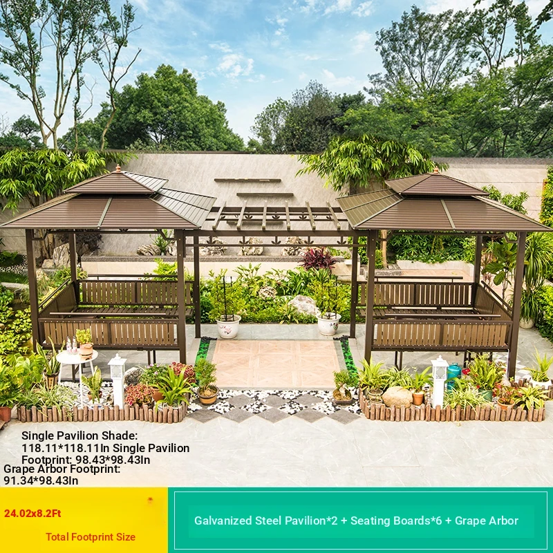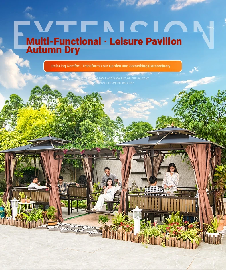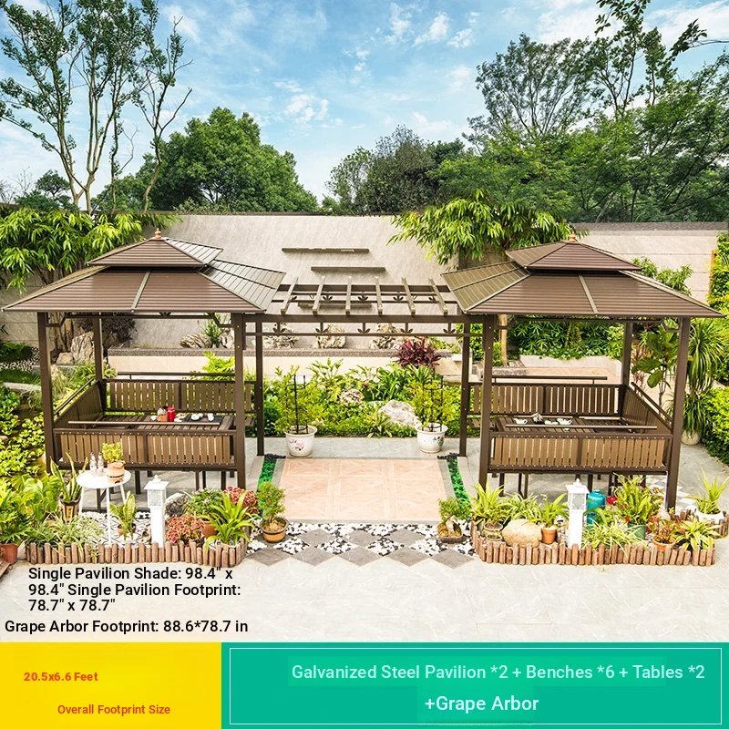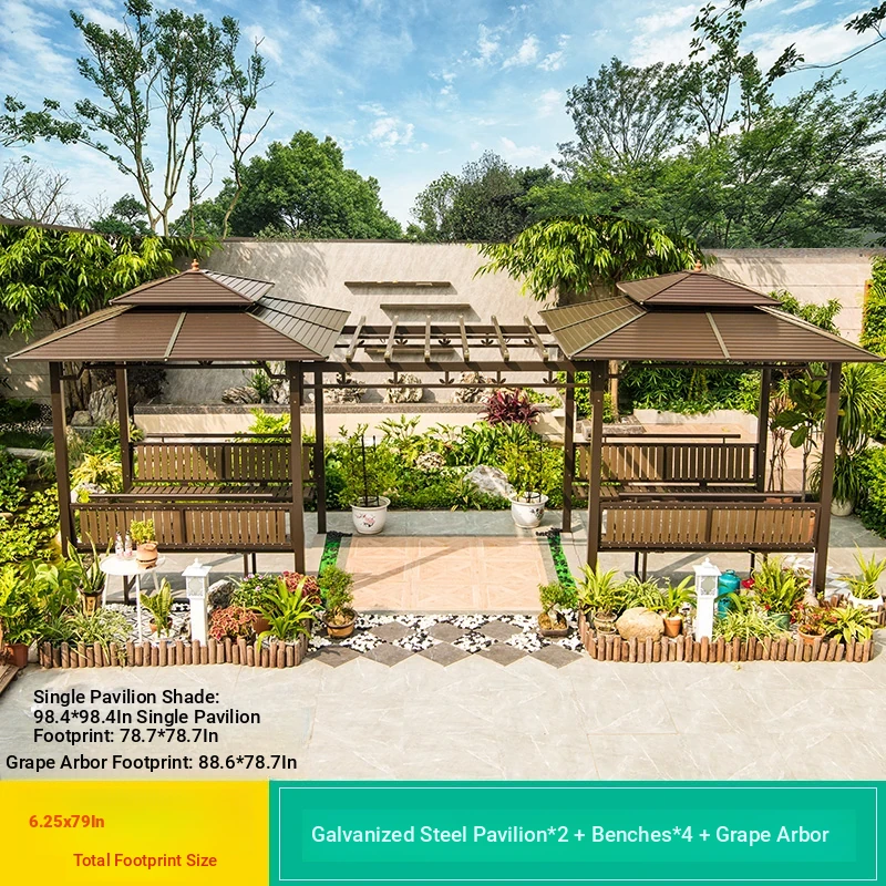 3x 307.09 in galvanized top Pavilion +6 seat boards +2 tables +2 swing + gauze curtain cloth