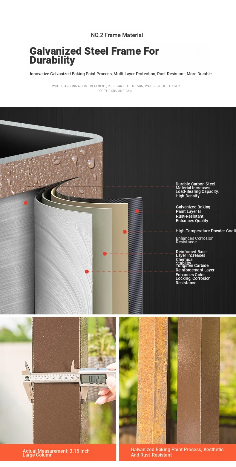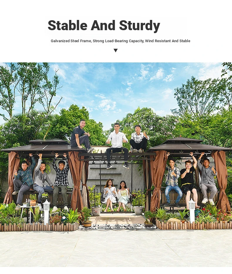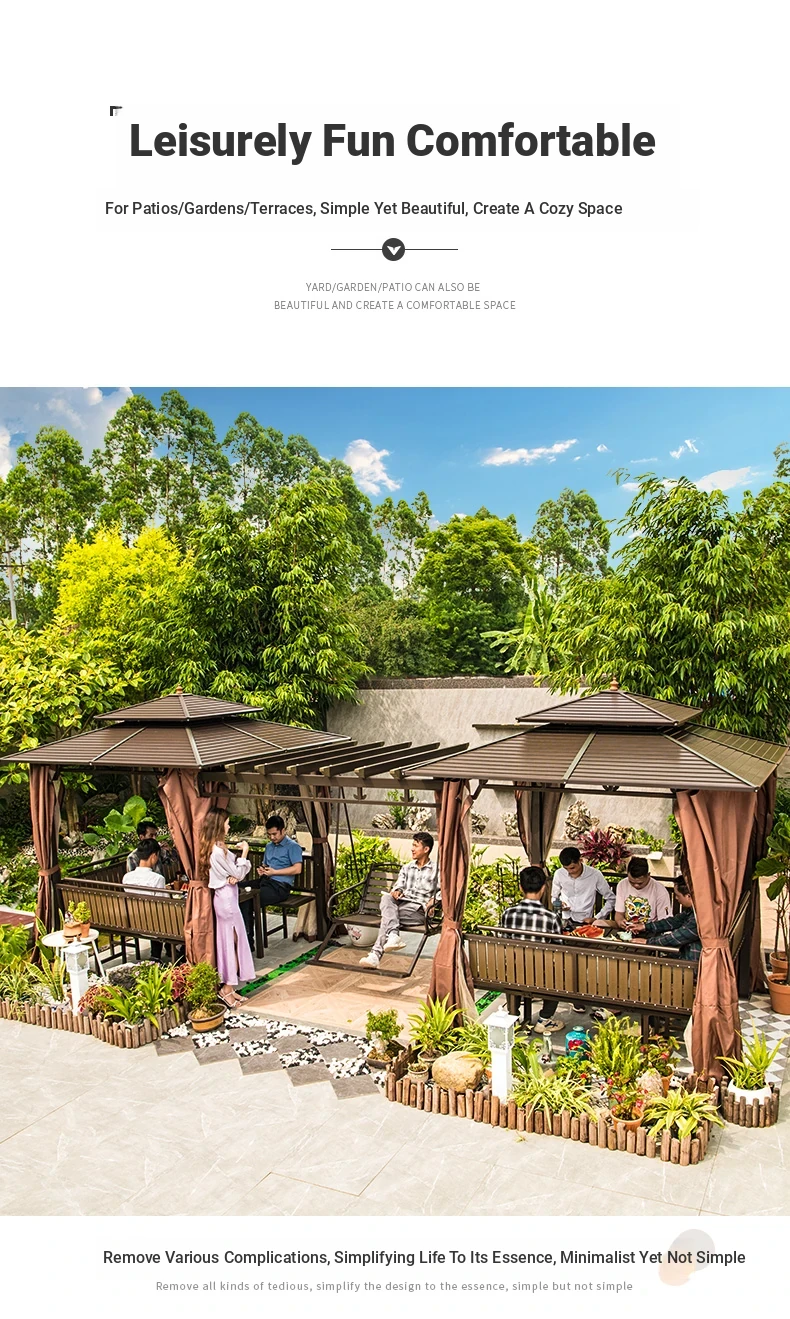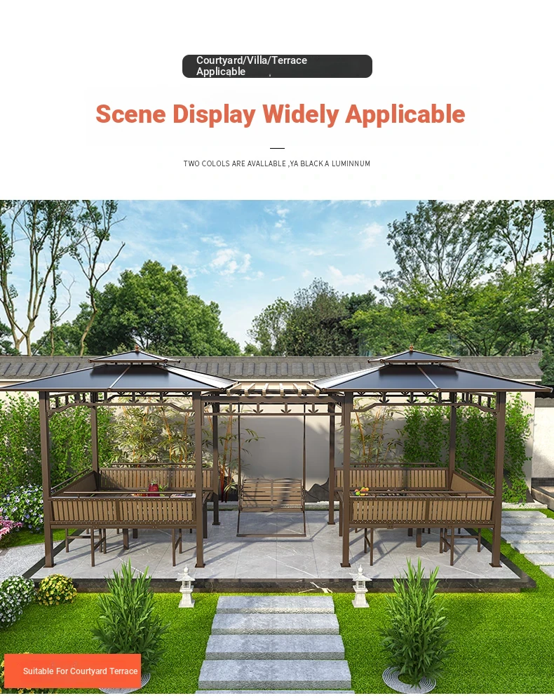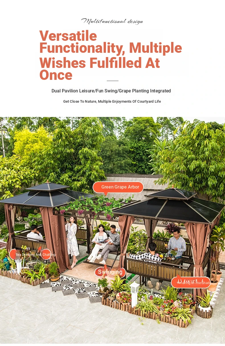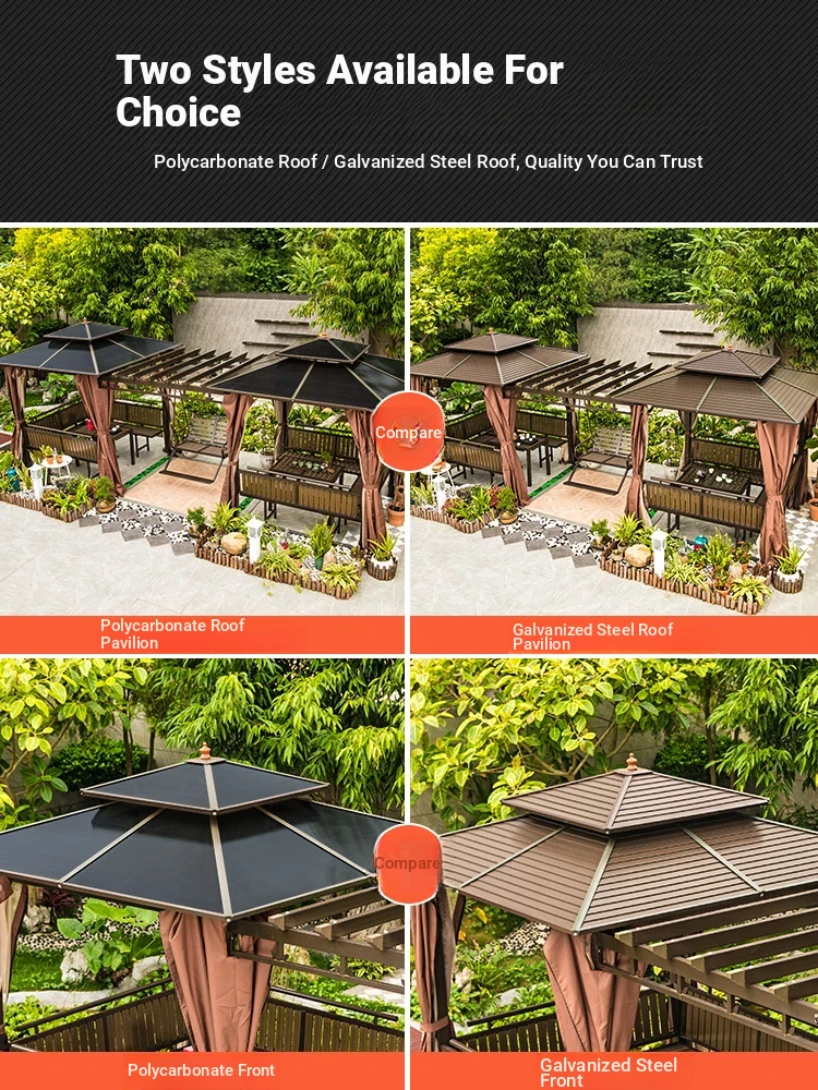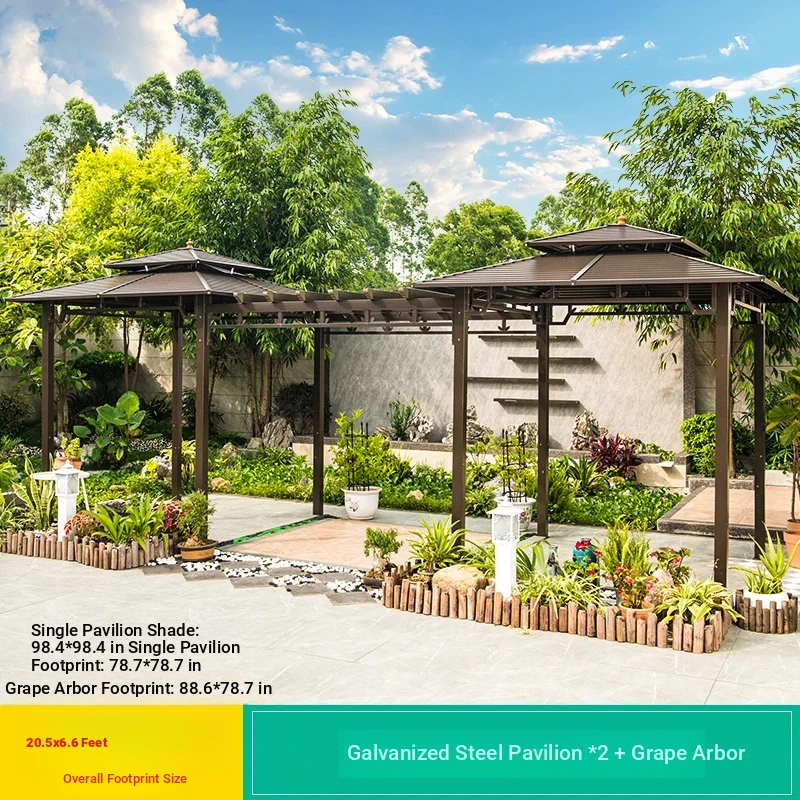 3x 307.09 in galvanized top Pavilion +6 seat boards +2 tables +2 swing + gauze curtain cloth