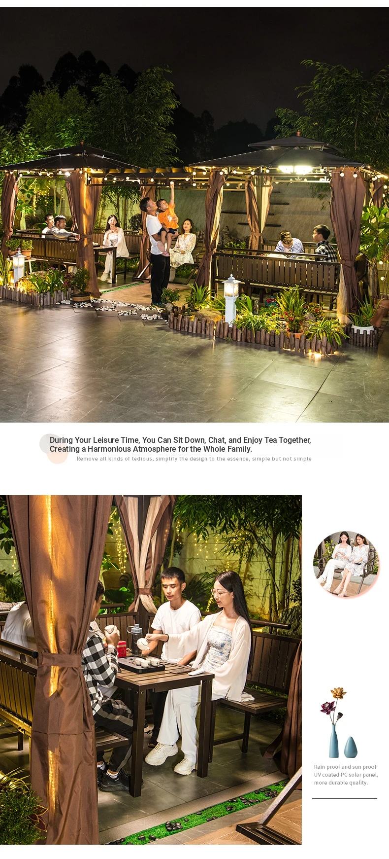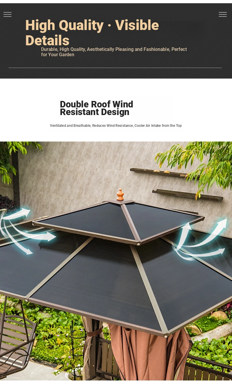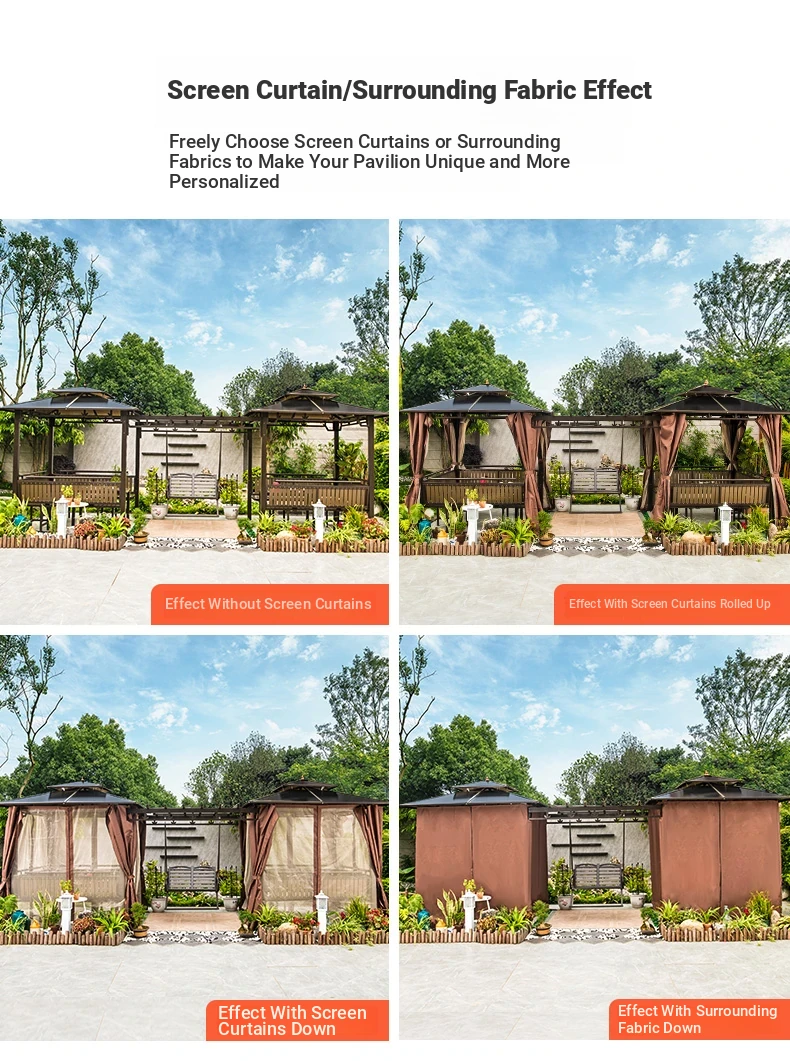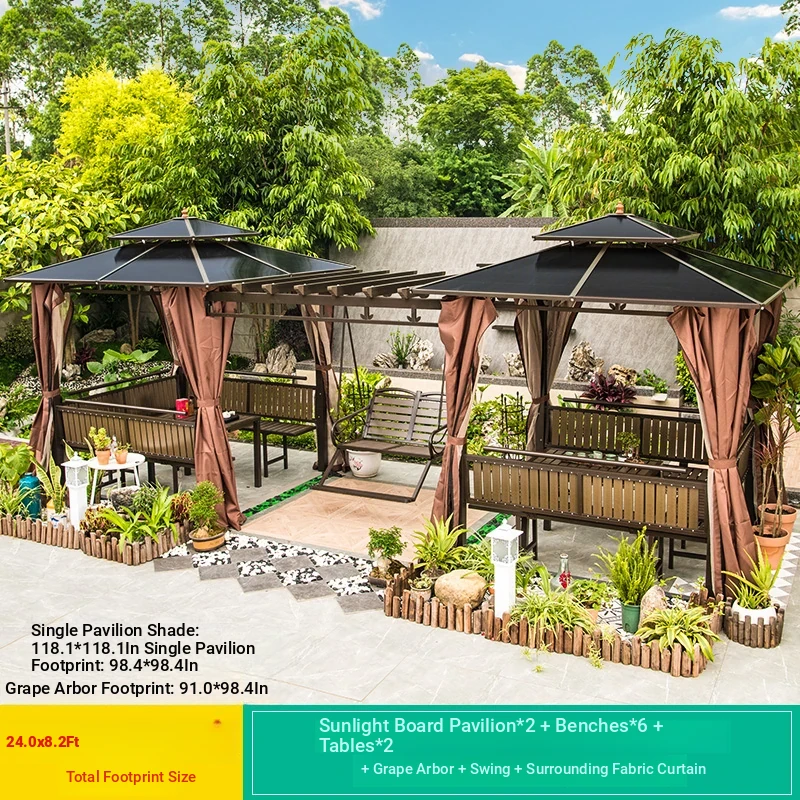 2.5x 267.72 in pavilion +6 seat boards +2 tables +2 swing + gauze curtain cloth
