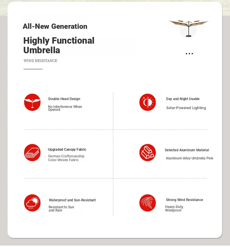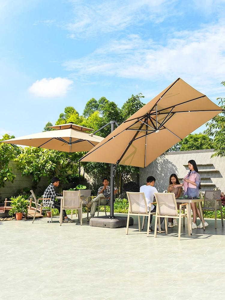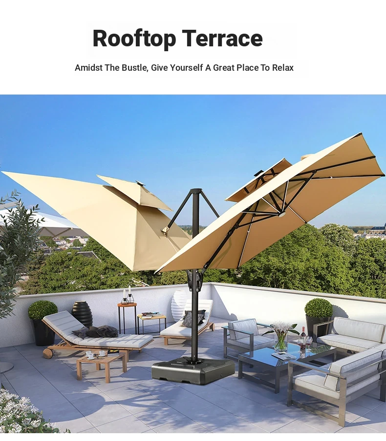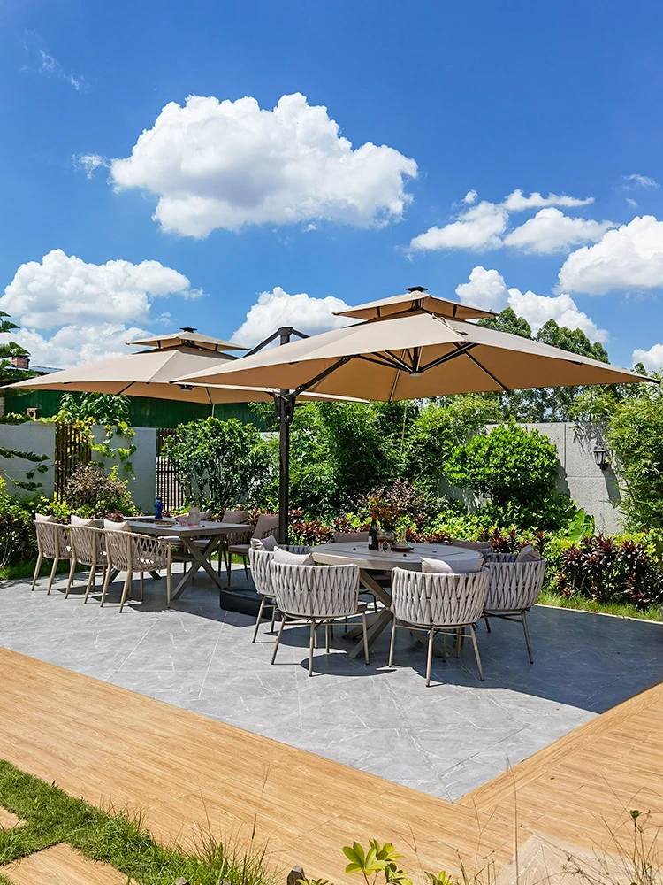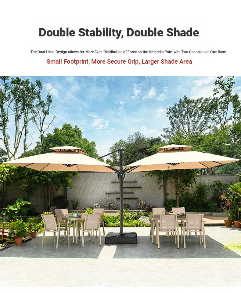 Mo Family Outdoor Furniture Rotating Double-Headed Roman Umbrella - Large Sunshade for Outdoor Cafés, Commercial Use, and Patios. Perfect for Enjoying Shade in Style!
