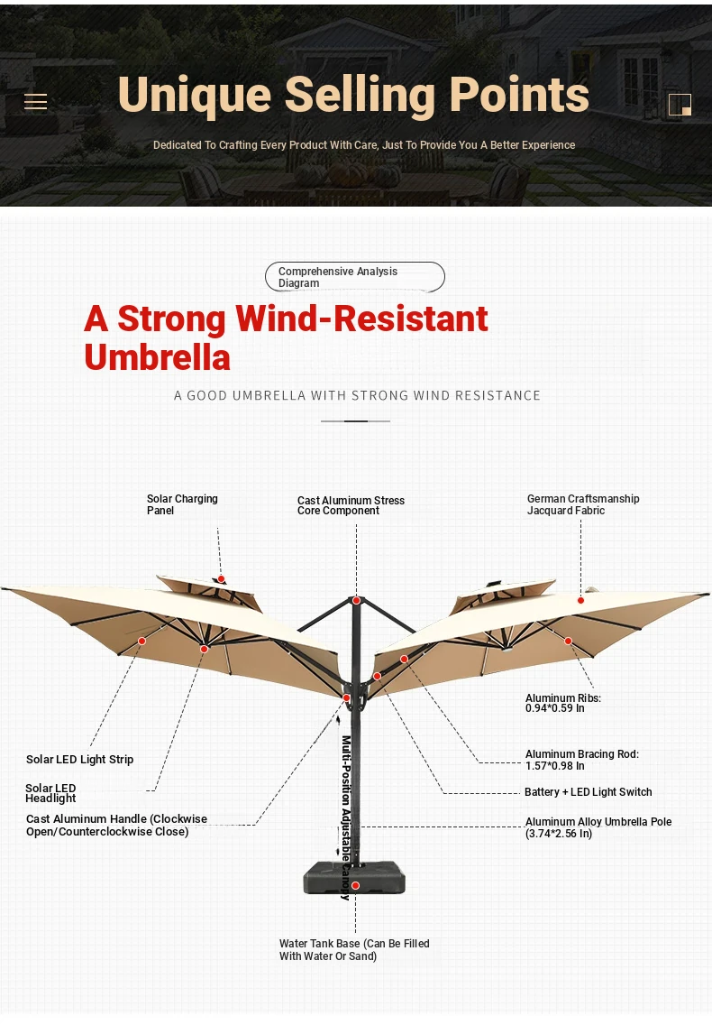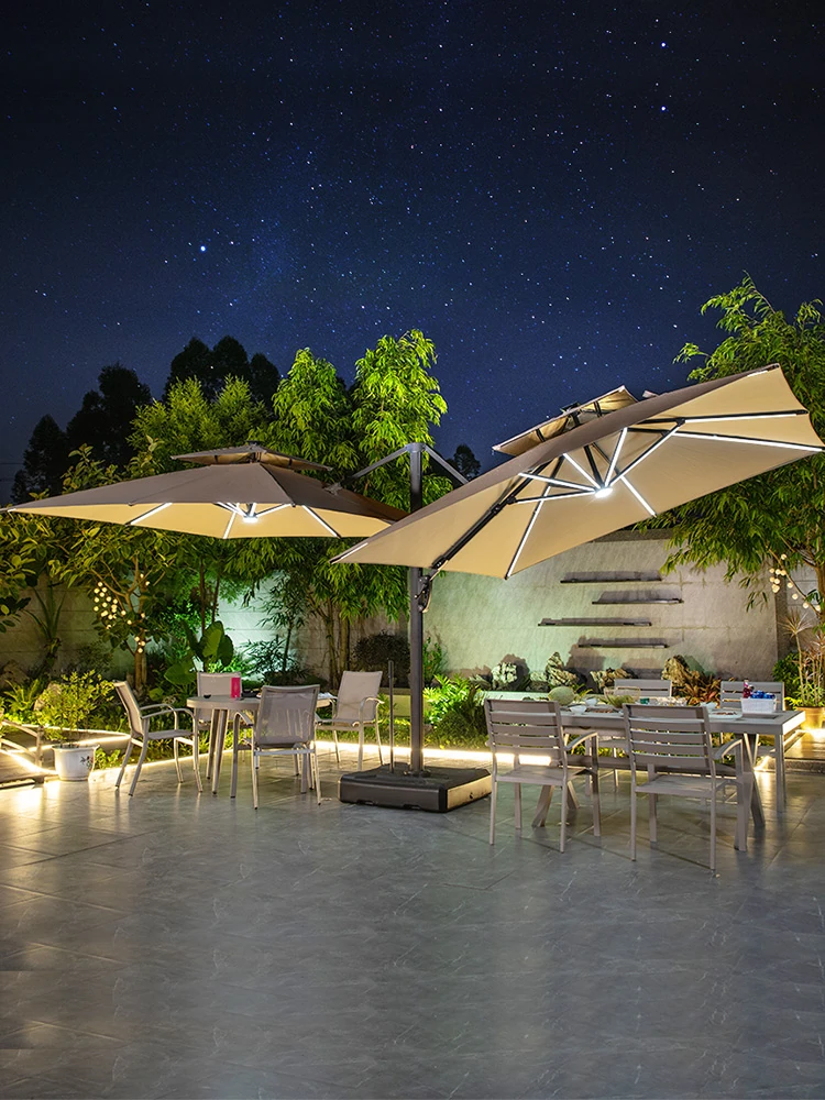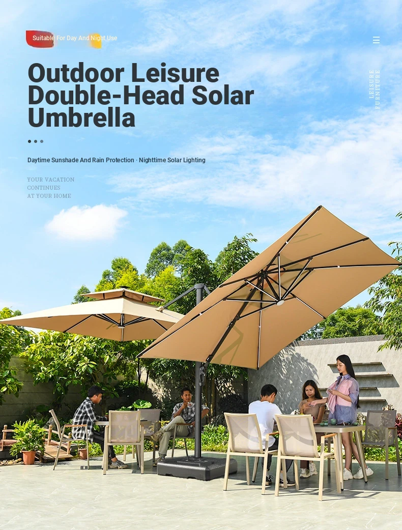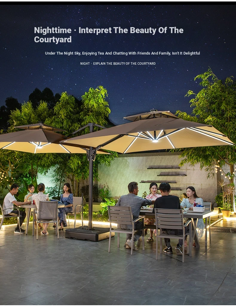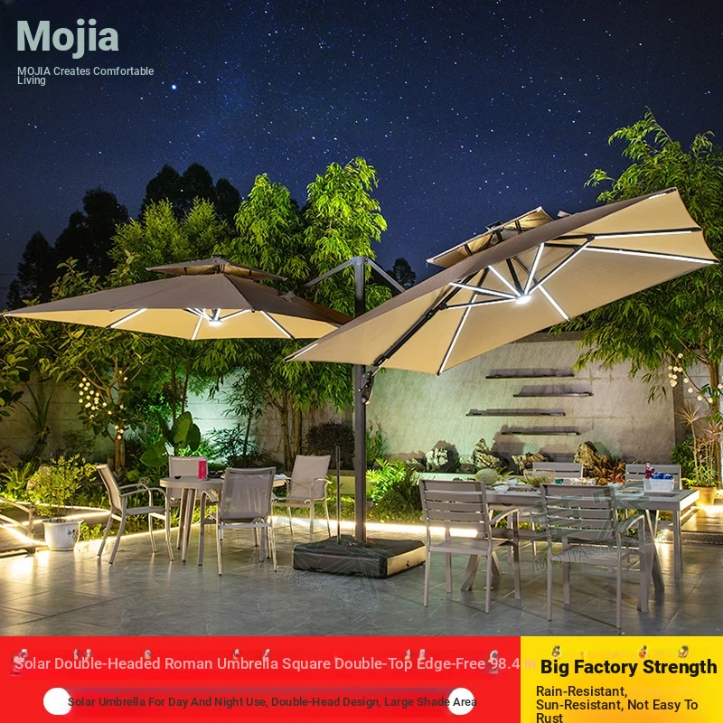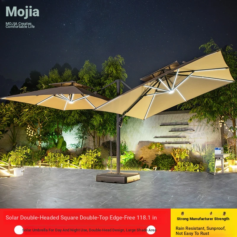 Single-head solar space aluminum lamp umbrella double-top boundless 118.11 in [lamp clause-warm light]]