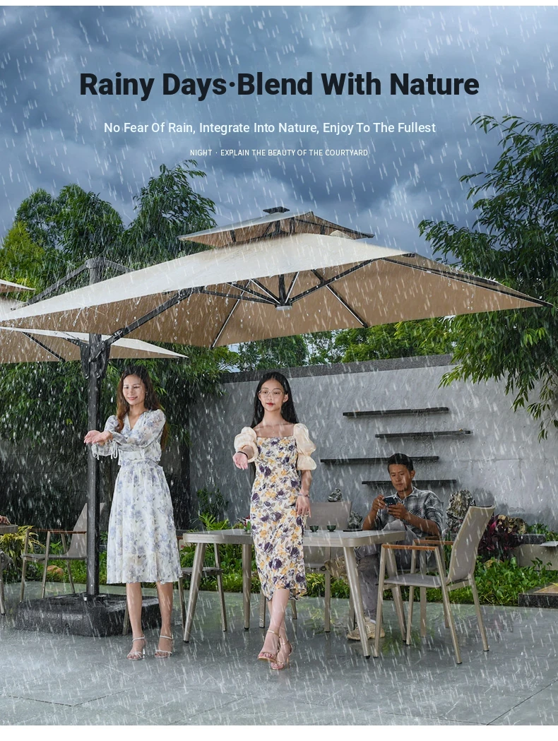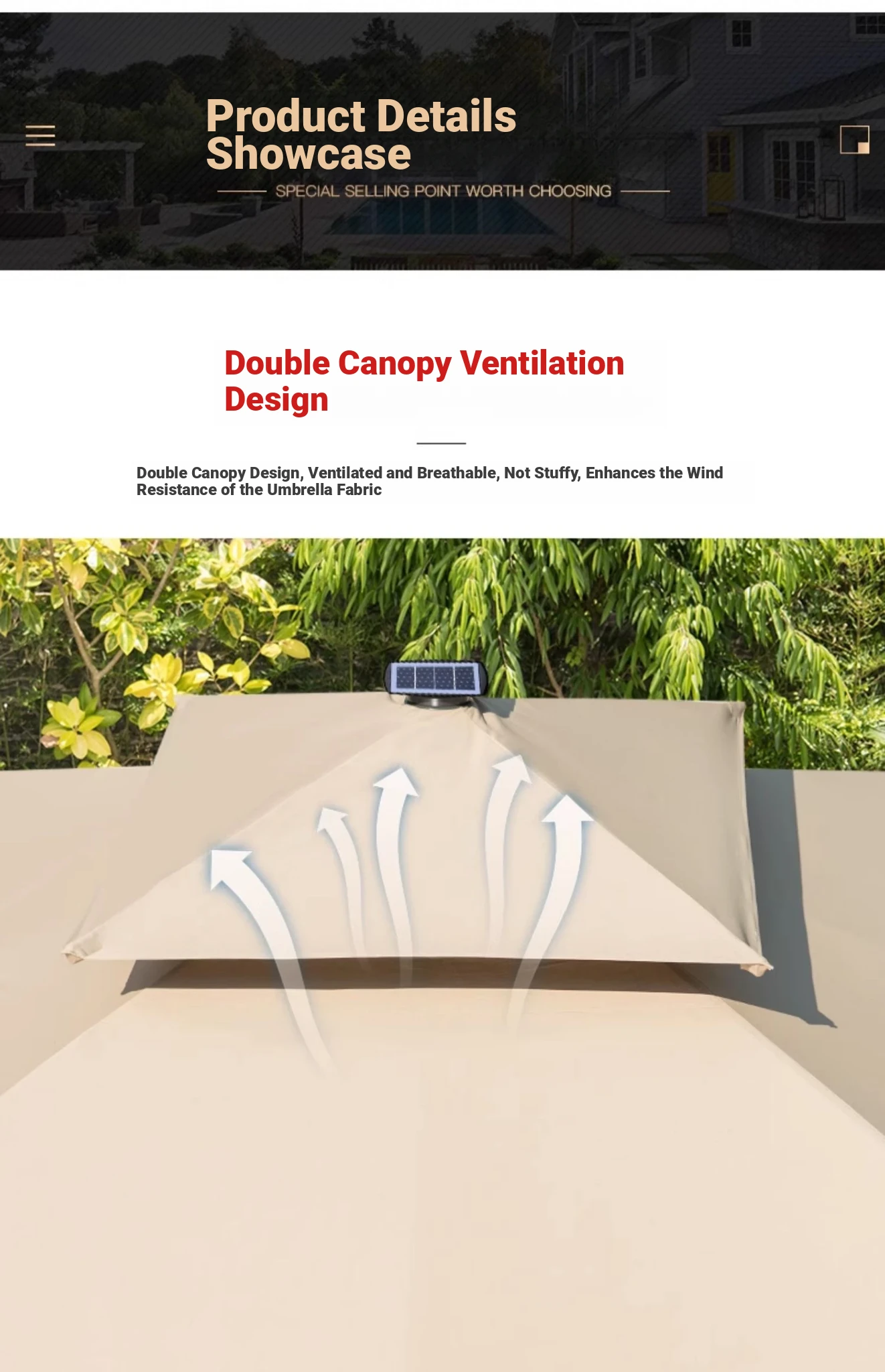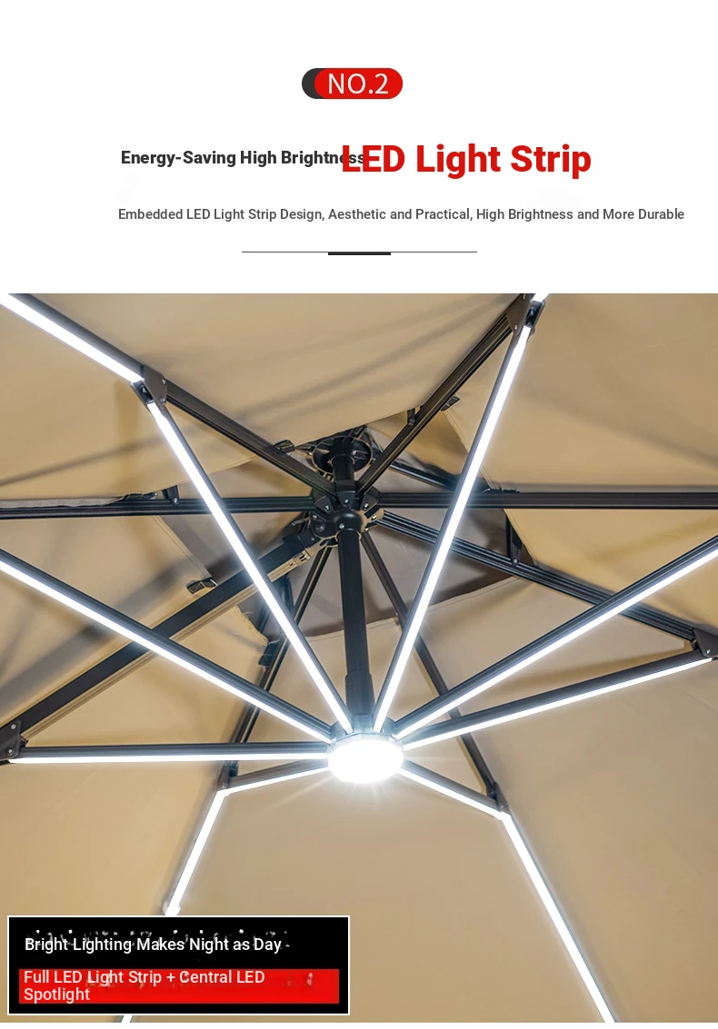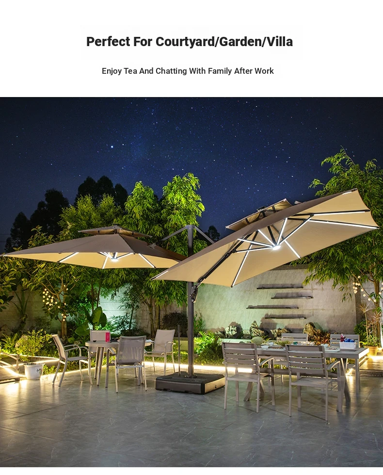 Single-head solar space aluminum lamp umbrella double-top boundless 118.11 in [lamp clause-warm light]]