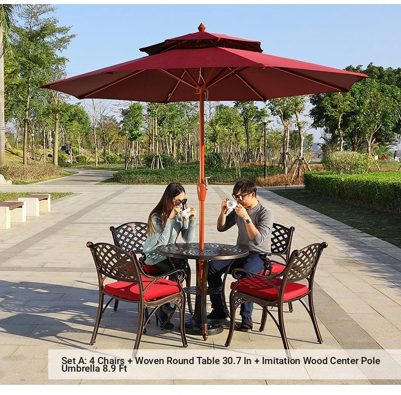 A: 4+1 [30.71in woven round table] +106.30in umbrella