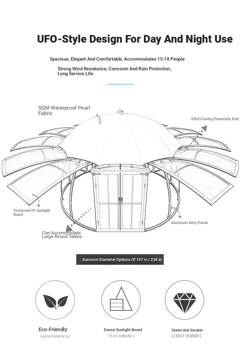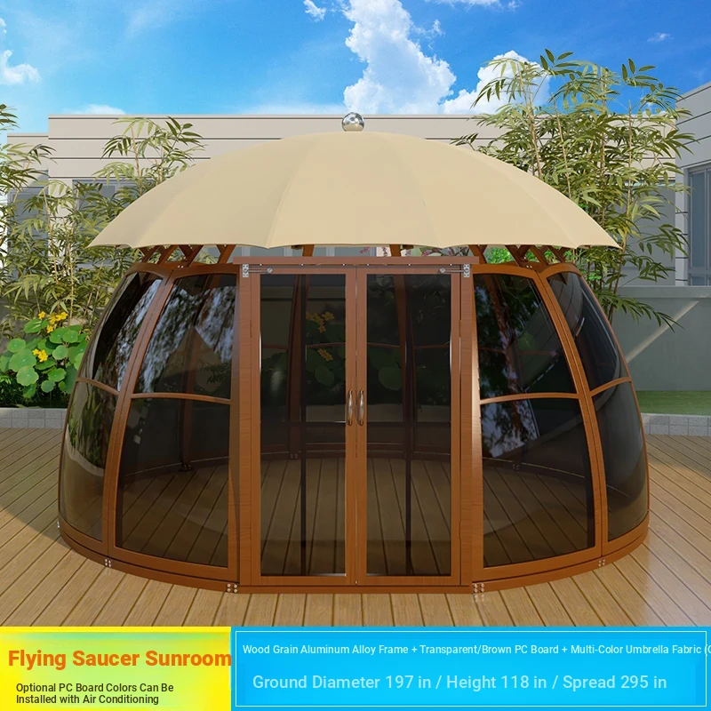 Alien UFO local tyrants: wood grain aluminum alloy Sunshine Room with a diameter of 196.85 ins