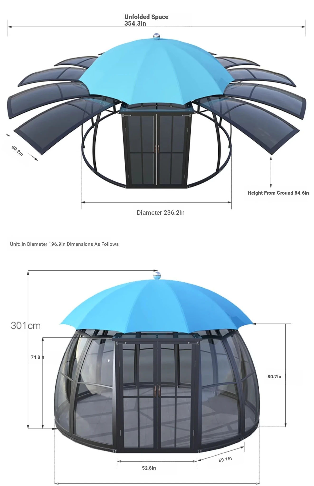 Alien UFO local tyrants: black aluminum alloy Sunshine Room with a diameter of 236.22 ins