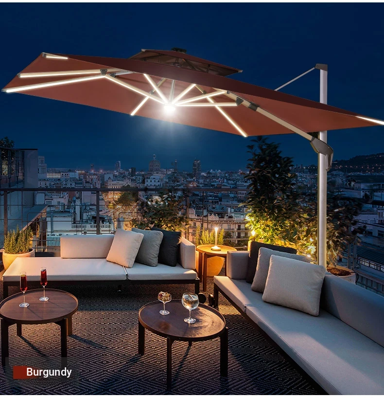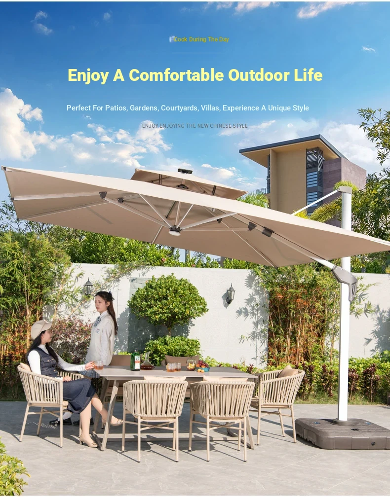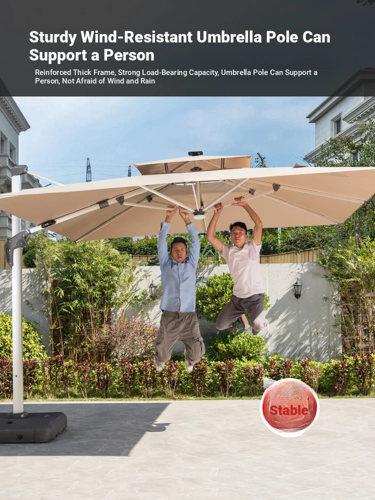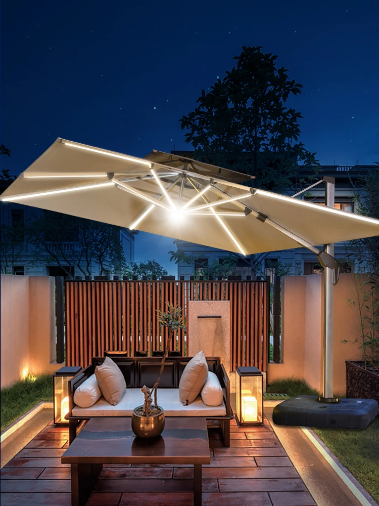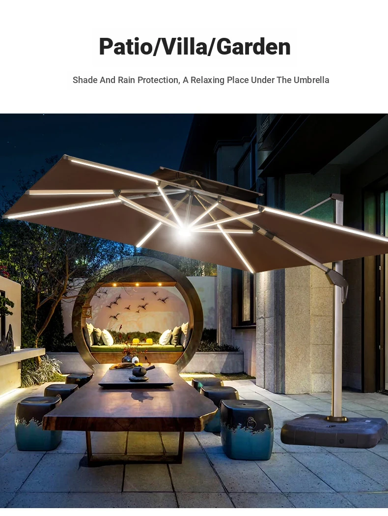 Mo Family Outdoor Solar-Powered LED Patio Umbrella - 3x4m Large 3.5m Wind-Resistant Roman Umbrella for Courtyards and Villas