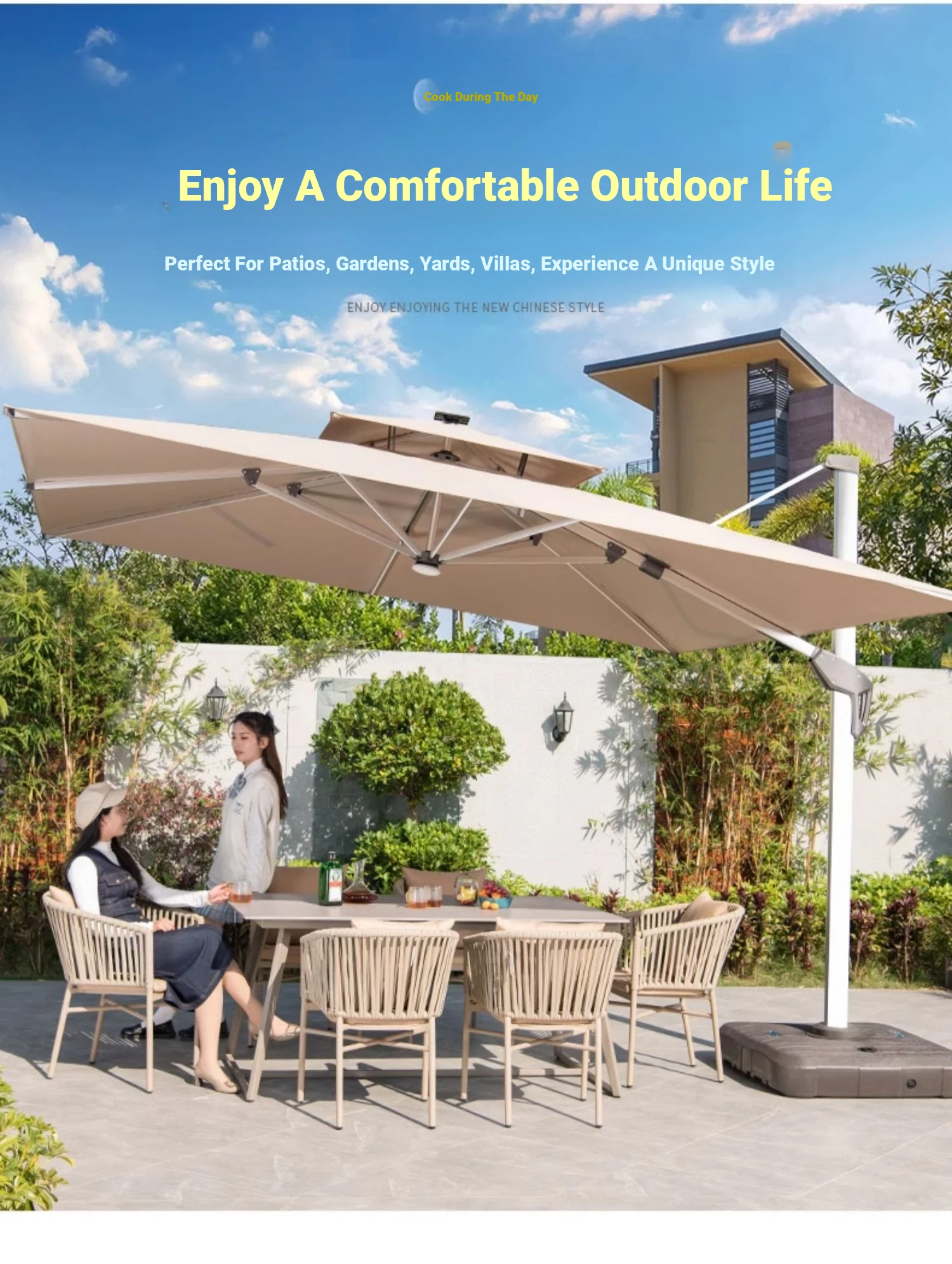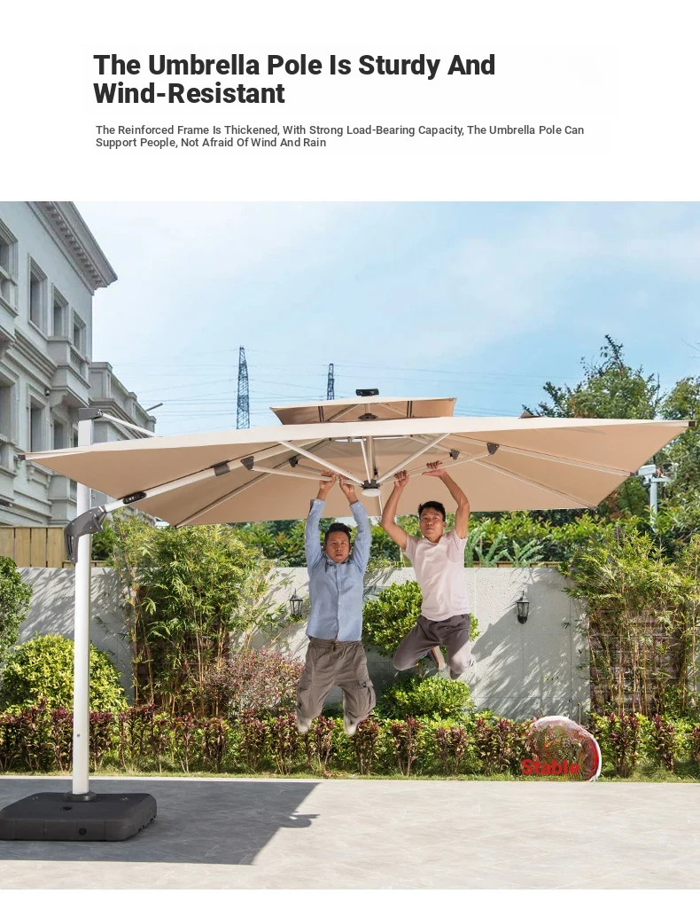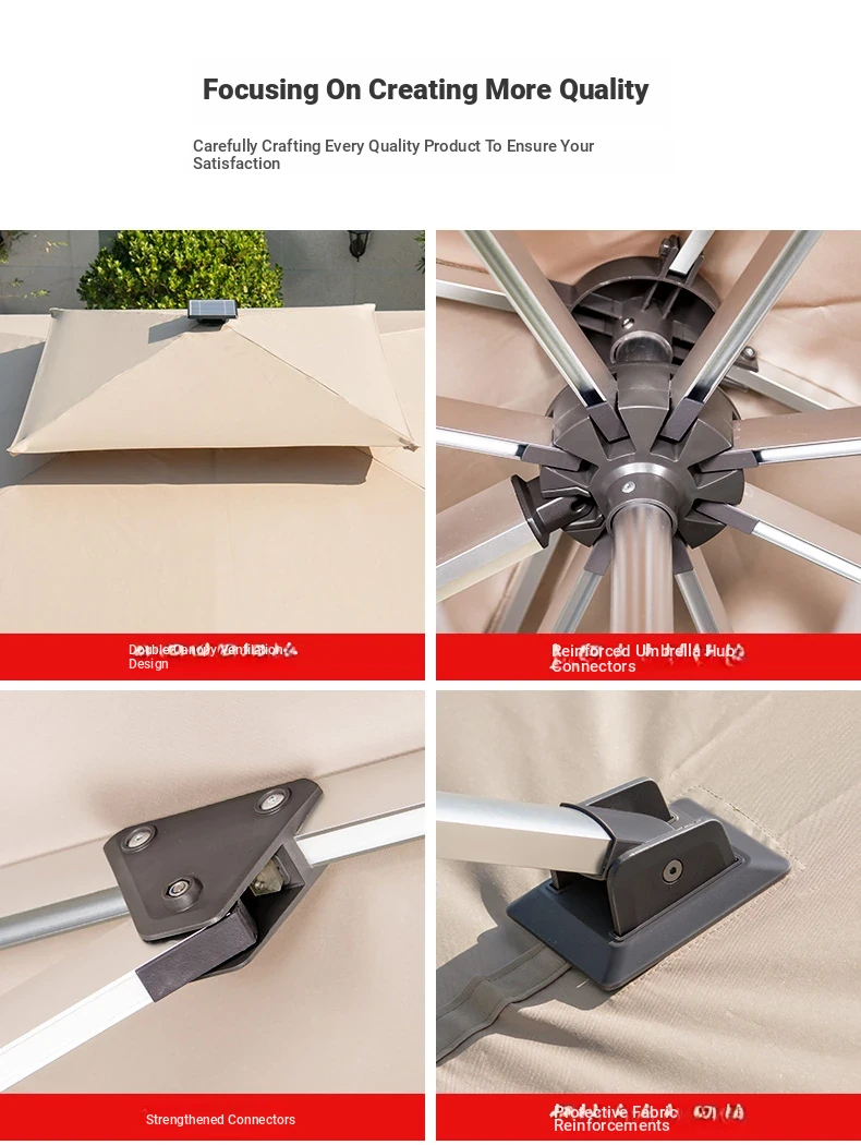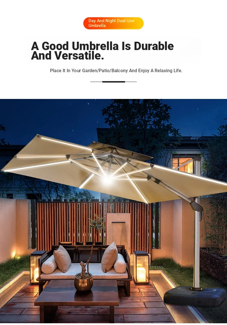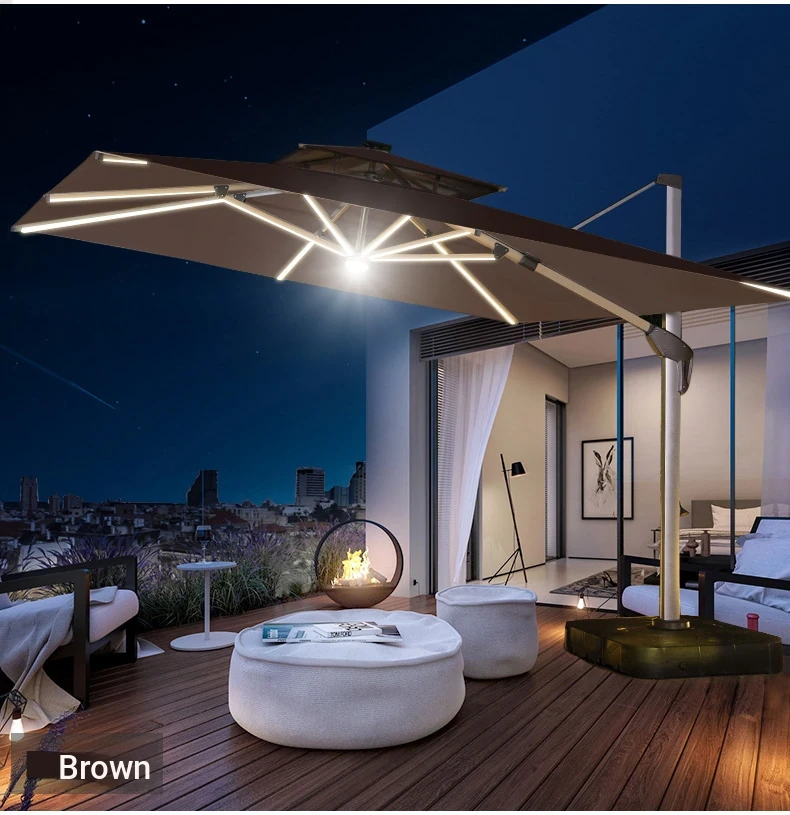 Mo Family Outdoor Solar-Powered LED Patio Umbrella - 3x4m Large 3.5m Wind-Resistant Roman Umbrella for Courtyards and Villas