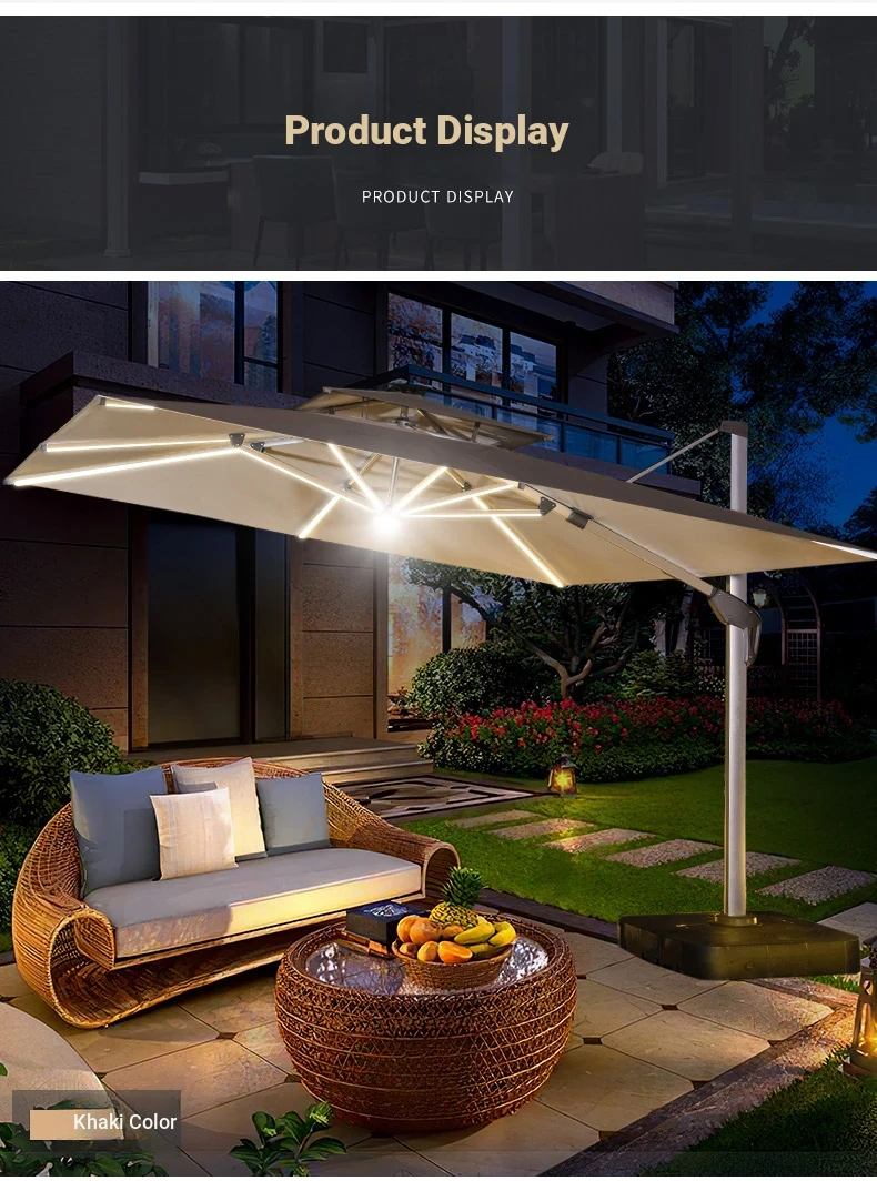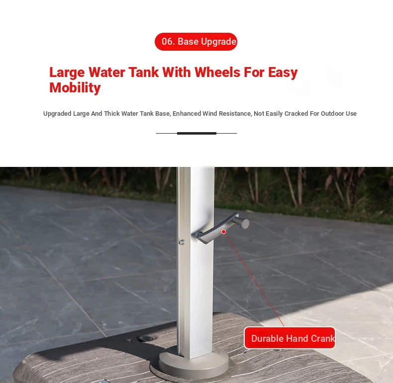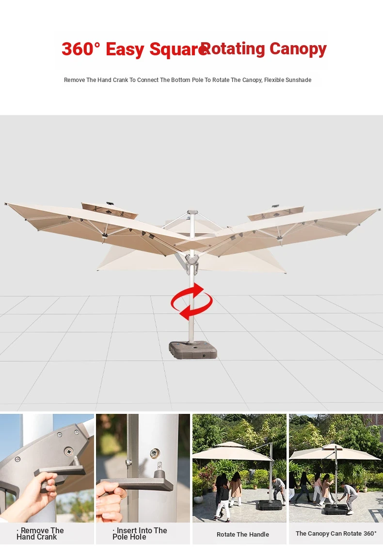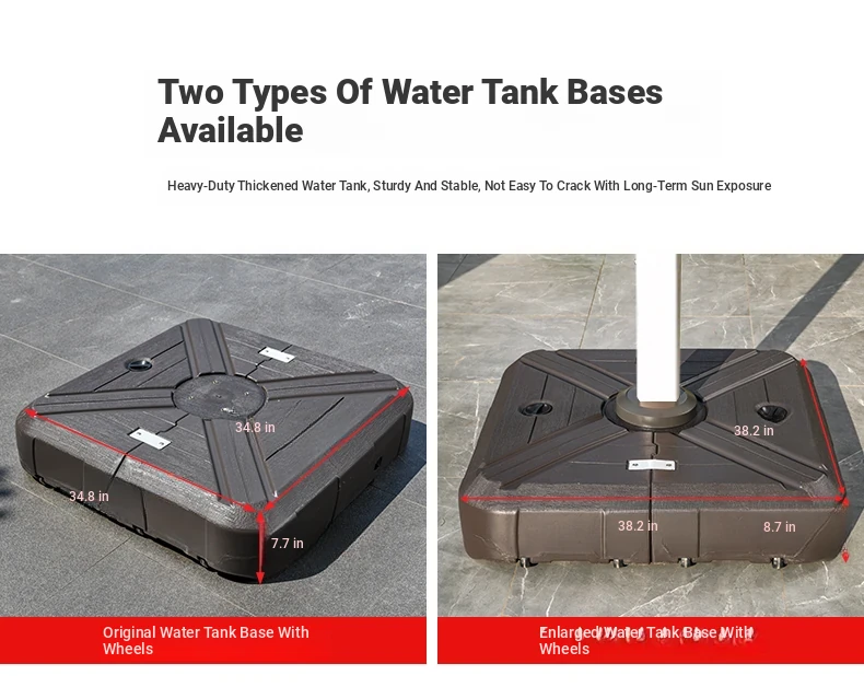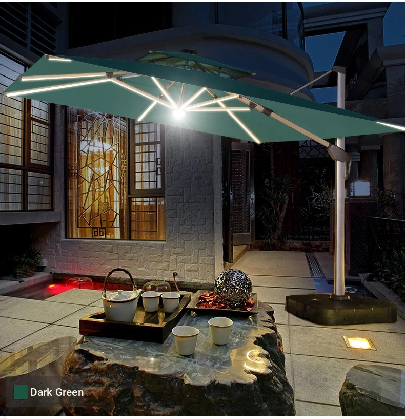 Square 118.11 in solar umbrella with enlarged wheeled water tank base [with light bar]]