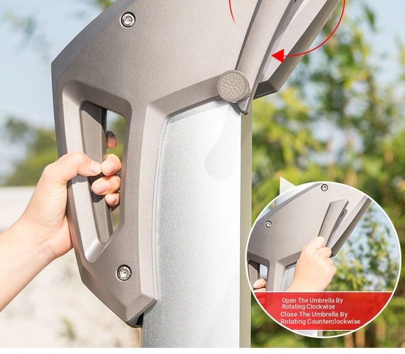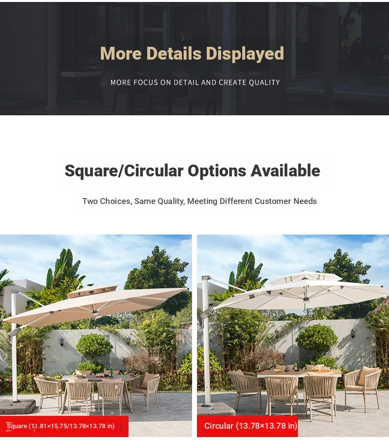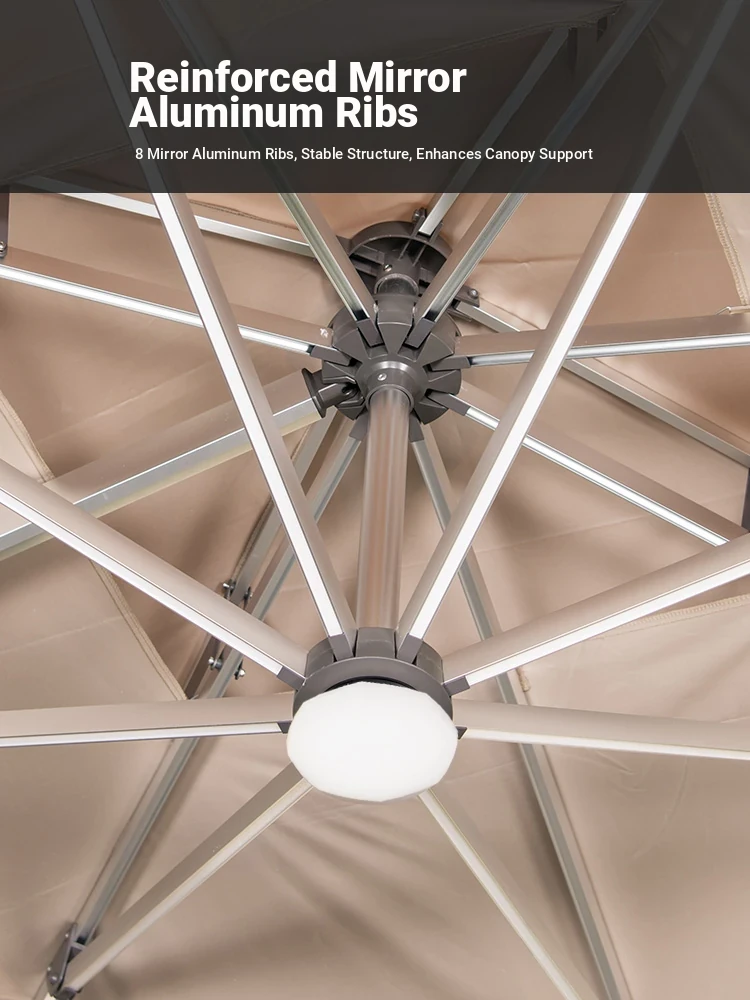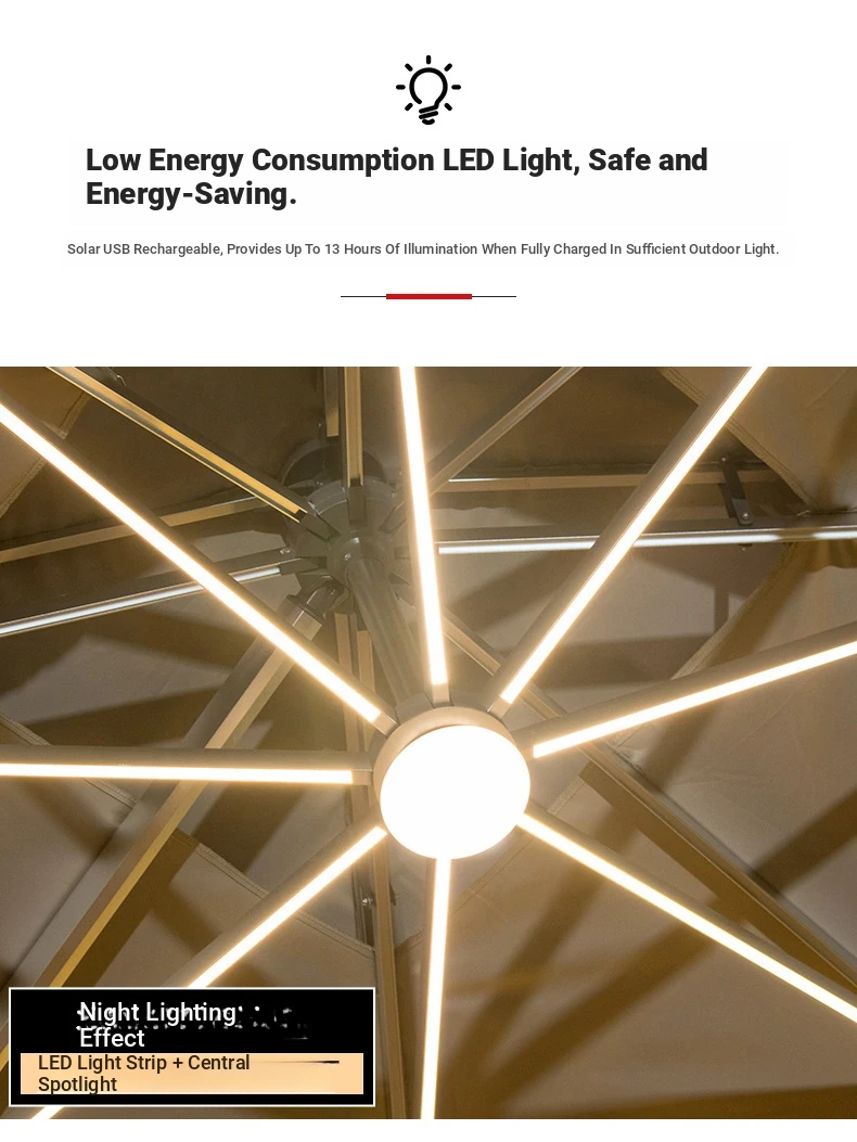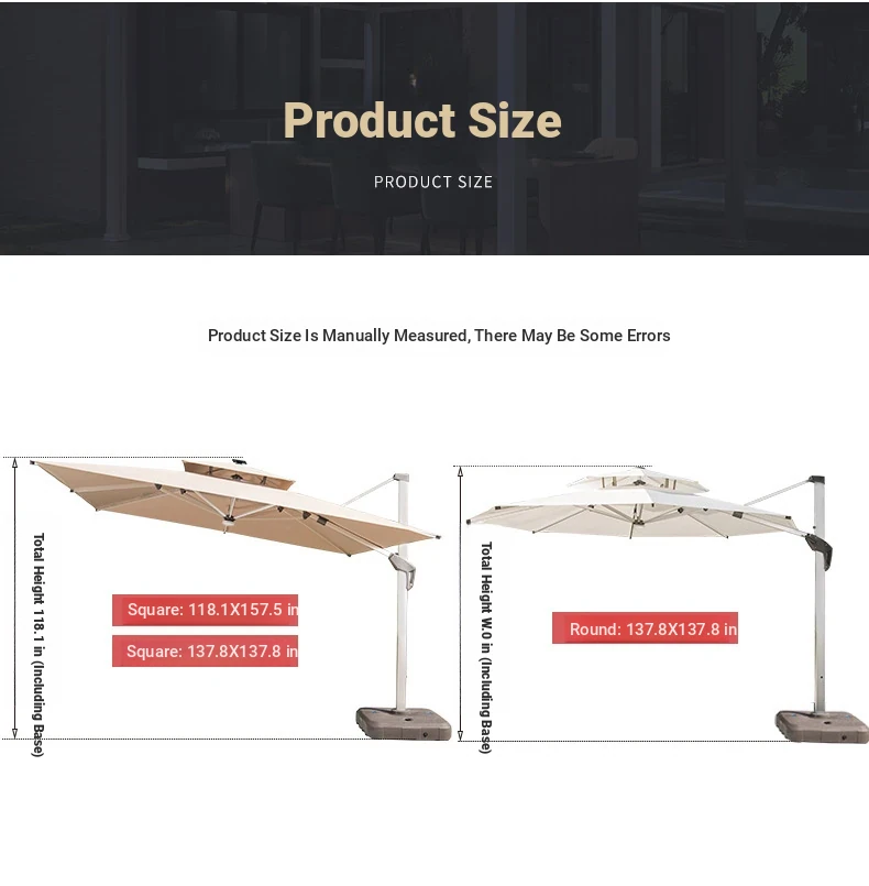 Square 118.11 in solar umbrella with enlarged wheeled water tank base [with light bar]]