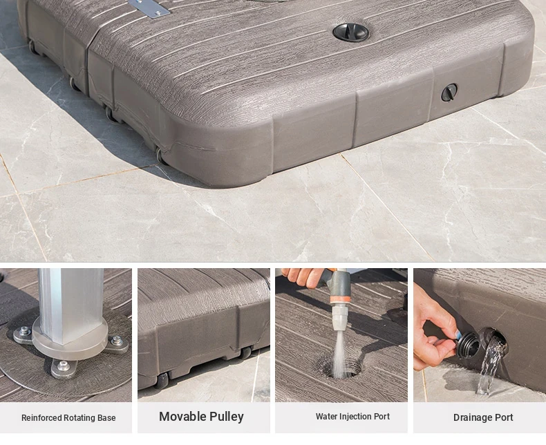 Square 3x 157.48 in solar umbrella with enlarged wheeled water tank base [with light bar]]