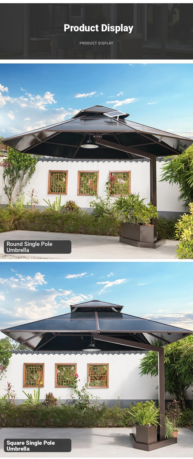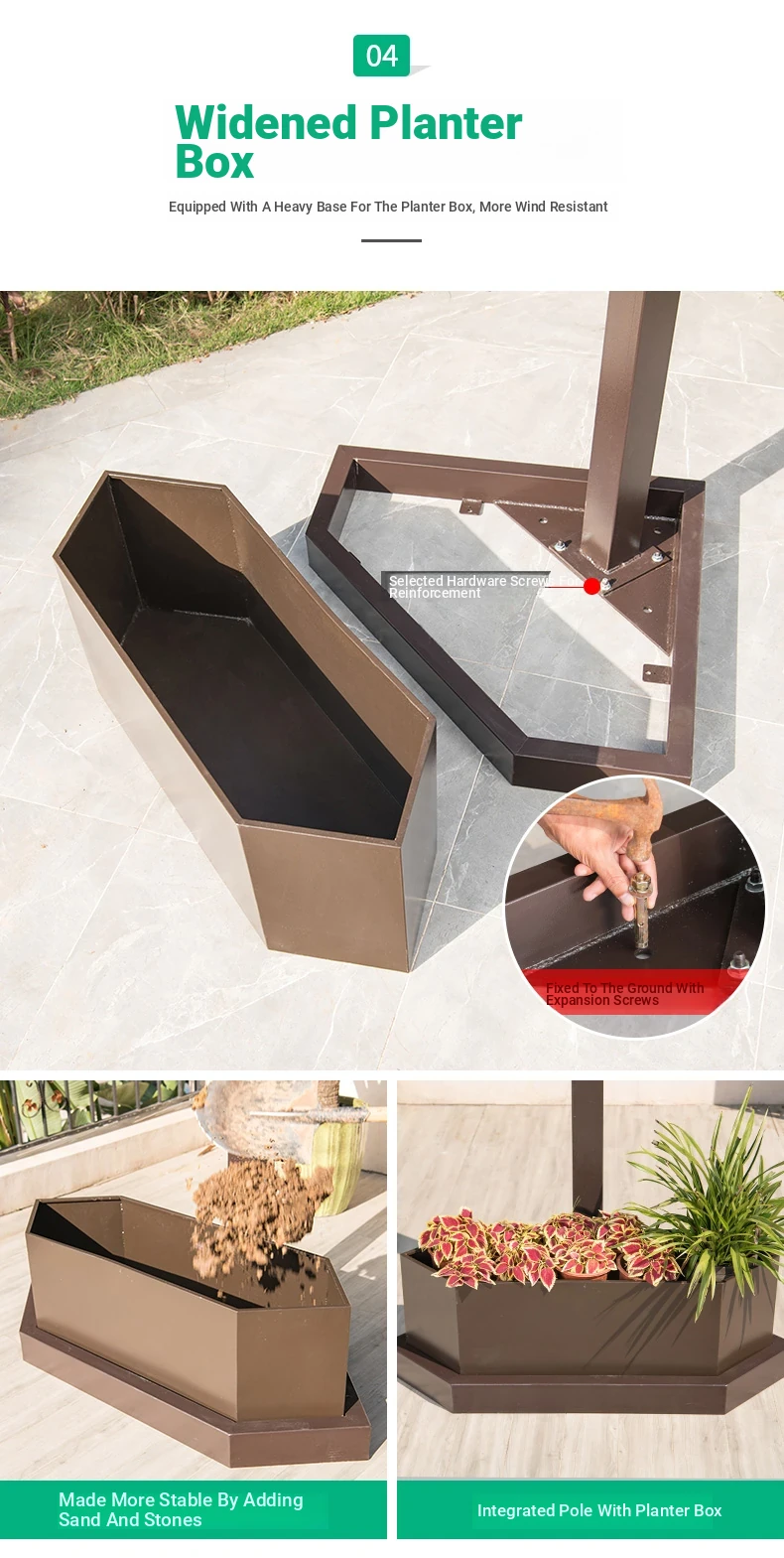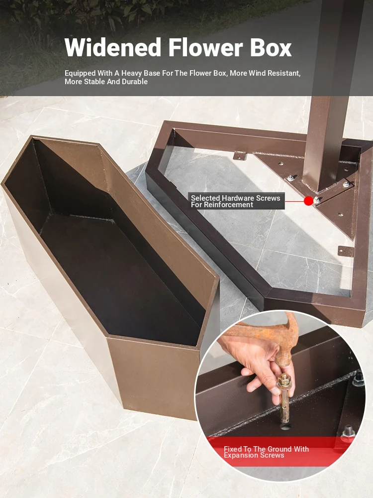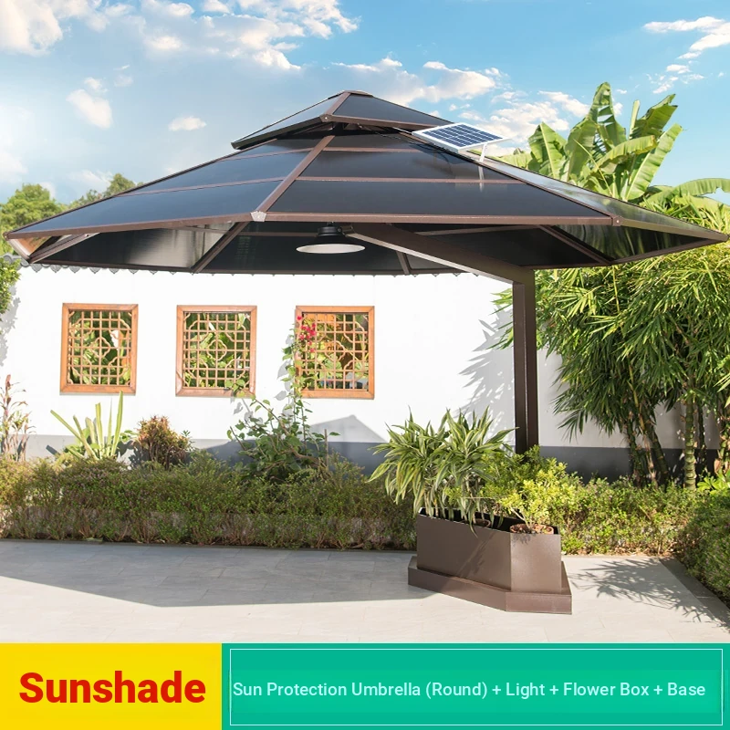 118.11 in square Sunshine board umbrella + lamp + flower box + base