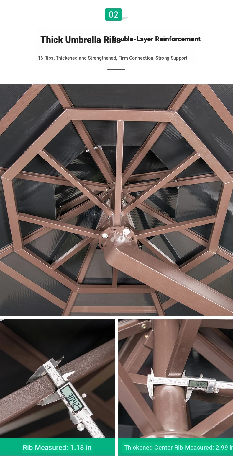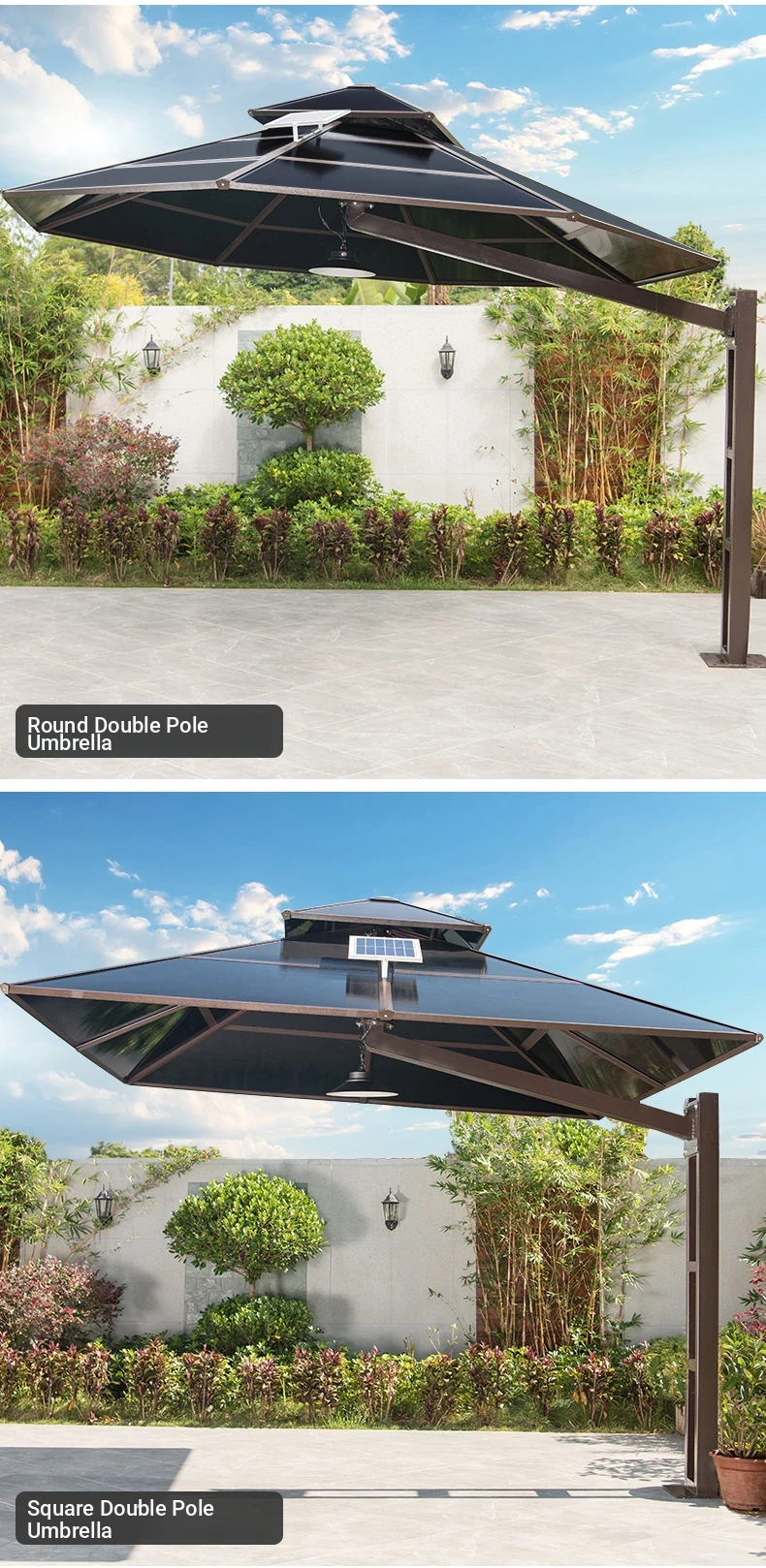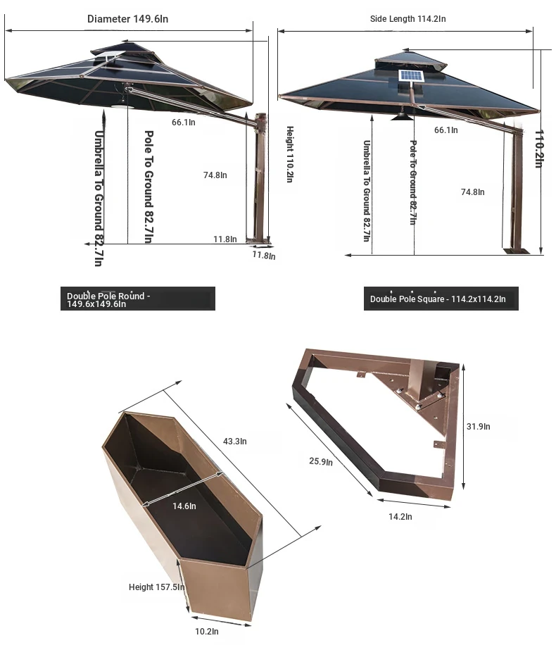 118.11 in Square Double Bar Sunlight Board Umbrella + Lamp