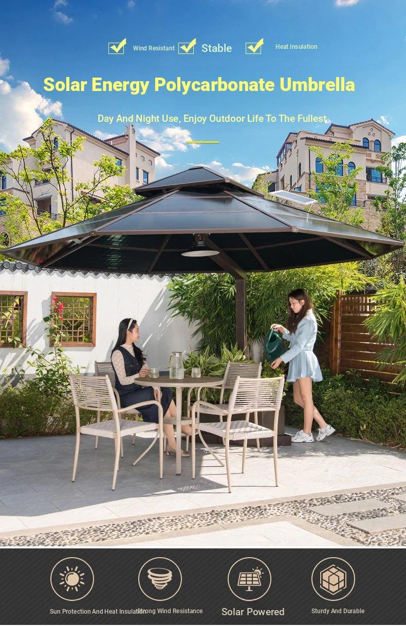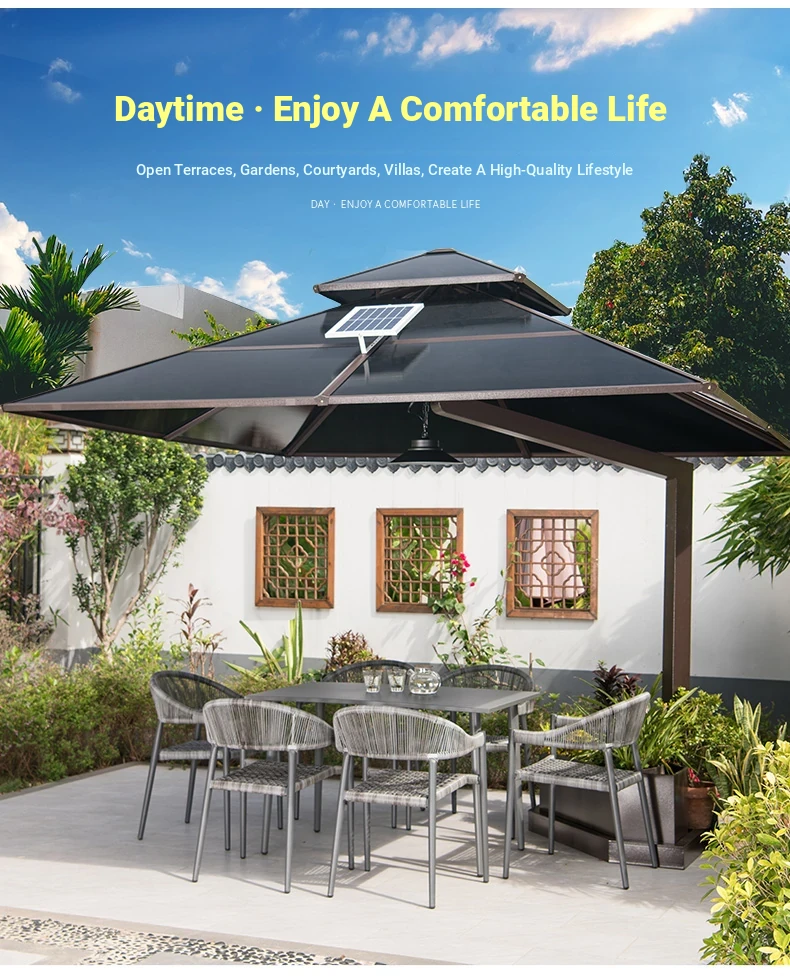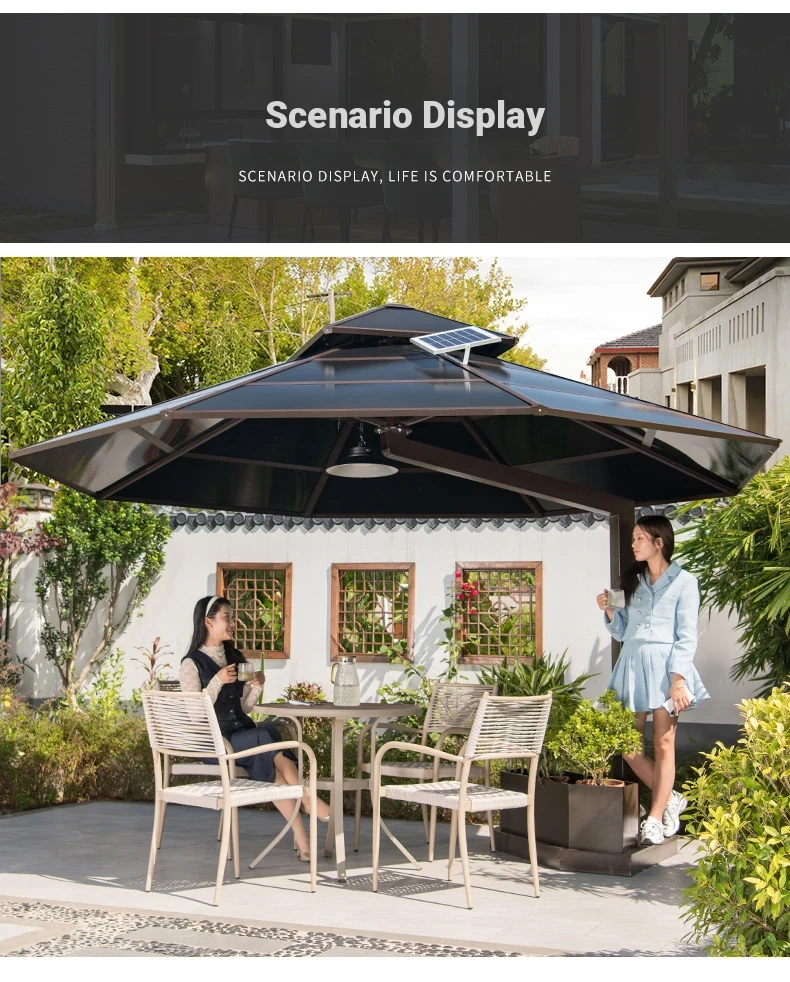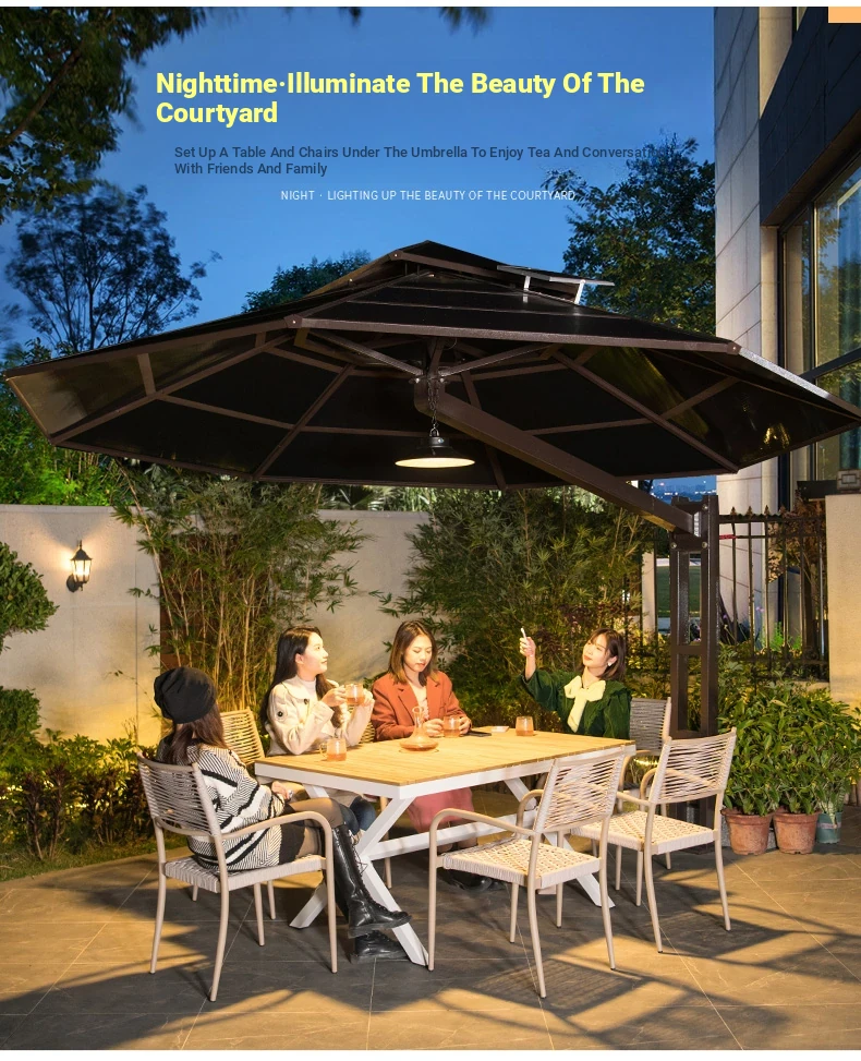 Mo Family Outdoor Umbrella - Villa Garden Patio Roof Terrace Roman Sunshade with Wind Resistance and Built-in LED Light