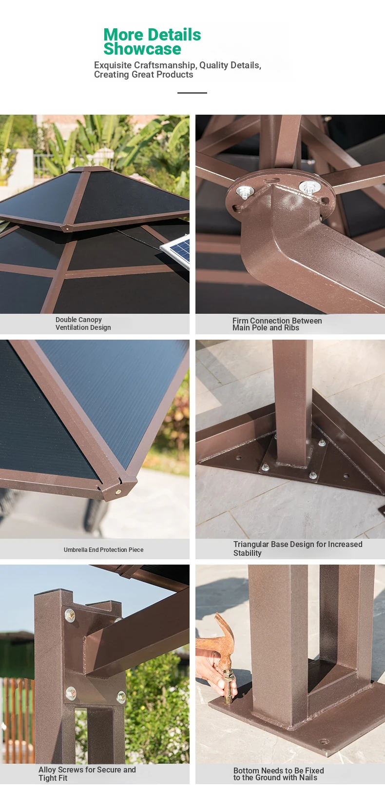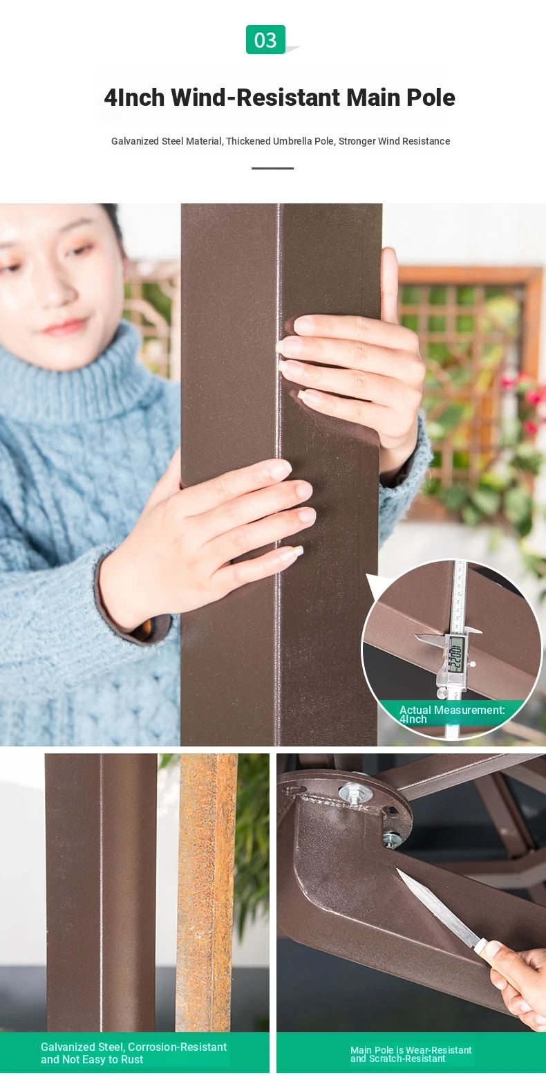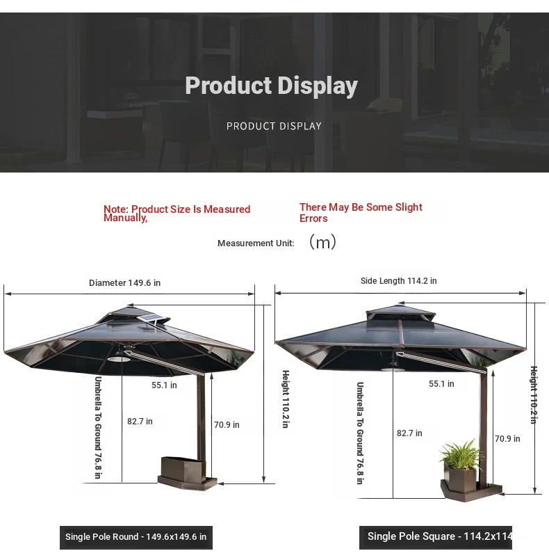 Mo Family Outdoor Umbrella - Villa Garden Patio Roof Terrace Roman Sunshade with Wind Resistance and Built-in LED Light