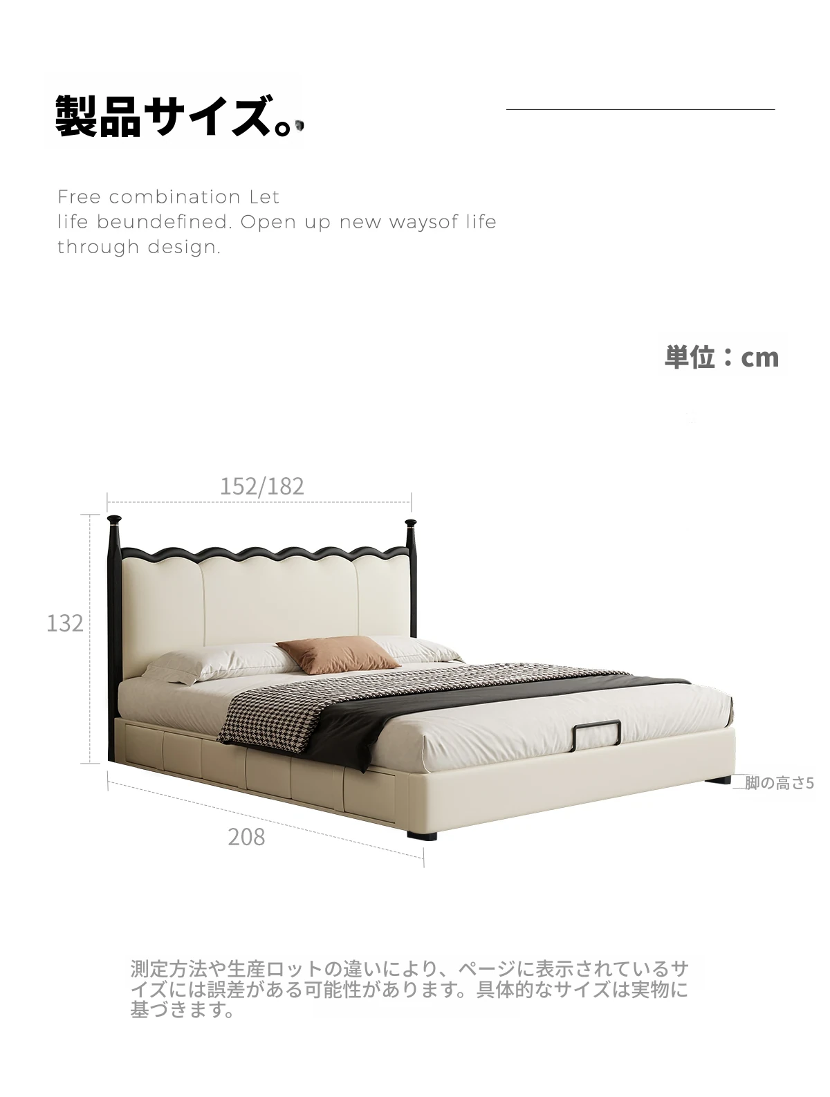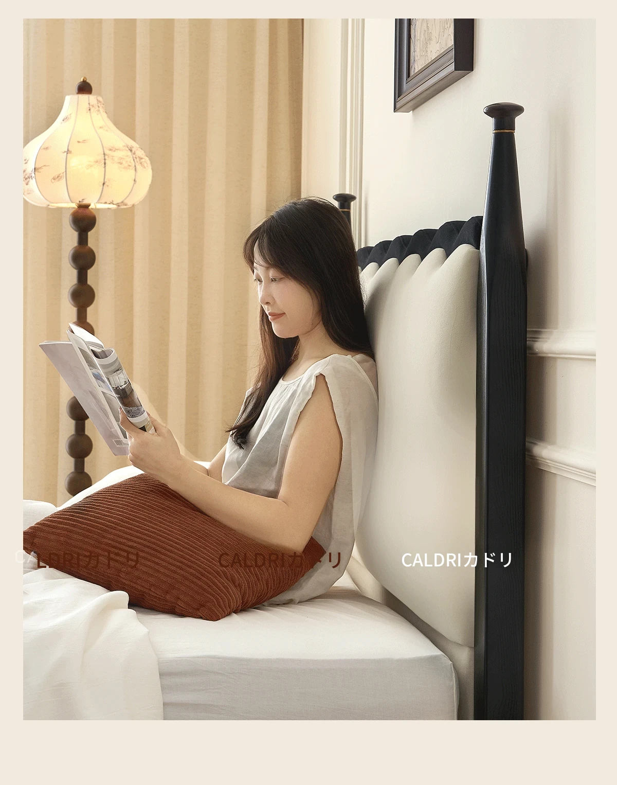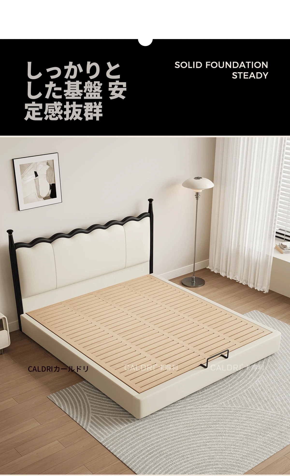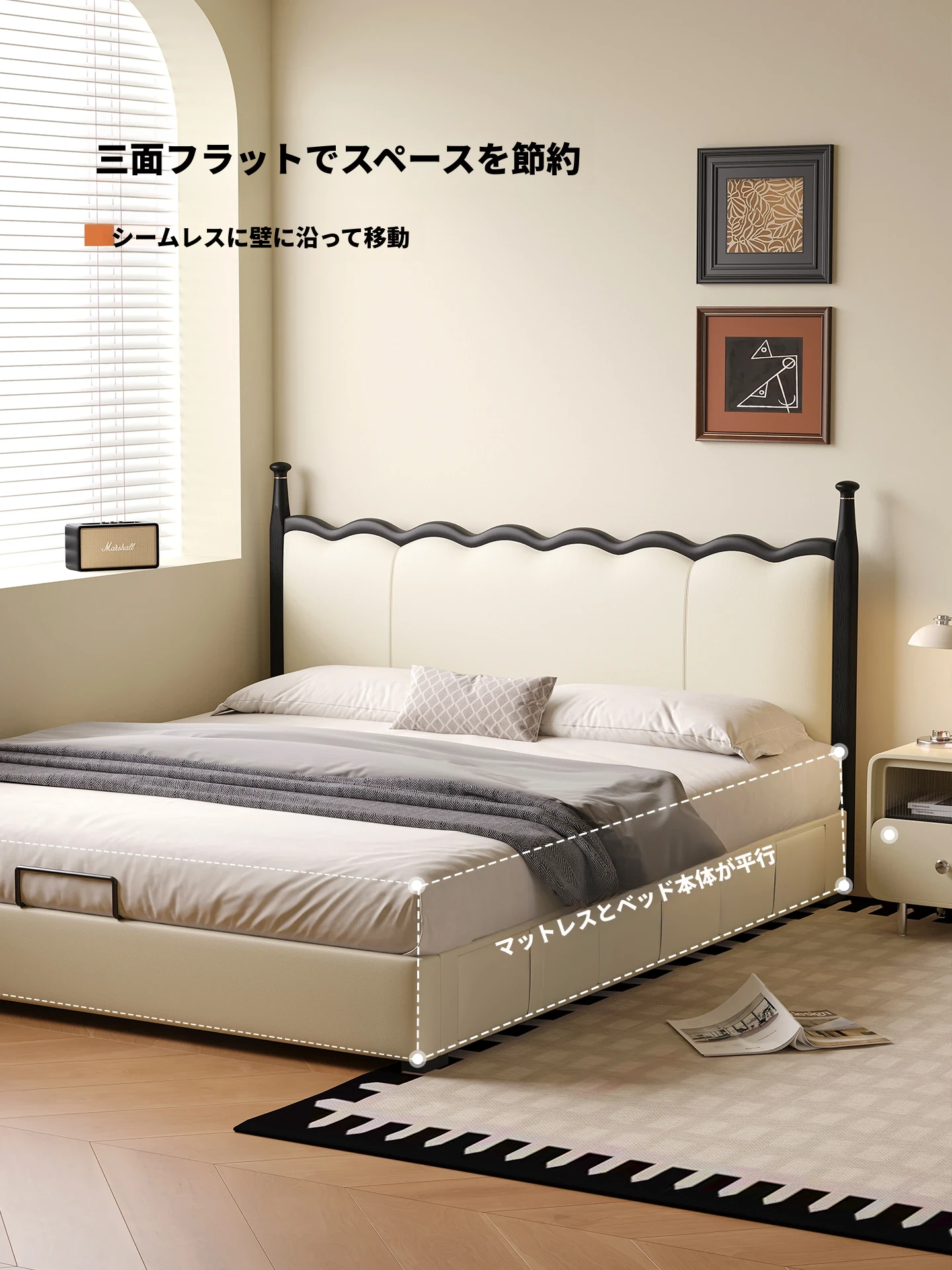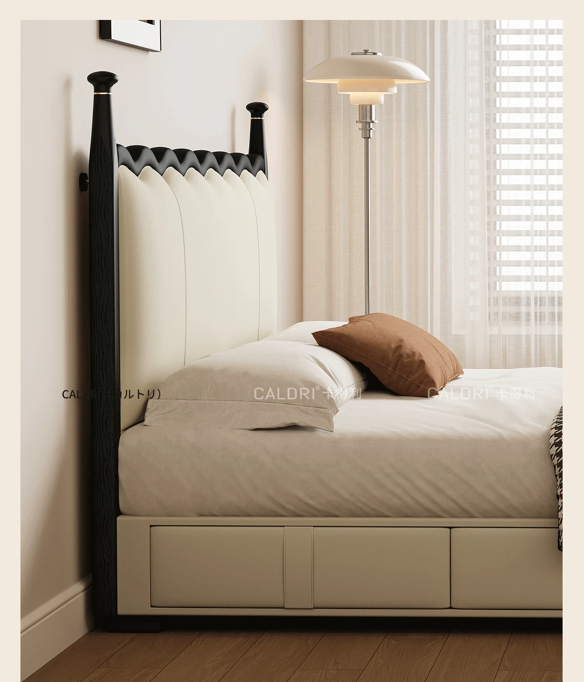 カデリ リップルベッド フランス風 本革 ヴィンテージ スリム ヘッドボード 小型住宅向け 一級牛革 ダブルサイズ 無垢材収納ベッド - スタイリッシュで機能的な空間を演出します!
