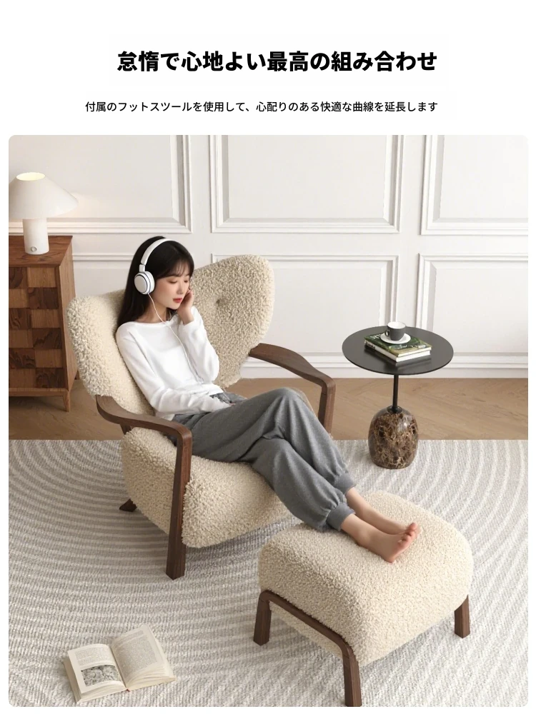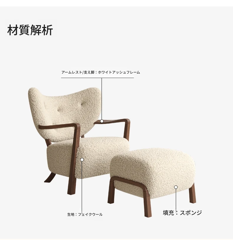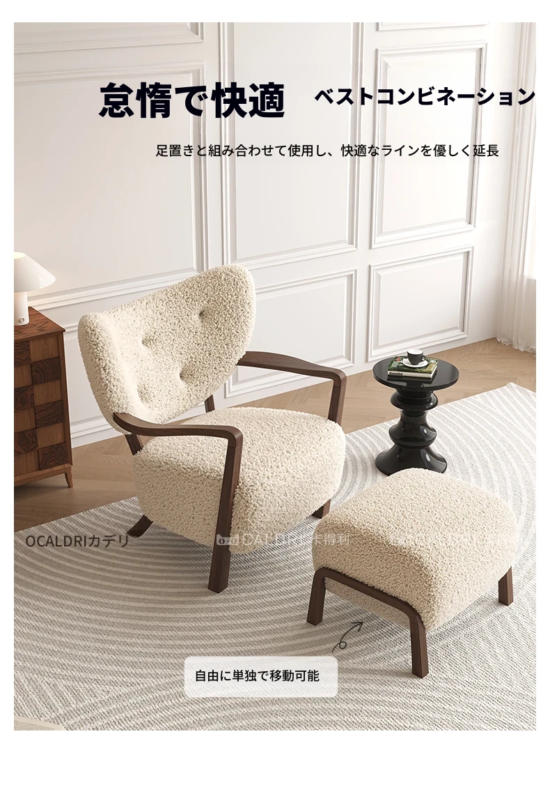 カデリウルフ フレンチヴィンテージクリーム風 リビング用無垢材 中古侘び寂びスタイル 一人掛けソファチェア - 落ち着いた雰囲気で、心地よいくつろぎを提供します。