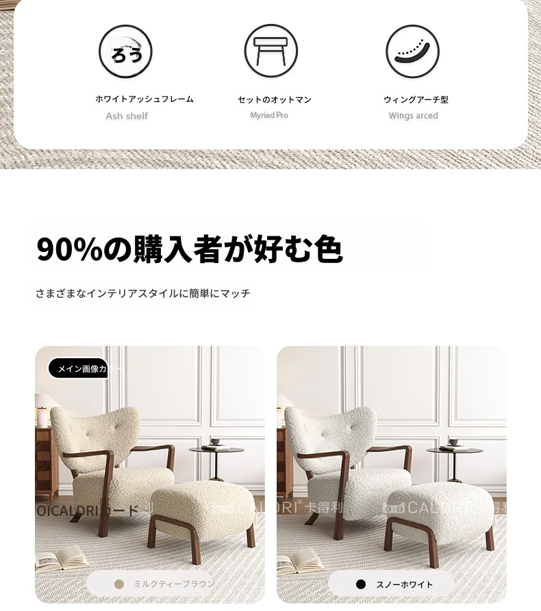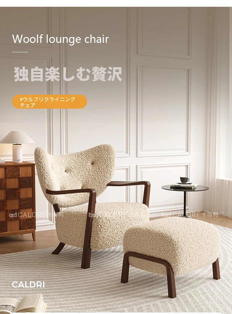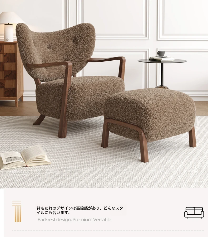 ウルフ・リクライナー・チェア+オットマン ミルクティーブラウン(フェイクファー)