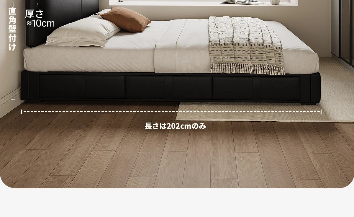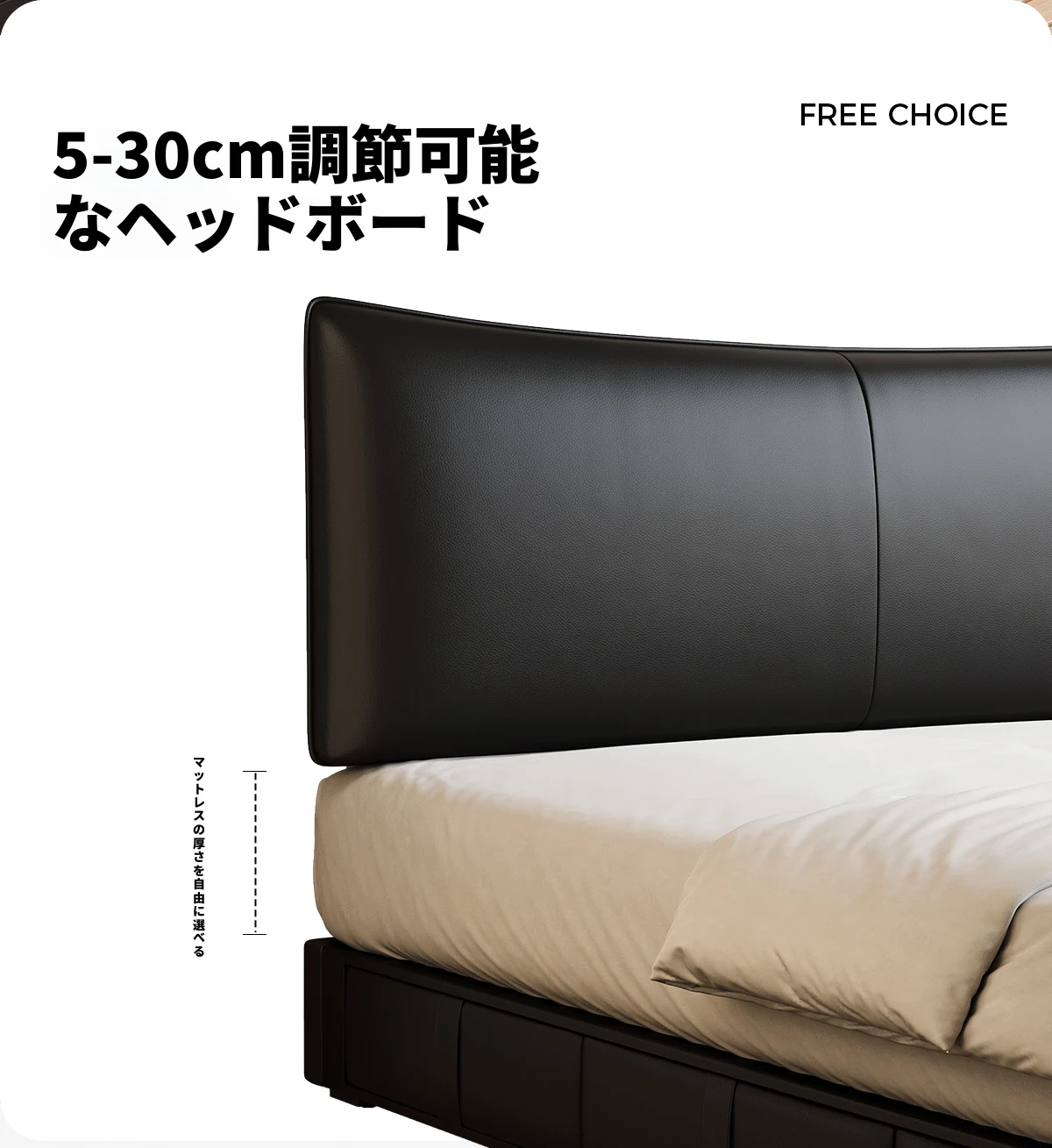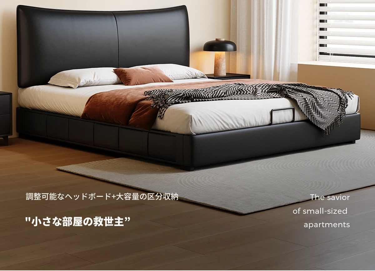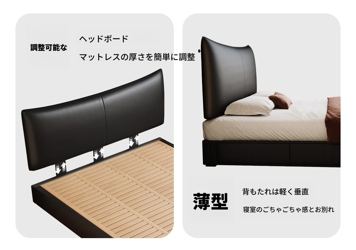 カデリ 小型ヘッドボード 調整可能な薄型収納 イタリアンブラック ダブルサイズ 本革シャネルベッド 高級感溢れる本革仕上げで、狭いスペースでもおしゃれに収納力をアップ!