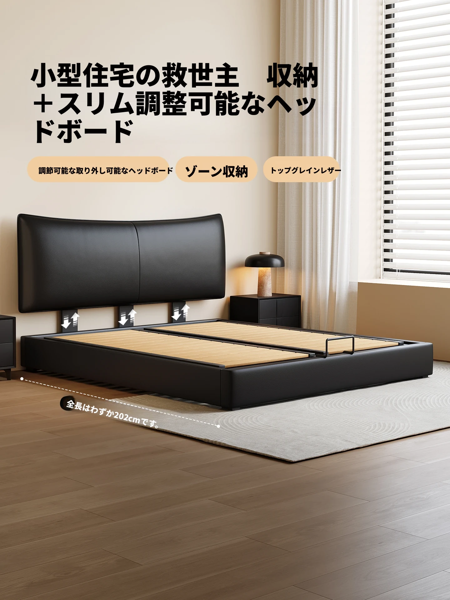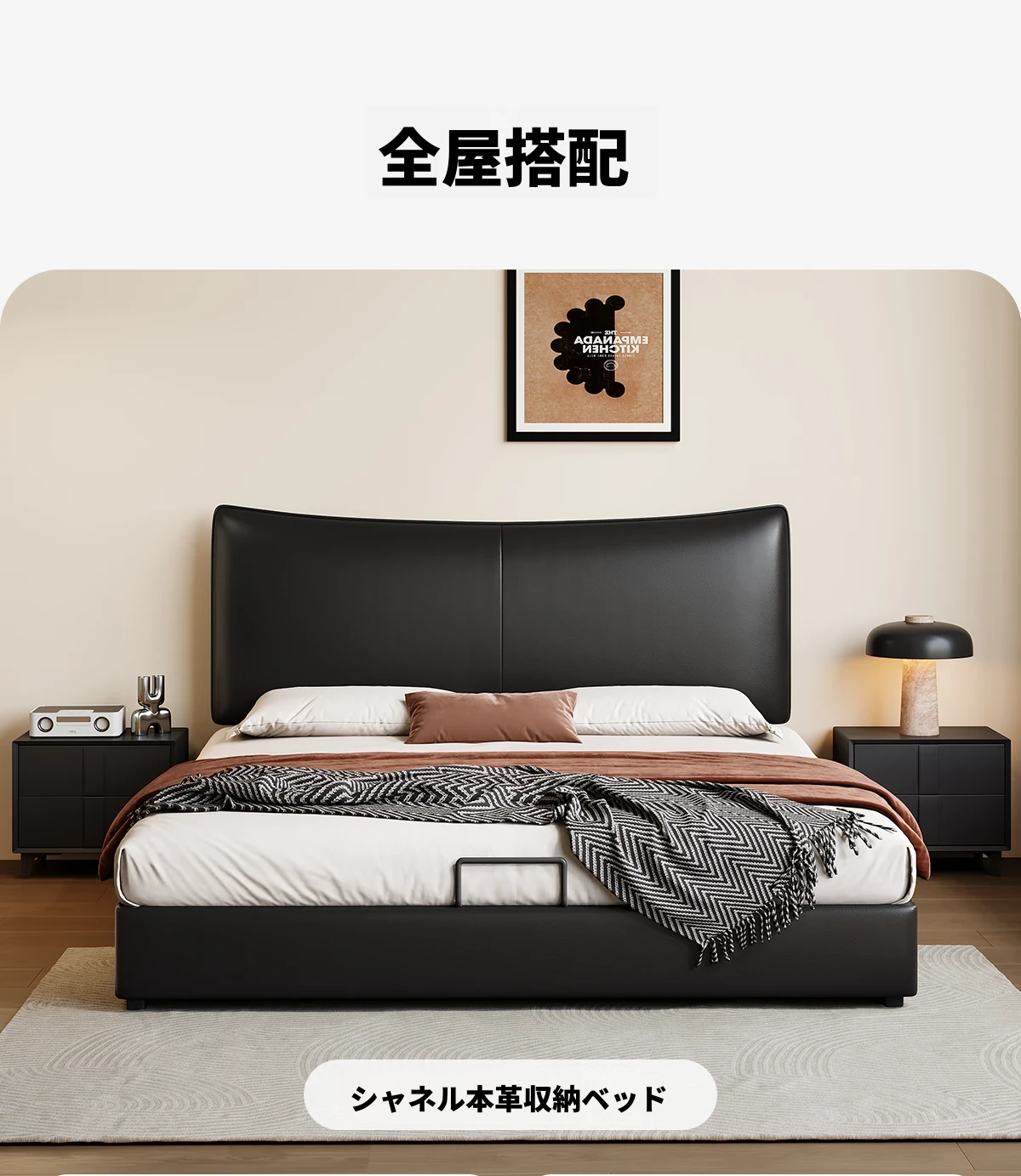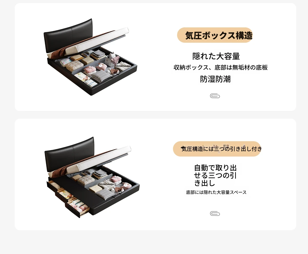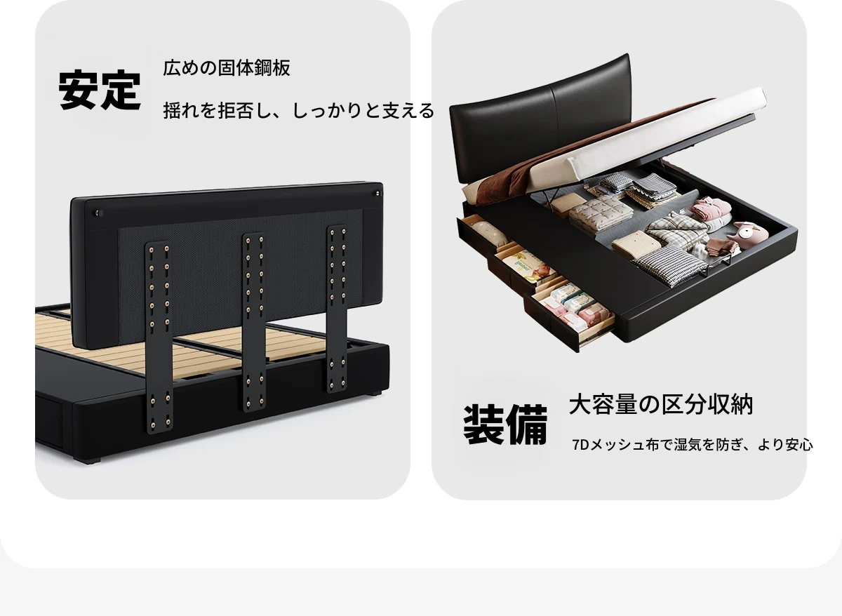 カデリ 小型ヘッドボード 調整可能な薄型収納 イタリアンブラック ダブルサイズ 本革シャネルベッド 高級感溢れる本革仕上げで、狭いスペースでもおしゃれに収納力をアップ!