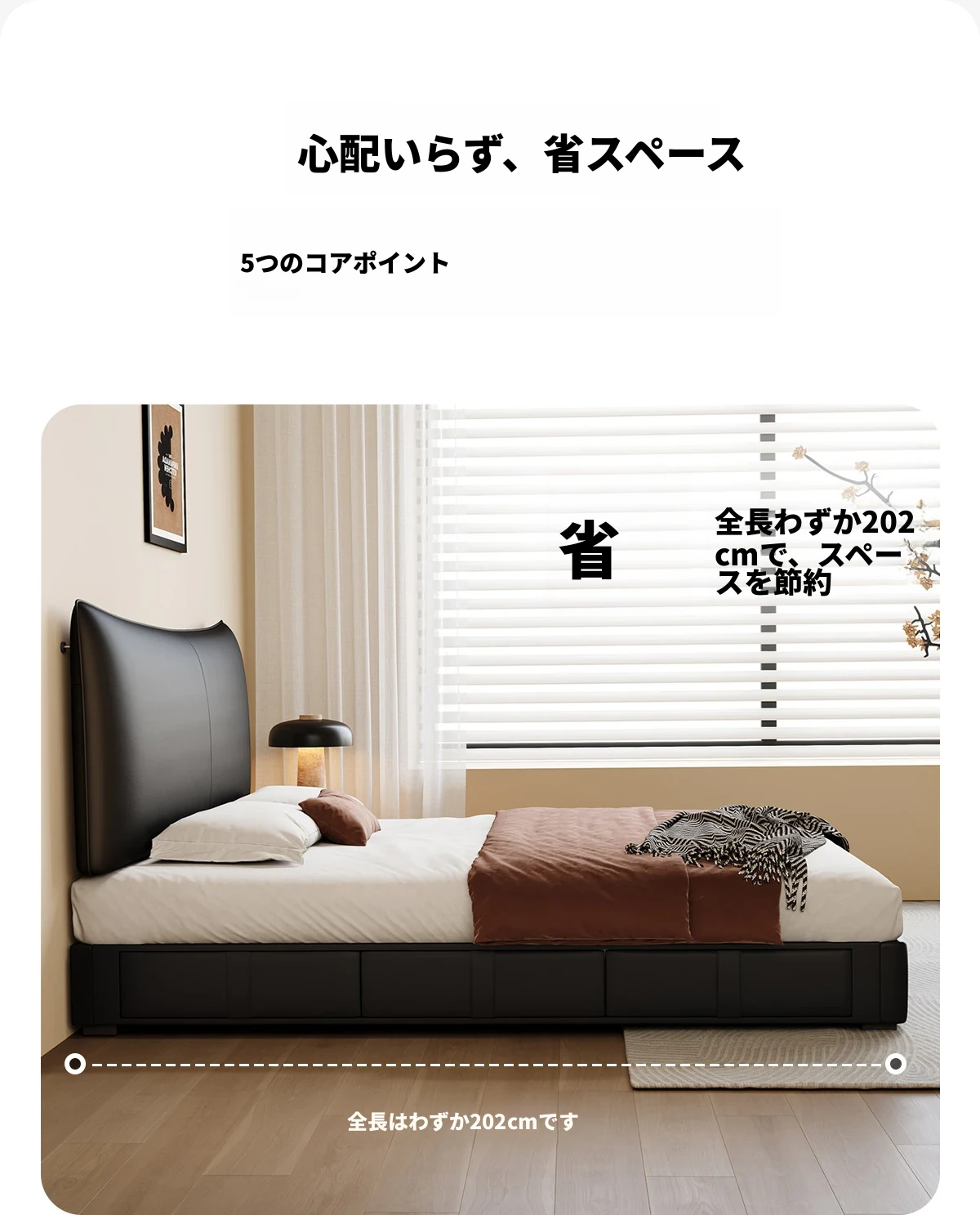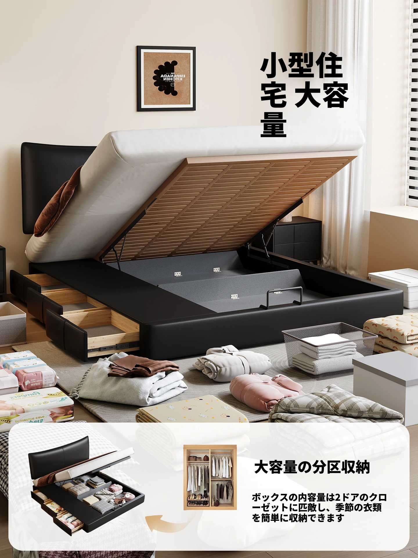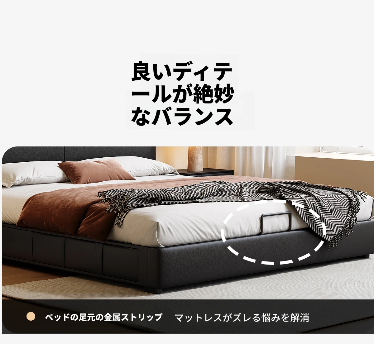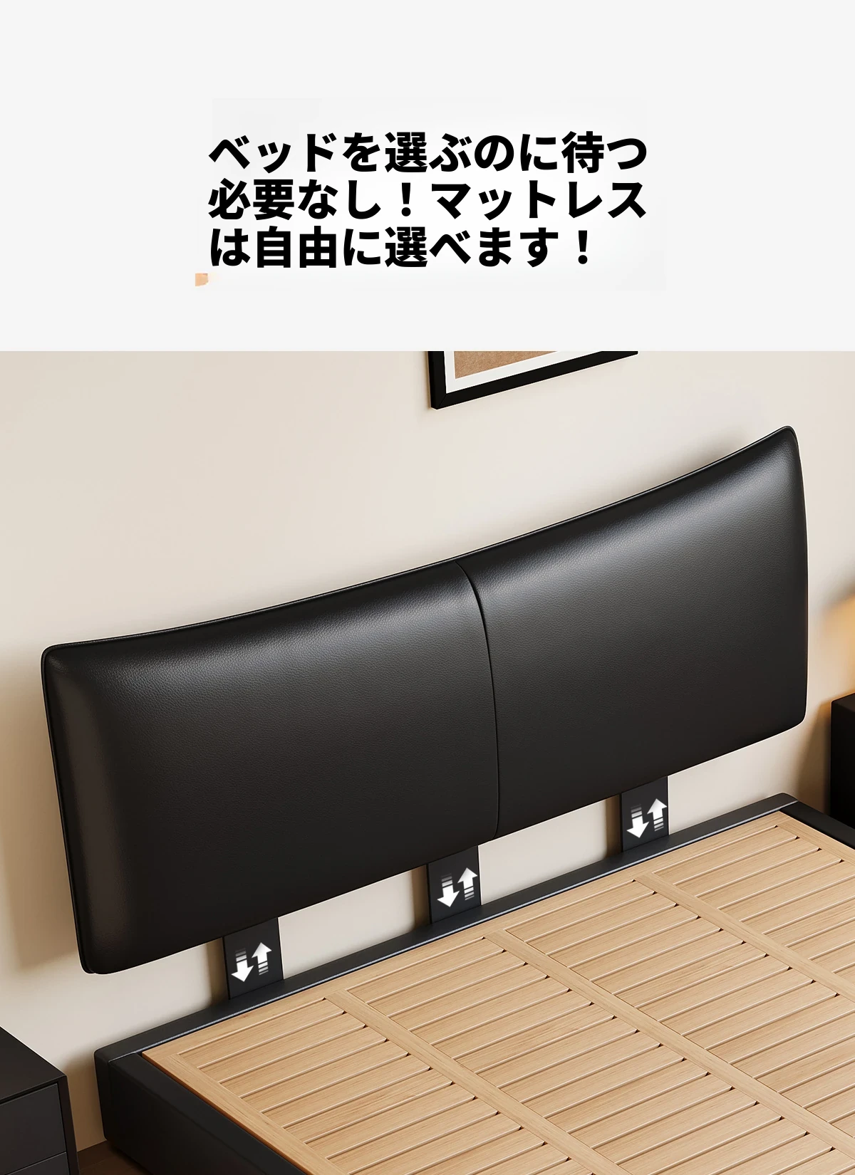 カデリ 小型ヘッドボード 調整可能な薄型収納 イタリアンブラック ダブルサイズ 本革シャネルベッド 高級感溢れる本革仕上げで、狭いスペースでもおしゃれに収納力をアップ!