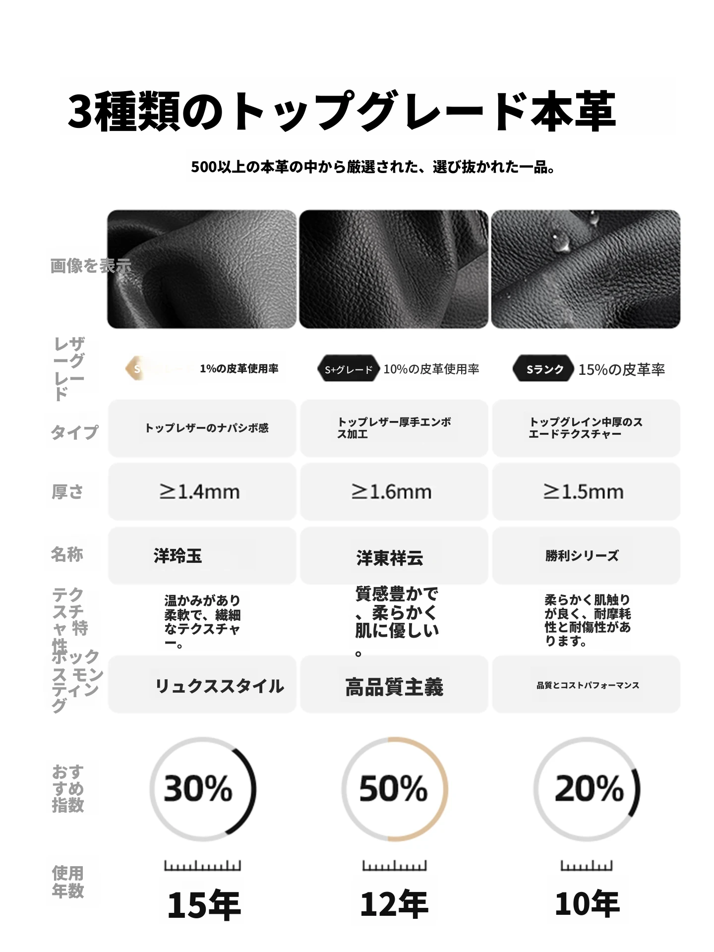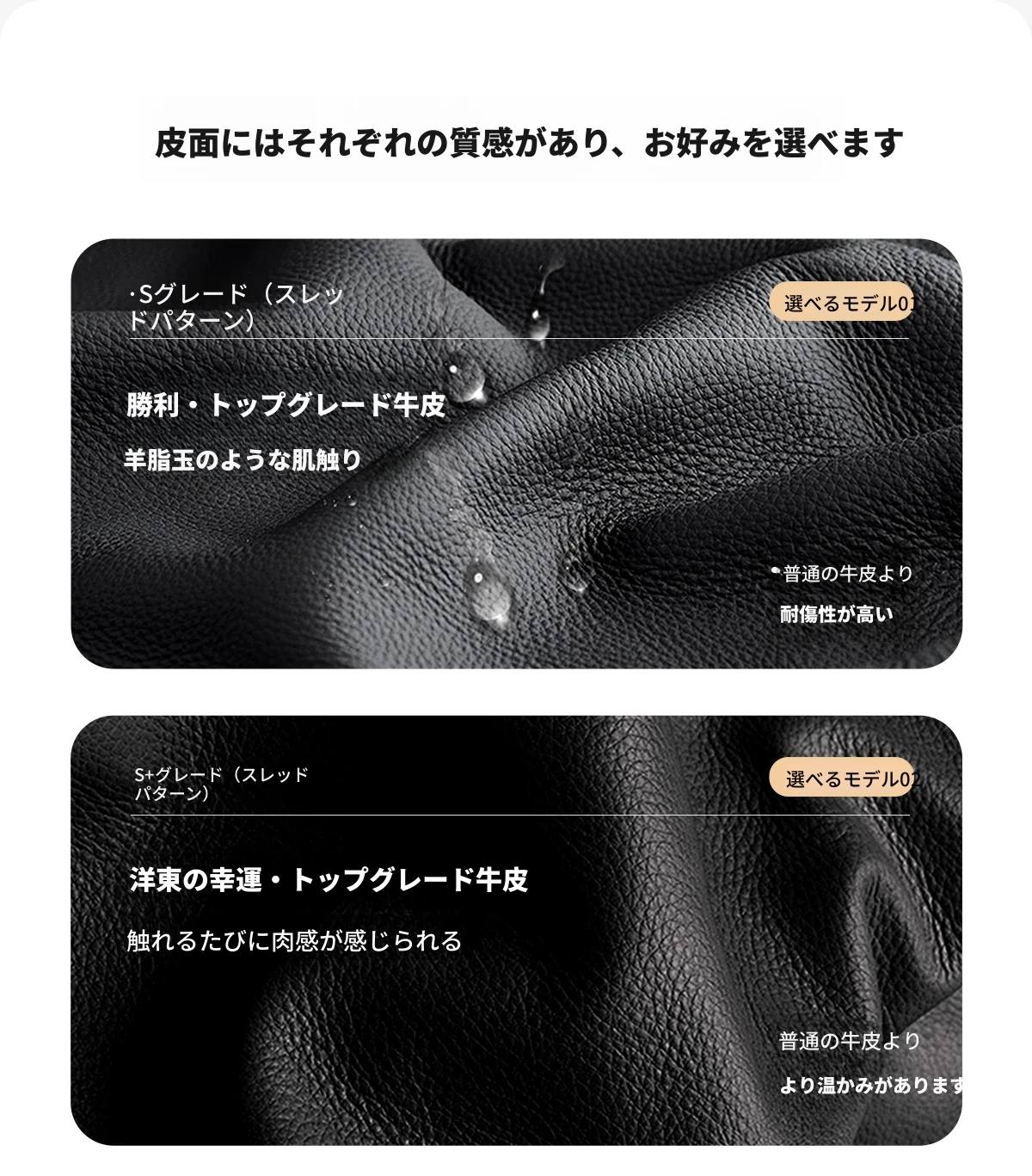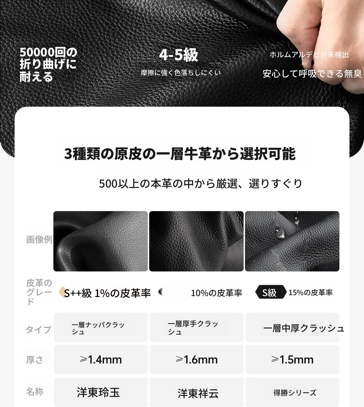 【三種類の本革頭層牛革】得勝衝撃模様(耐傷)|祥云衝撃模様(温かみ)|玲瓏玉ナパ(繊細)