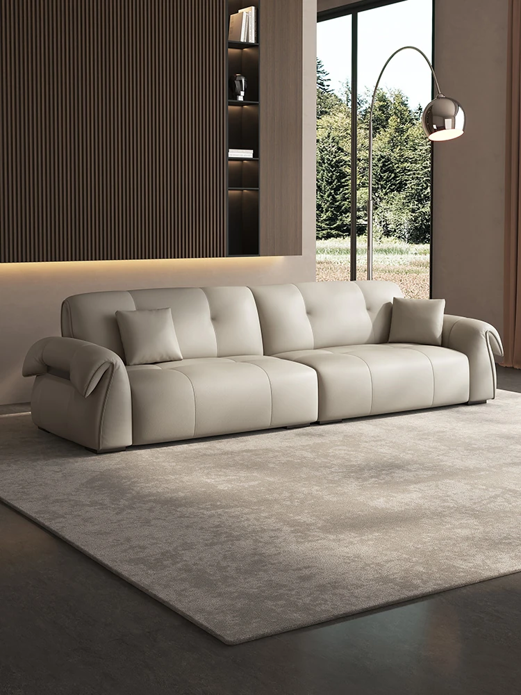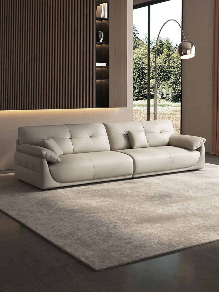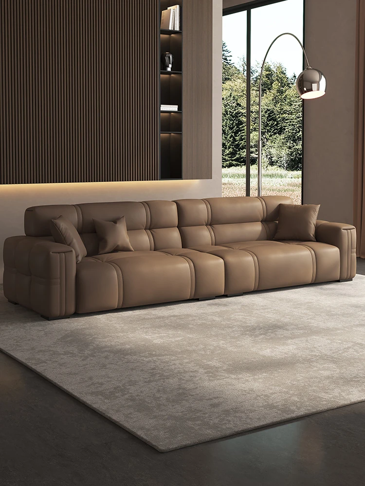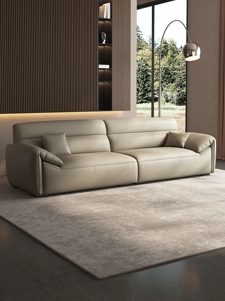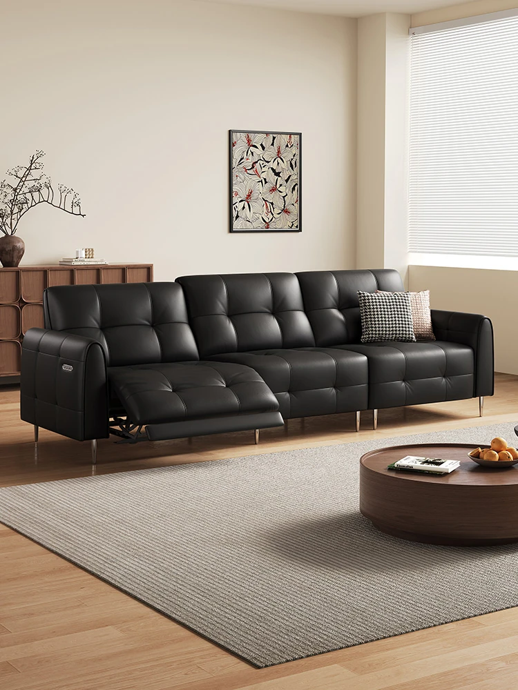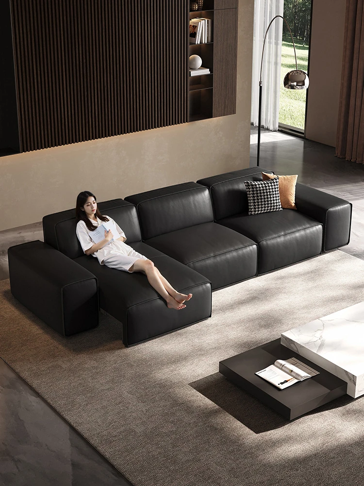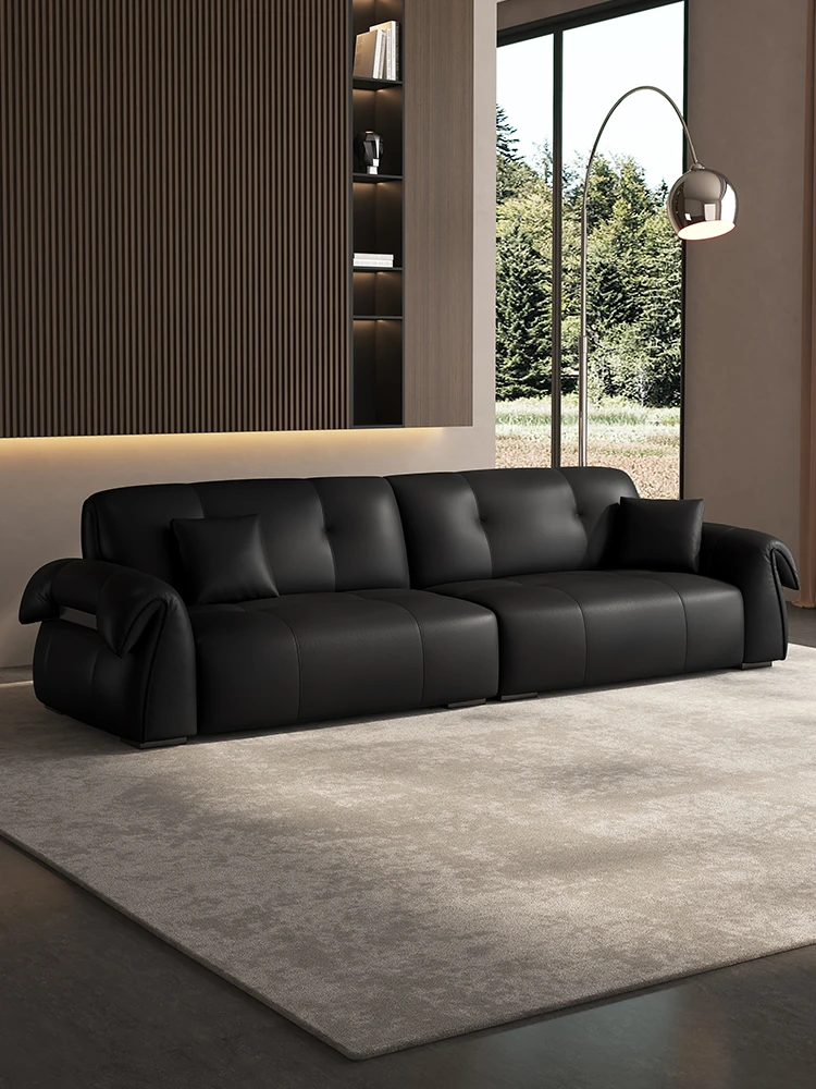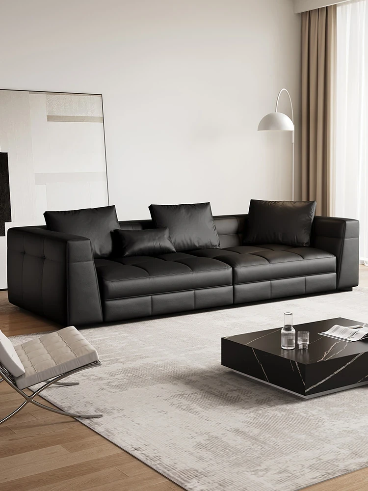 Kadeer Black Italian Minimalist Genuine Leather Sofa - 2024 New Modern Simple Design with Straight-Line Style, Perfect for Contemporary Living Spaces