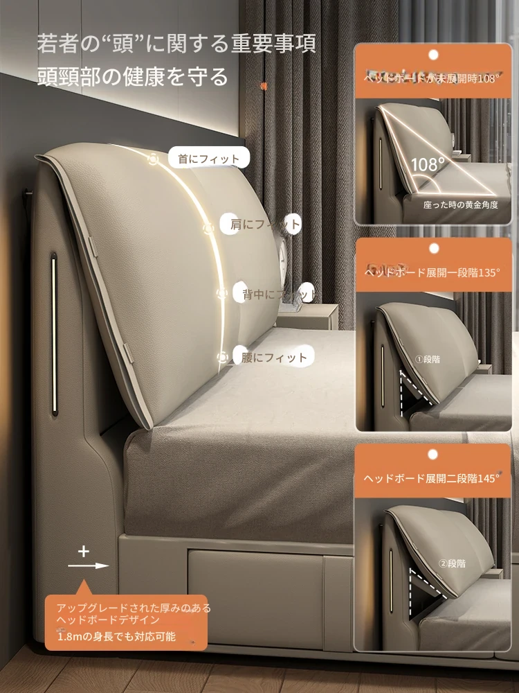 尊享版:洋東玲瓏玉-輕摔納帕頭層牛皮【加密榉木排骨架】單床+床頭櫃*1