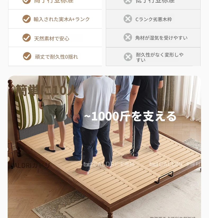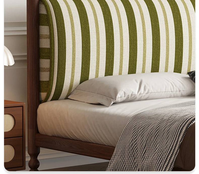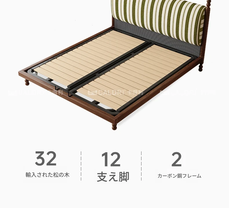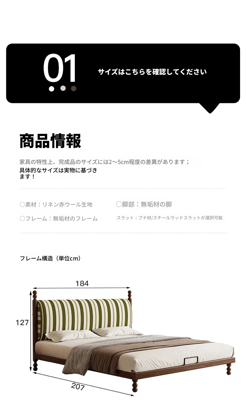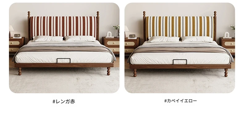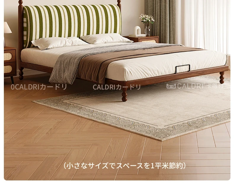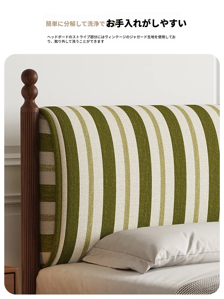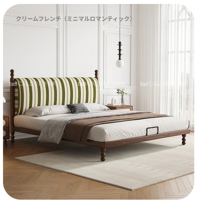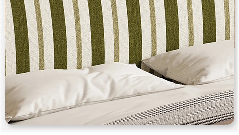 カデリ中古風レトロスタイルのストライプ布製薄型ヘッドボード、取り外し可能!全て無垢材使用のダブルベッド、小さなお部屋にもぴったりです。快適な眠りをお届けします!