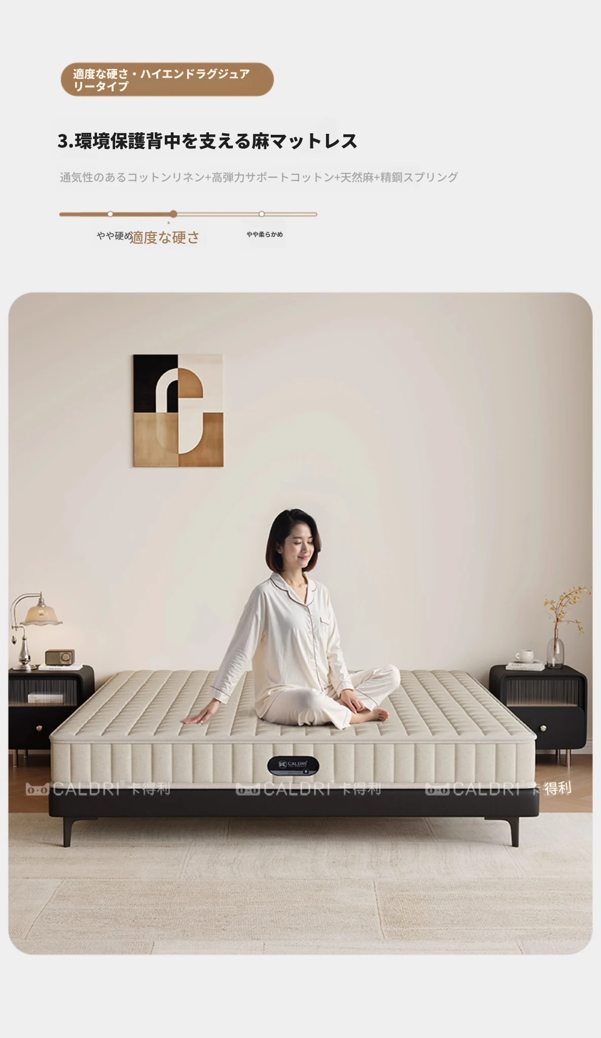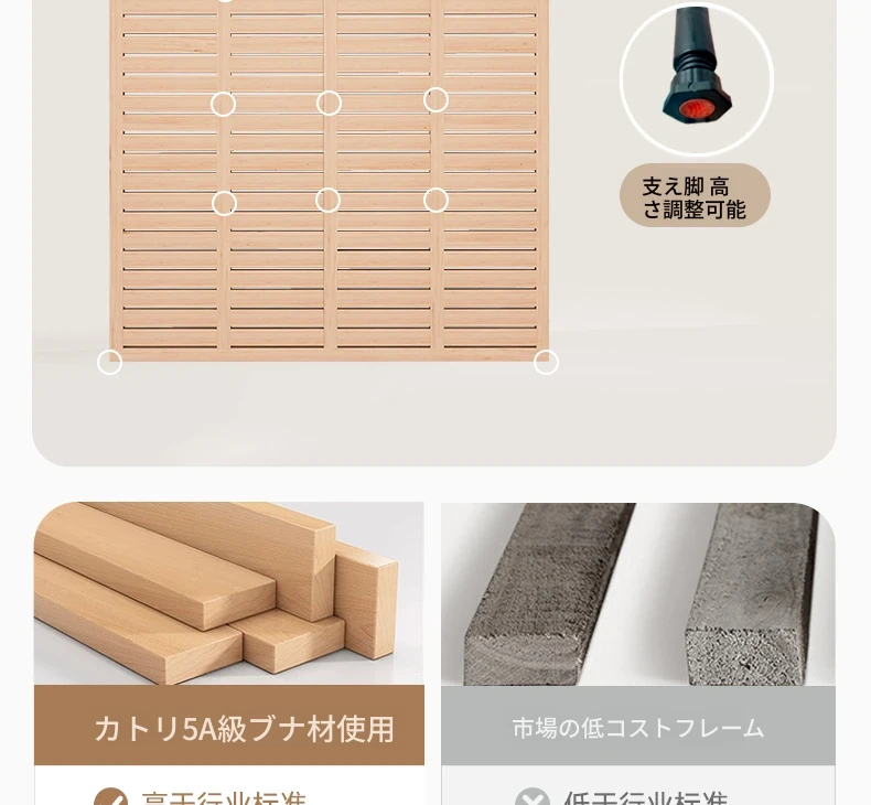 フラッグシップ版:リネン布製ベッド【厚手ビーチ木製スラット】+背骨保護麻マットレス