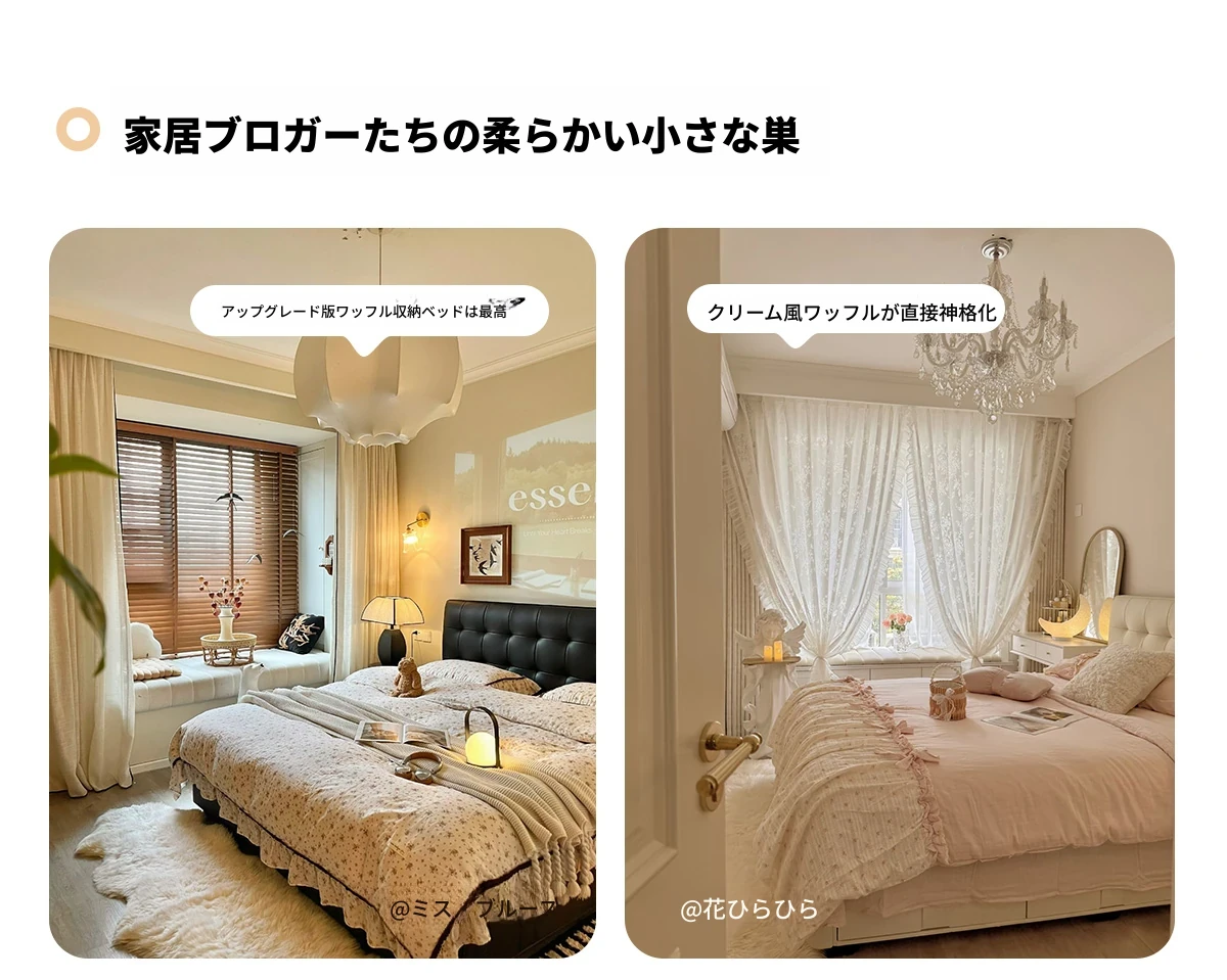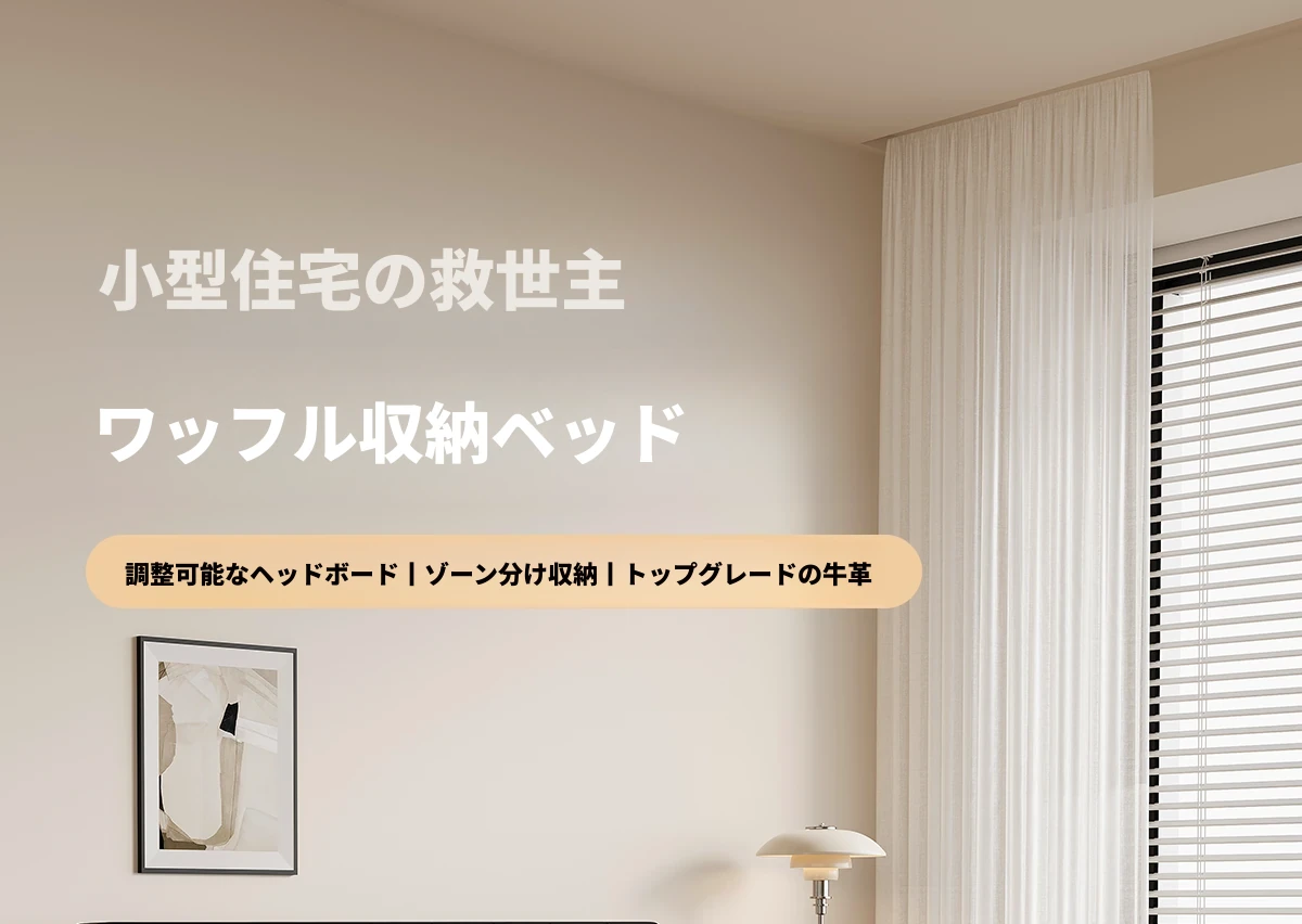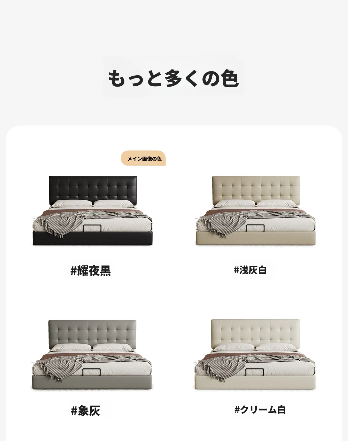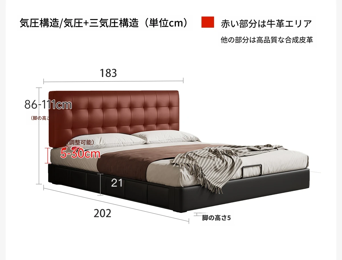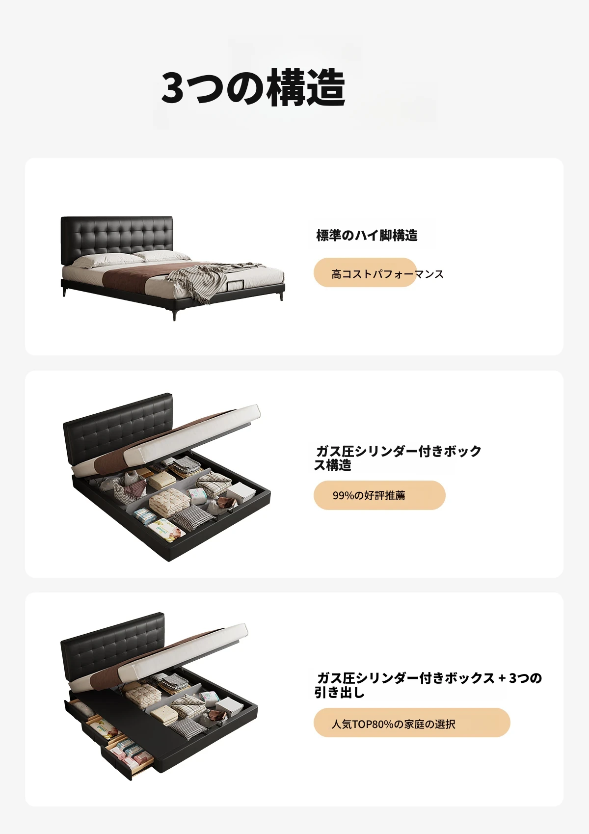 カデリ ワッフル本革主寝室ストレージベッド ブラック 小型調整可能な薄型ヘッドボード アンティークスタイル ダブルベッド - スペースを有効活用し、スタイリッシュな睡眠空間を実現!