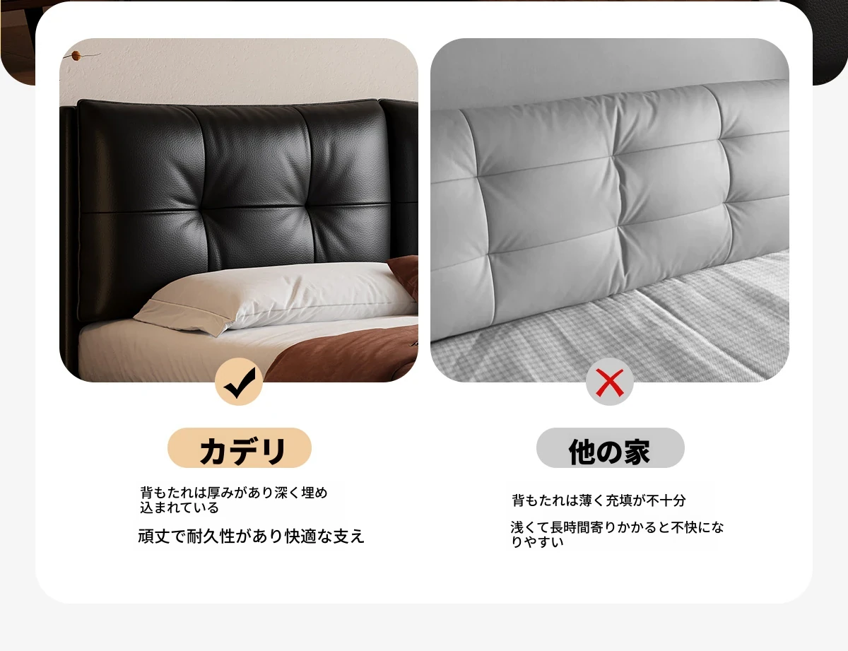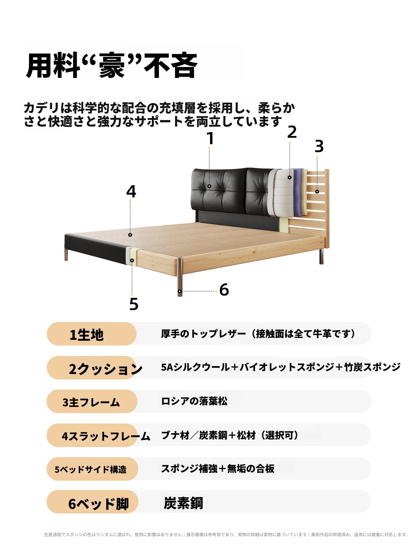 豪華版:得勝-中厚摔纹頭層牛皮【加密榉木排骨架】シングルベッド