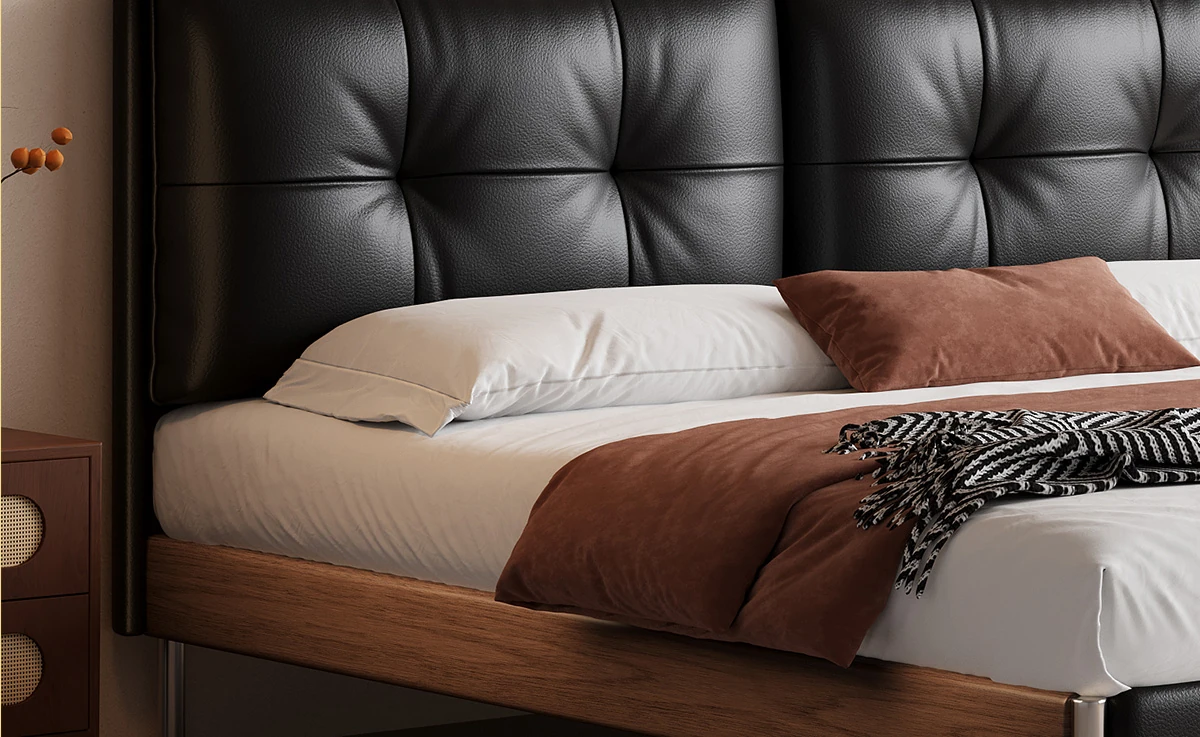 尊享版:洋東玲珑玉-軽摔ナパ頭層牛皮【加密榉木排骨架】シングルベッド+七星メモリーフォームマットレス