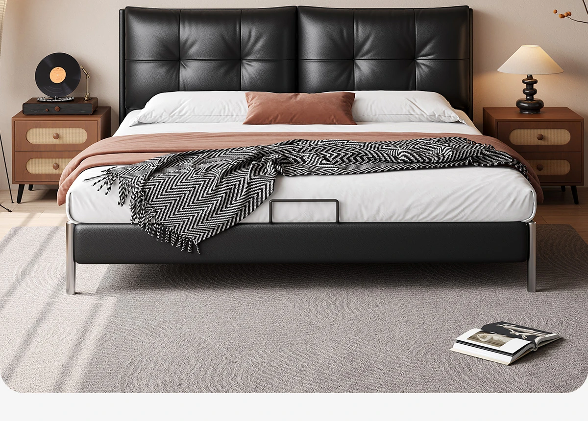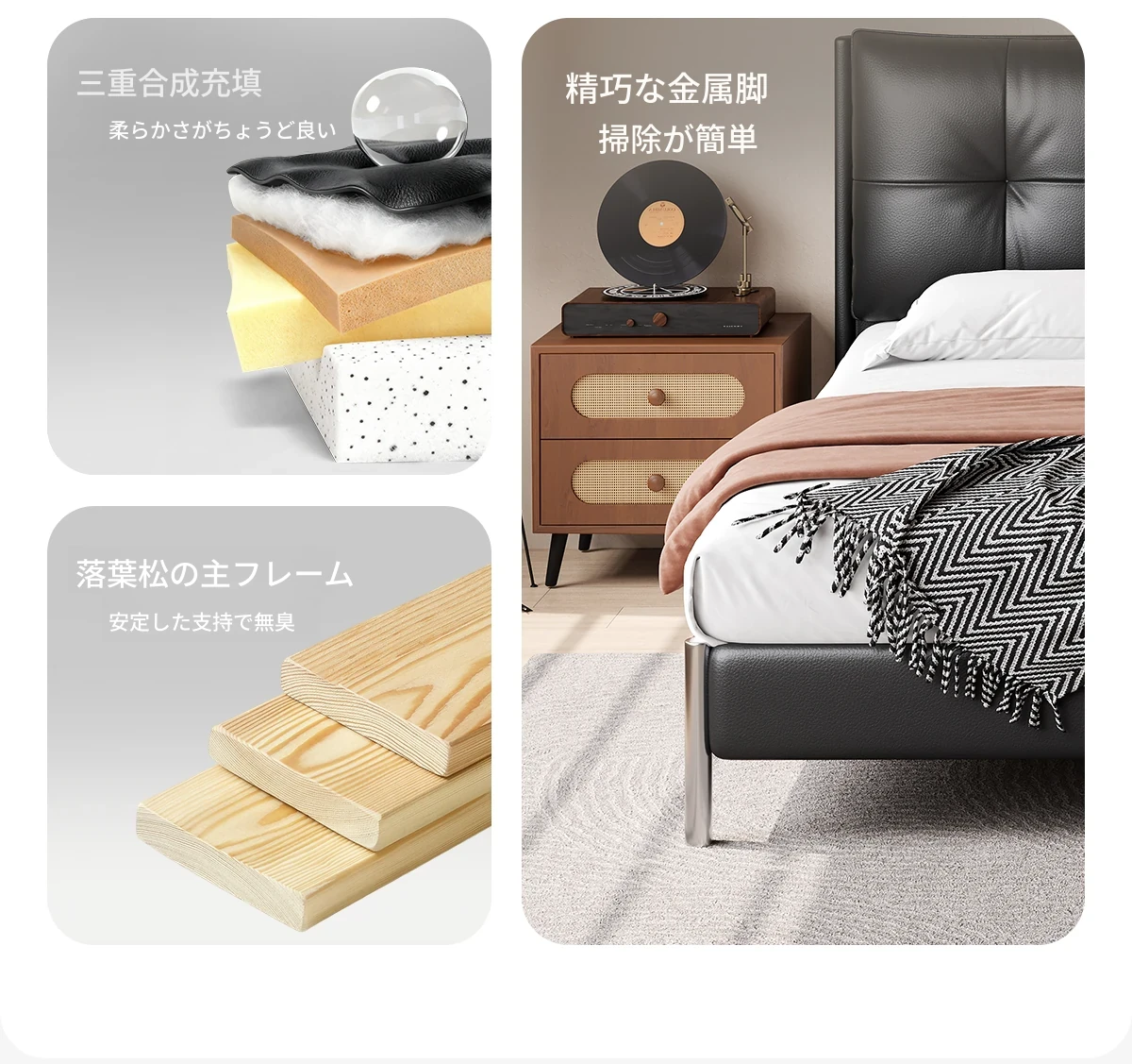 尊享版:洋東玲珑玉-軽摔ナパ頭層牛皮【加密榉木排骨架】シングルベッド