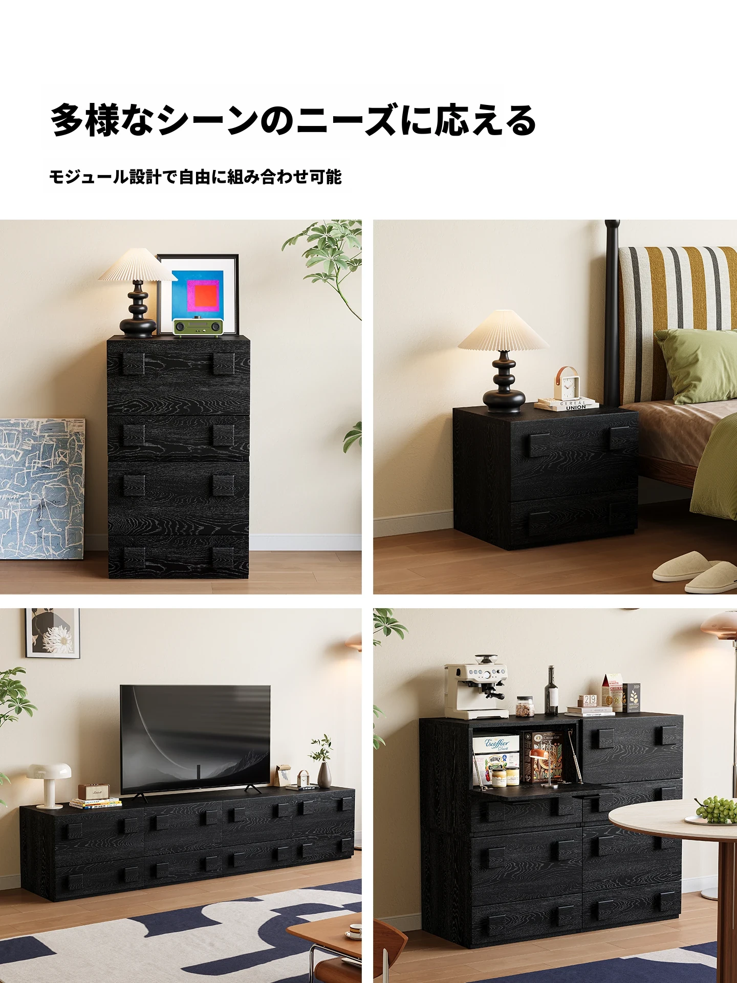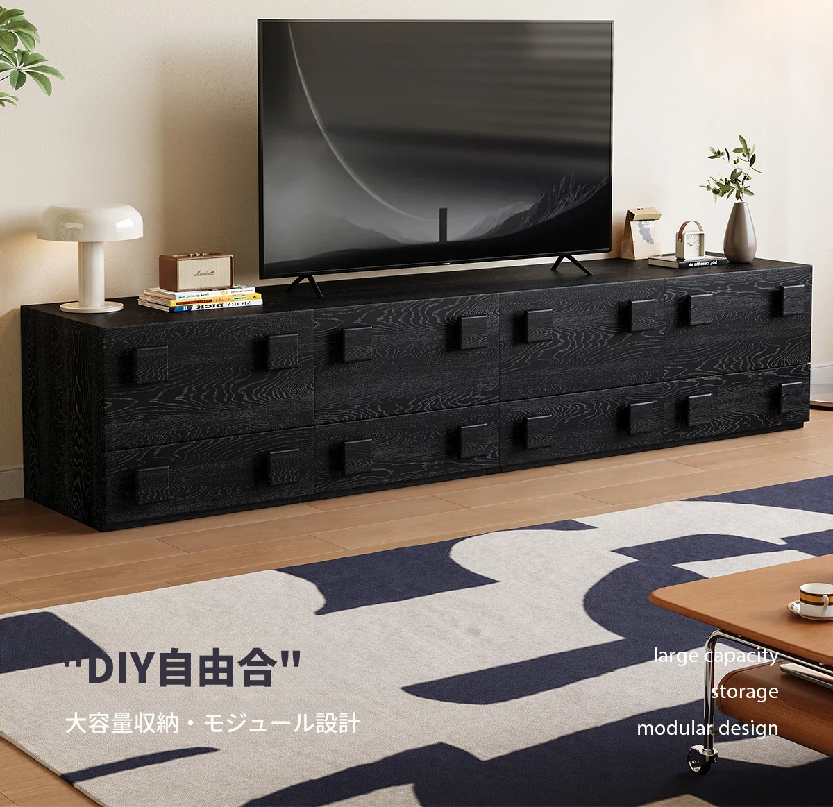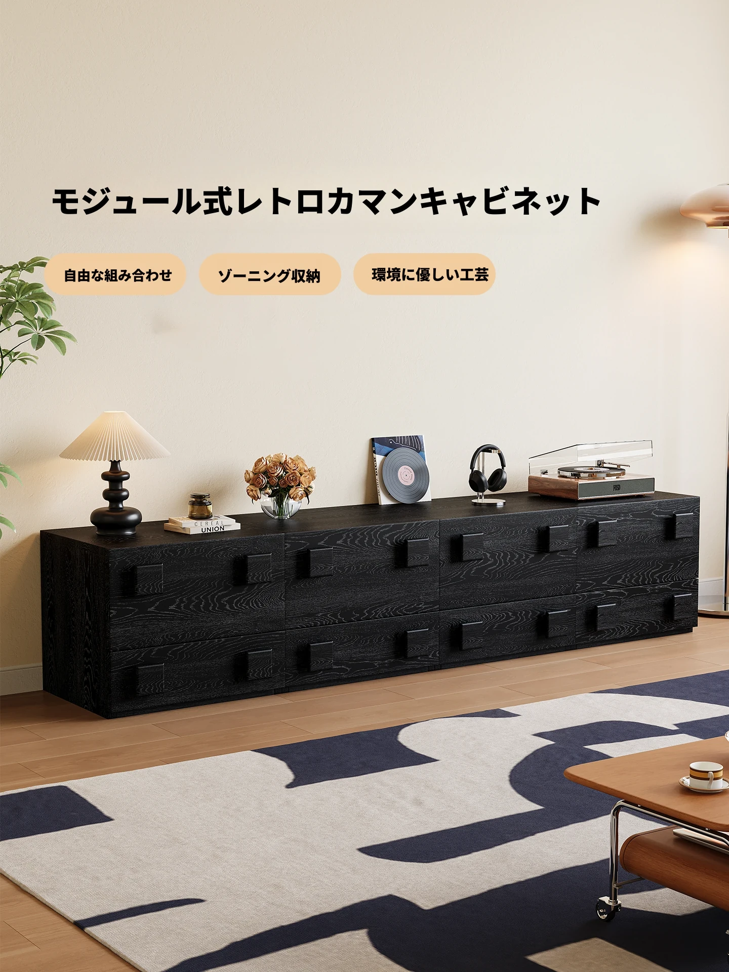 カデリのレトロカーマンキャビネット、無垢材製のテレビキャビネット!シンプルでスタイリッシュなデザイン、リビングルームに最適なフロアタイプのテレビボード、モジュール式の組み合わせで自由自在にアレンジ可能!