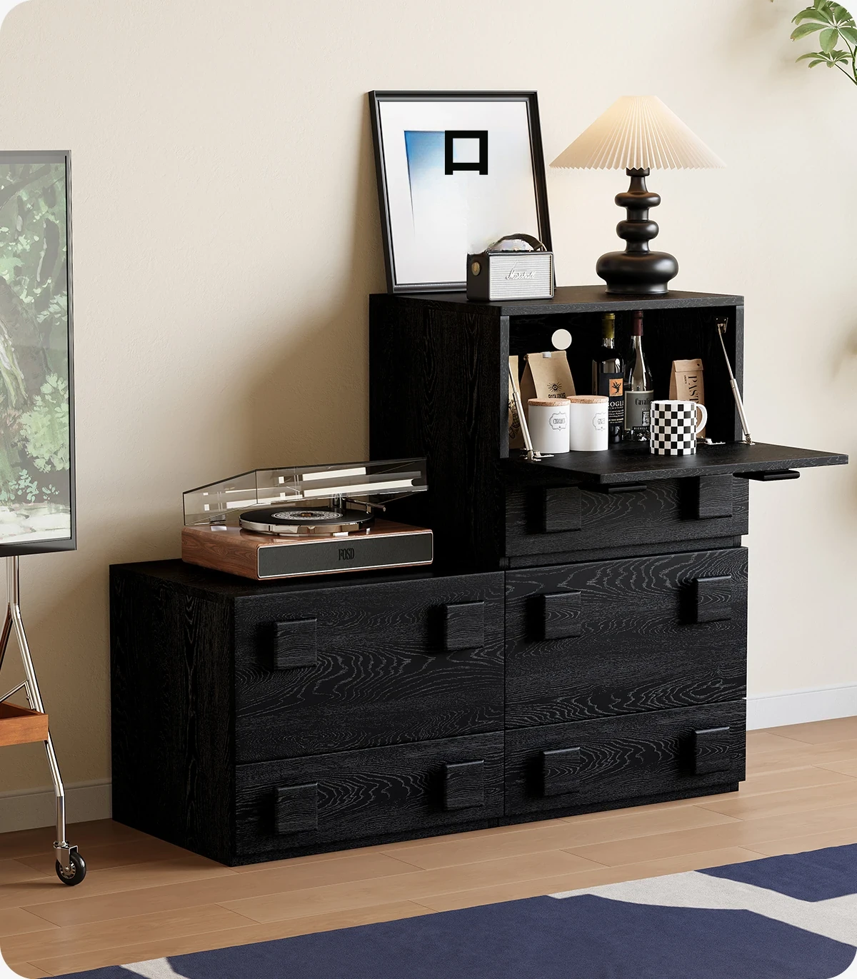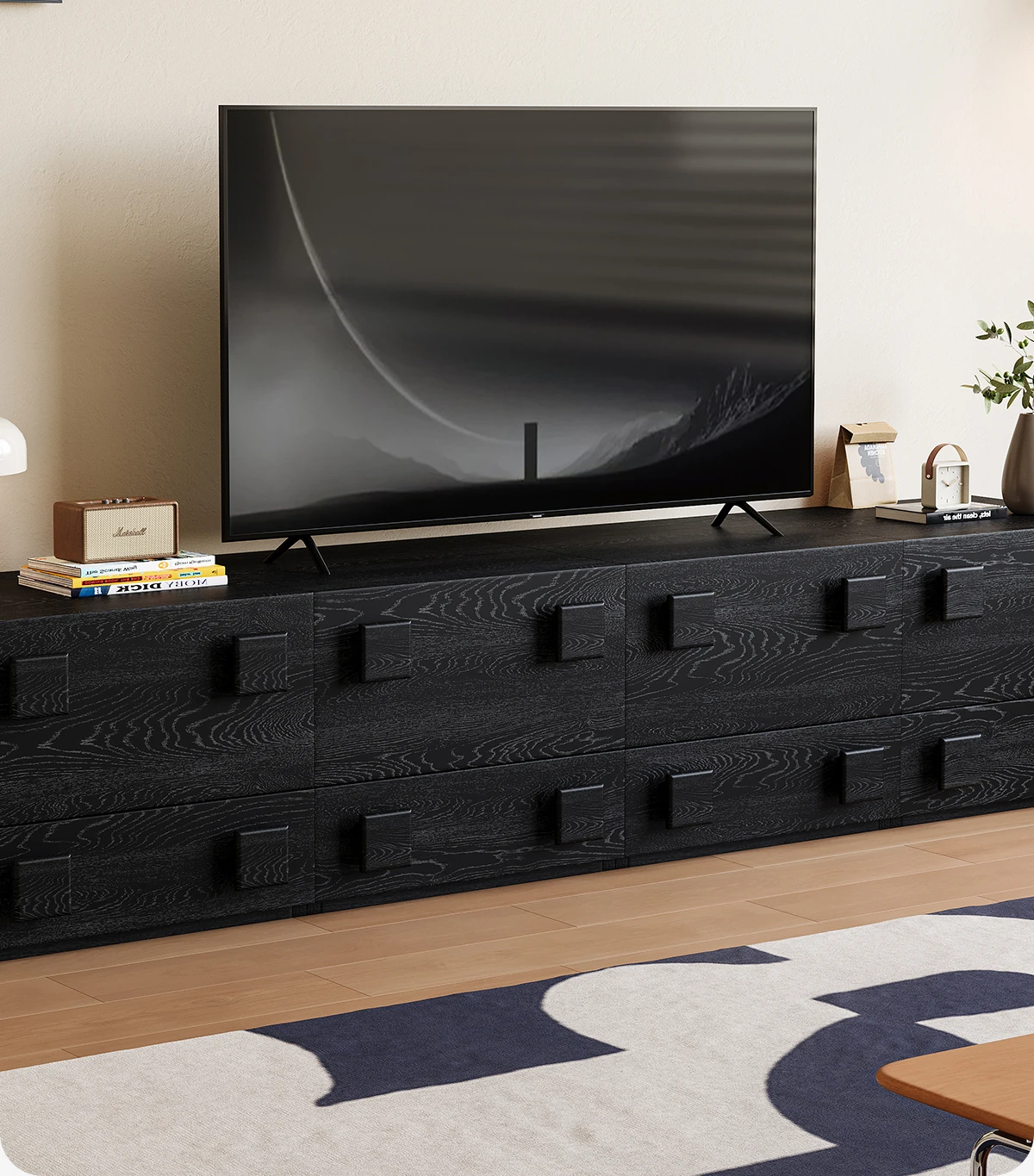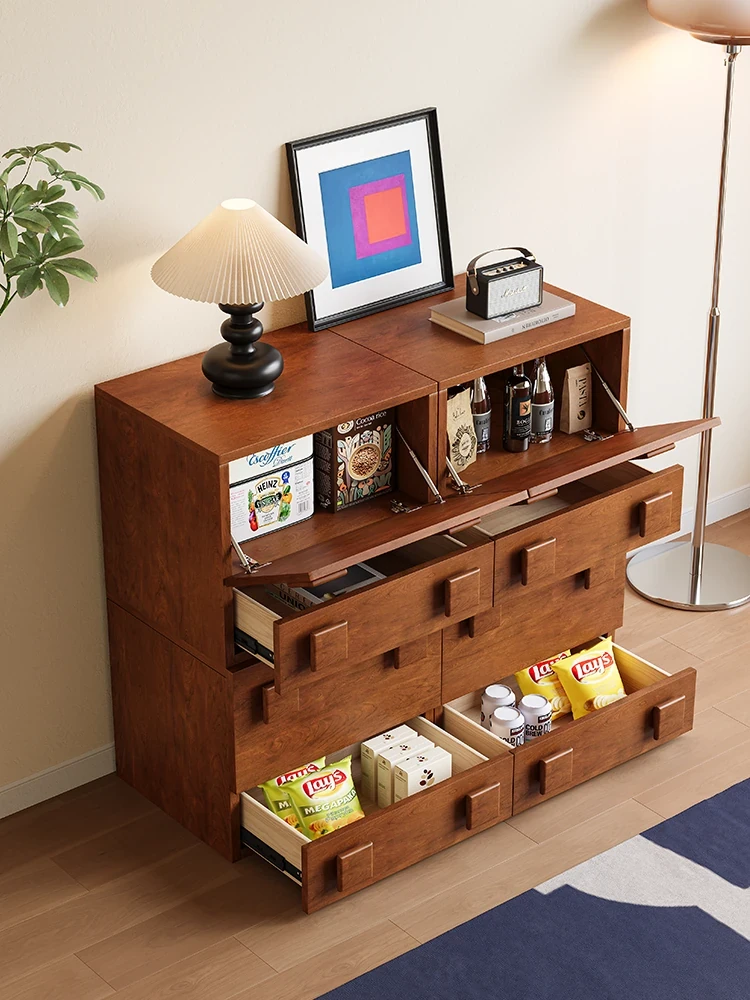カデリのレトロカーマンキャビネット、無垢材製のテレビキャビネット!シンプルでスタイリッシュなデザイン、リビングルームに最適なフロアタイプのテレビボード、モジュール式の組み合わせで自由自在にアレンジ可能!